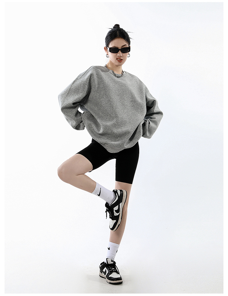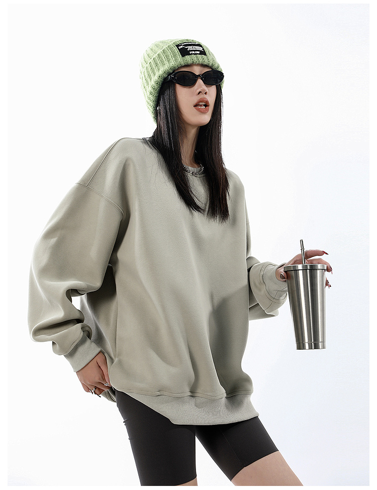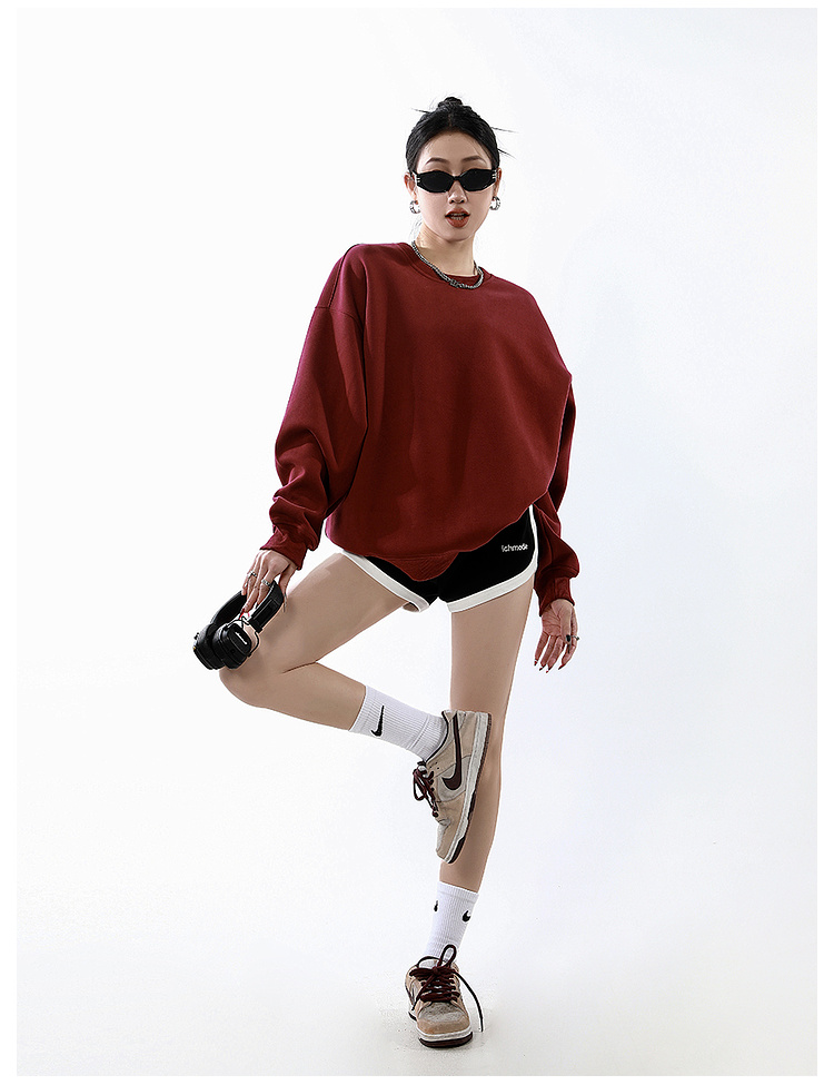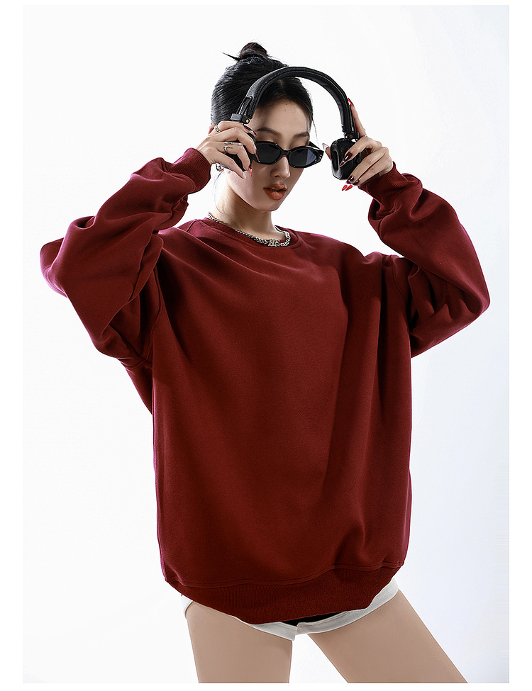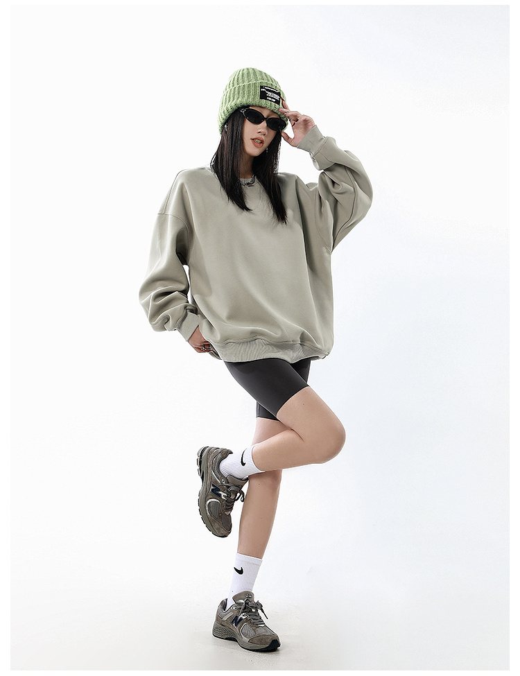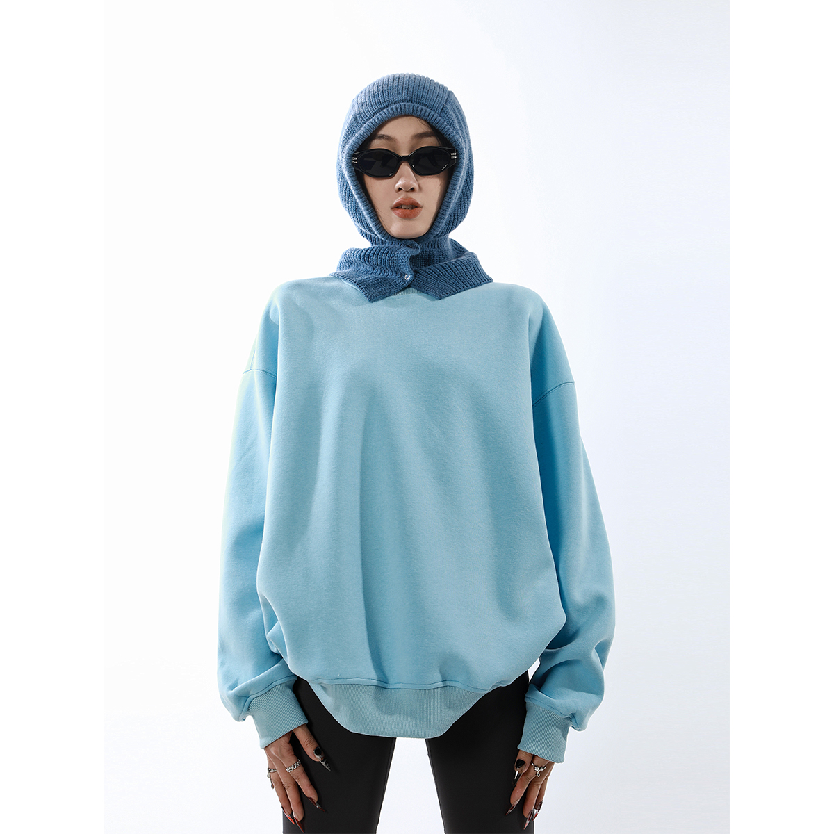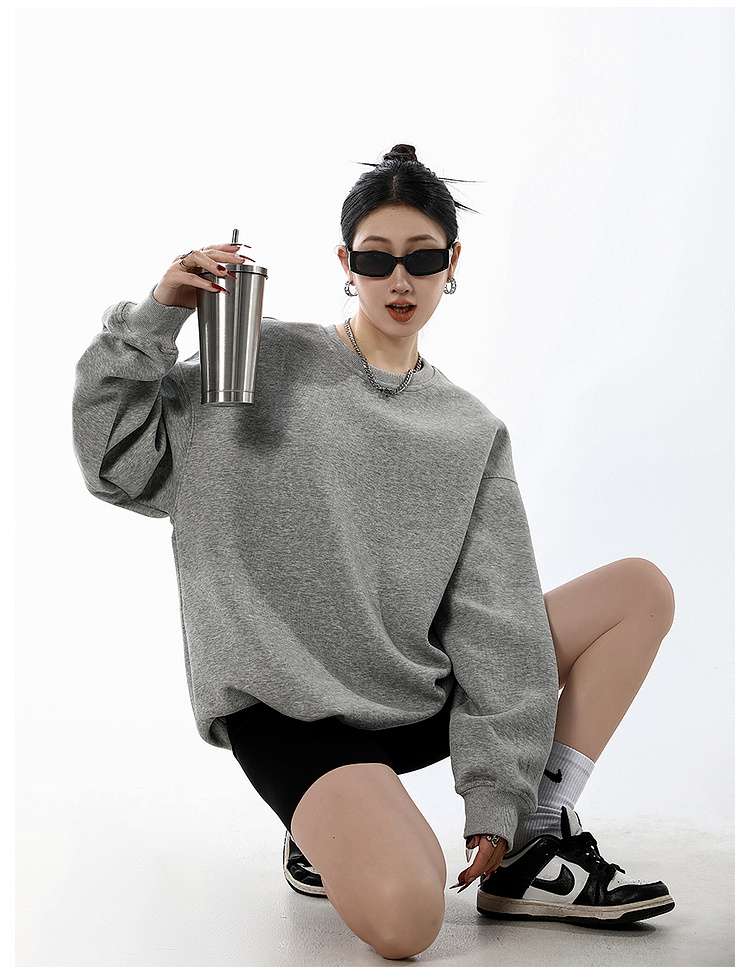 ICH MODE圓領純色美式百搭簡約春秋上衣寬鬆街頭廓形顯瘦休閒厚棉