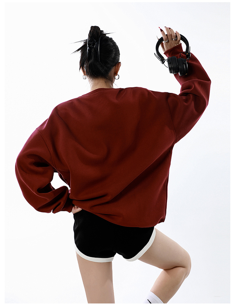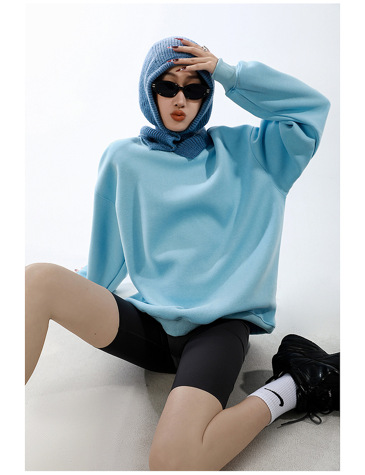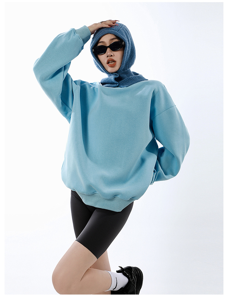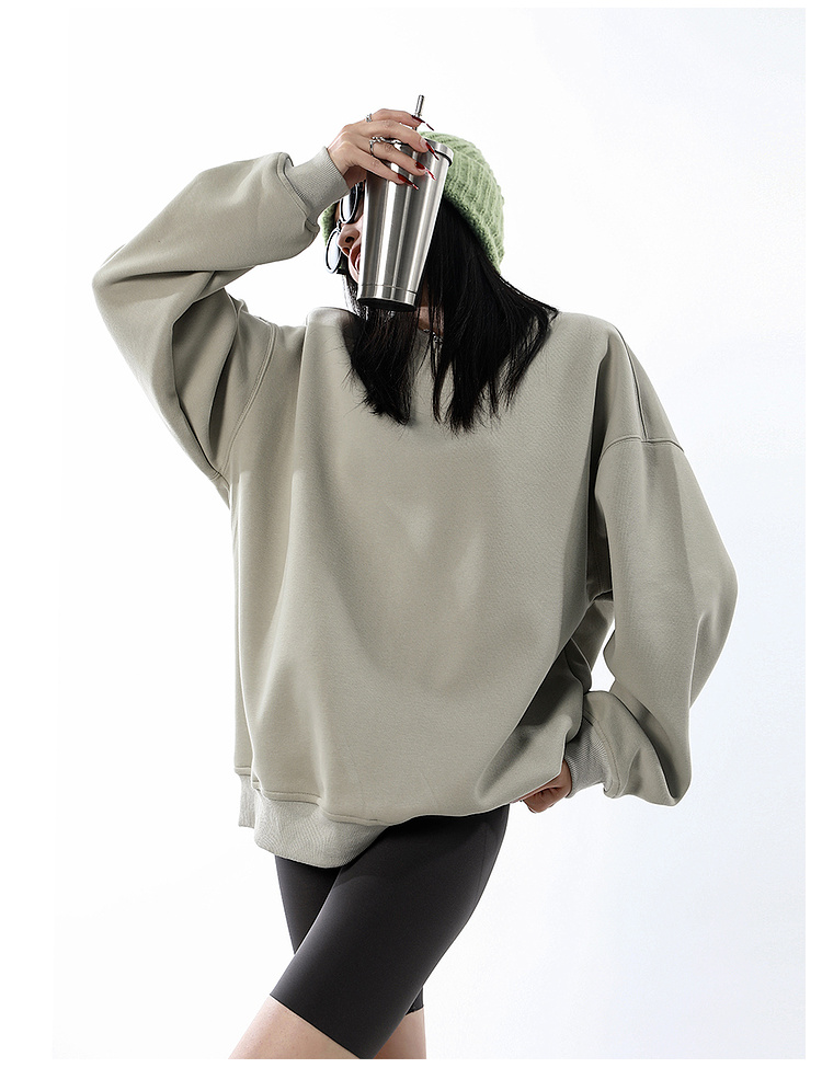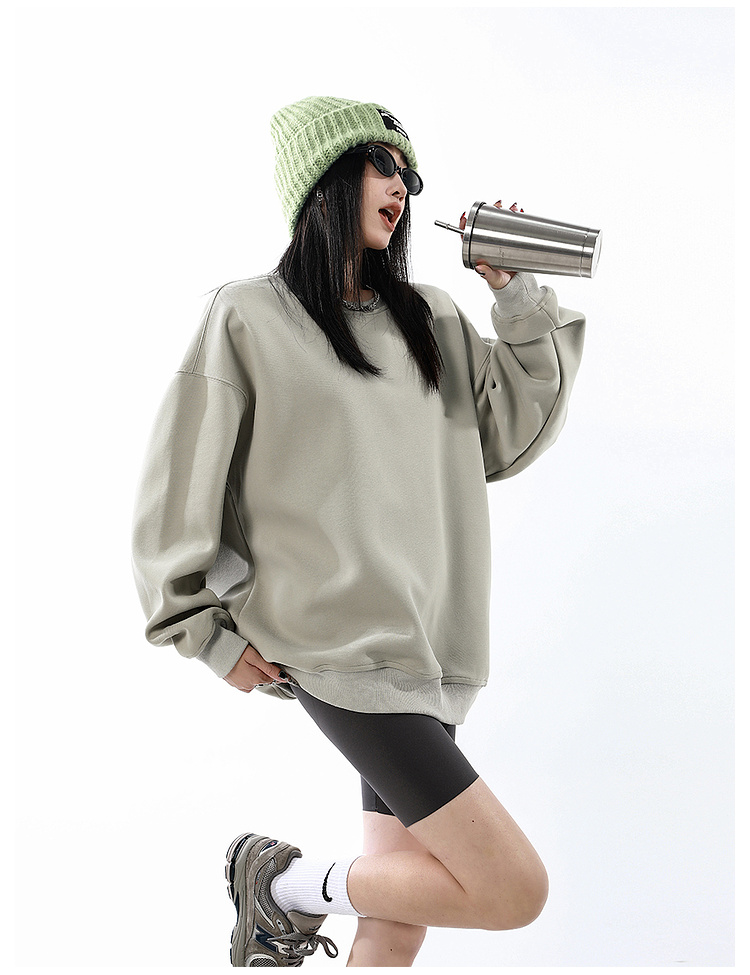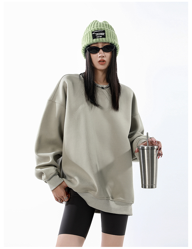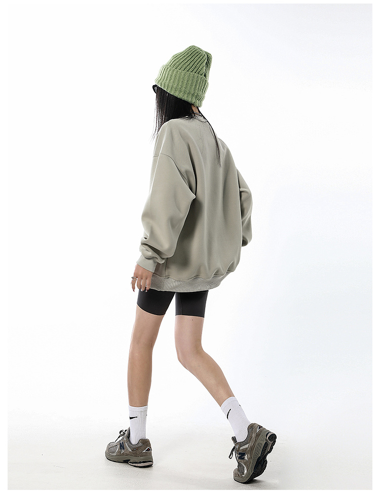 ICH MODE圓領純色美式百搭簡約春秋上衣寬鬆街頭廓形顯瘦休閒厚棉