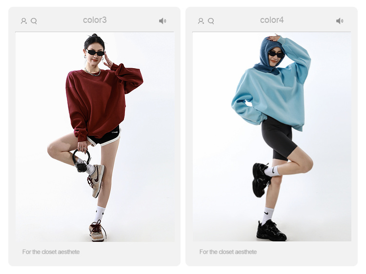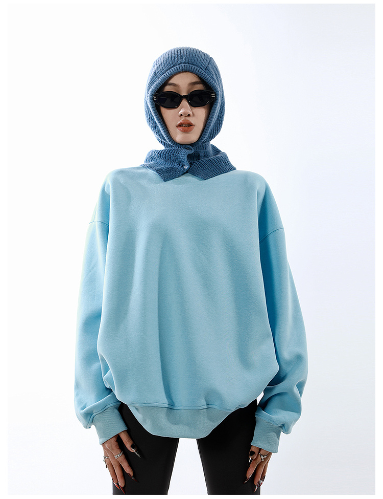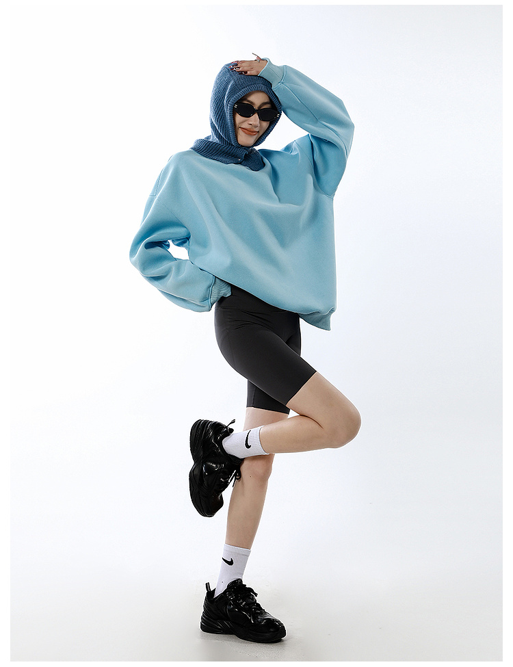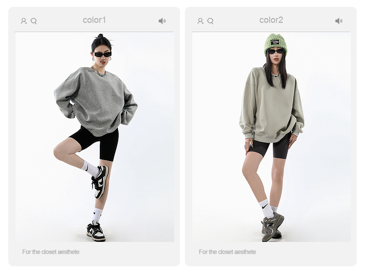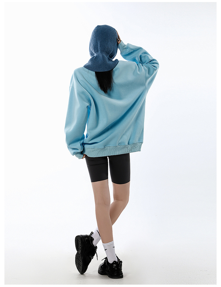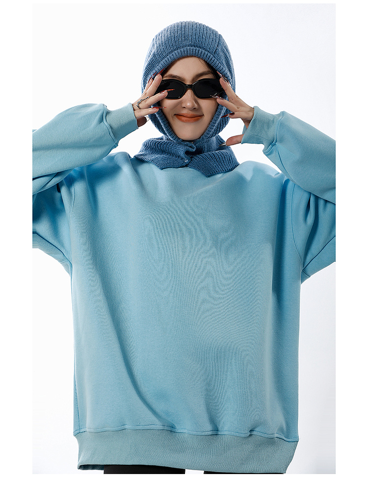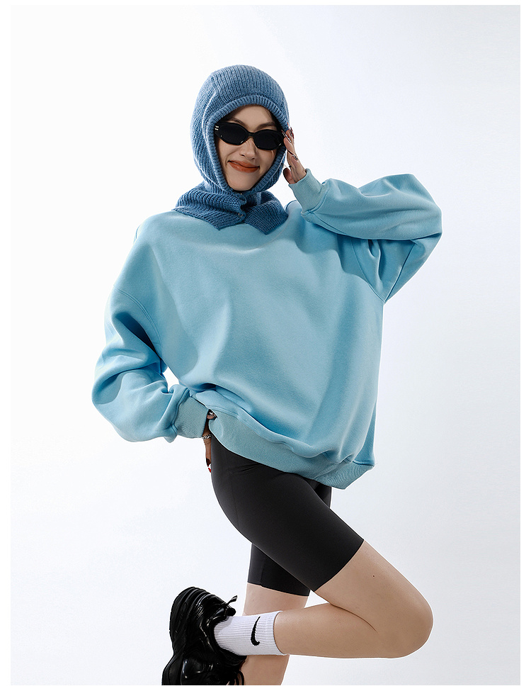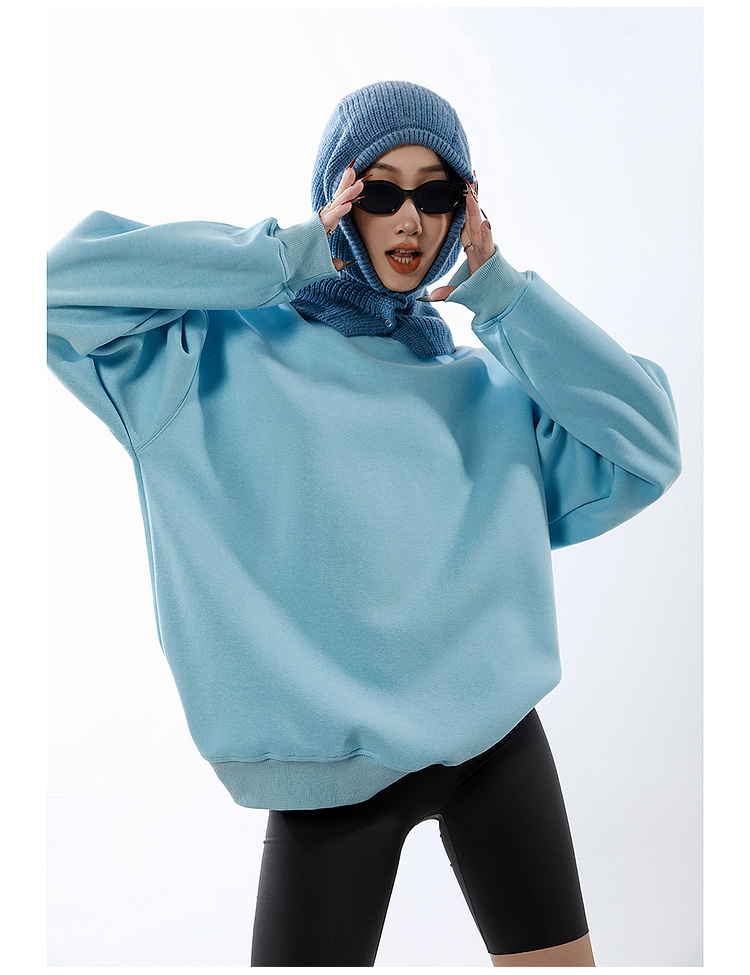 ICH MODE圓領純色美式百搭簡約春秋上衣寬鬆街頭廓形顯瘦休閒厚棉