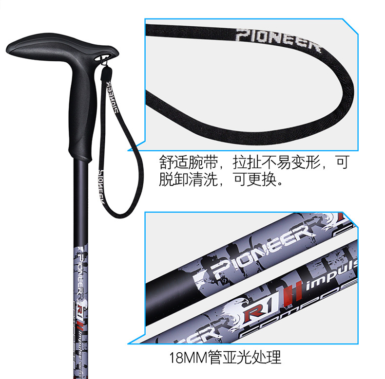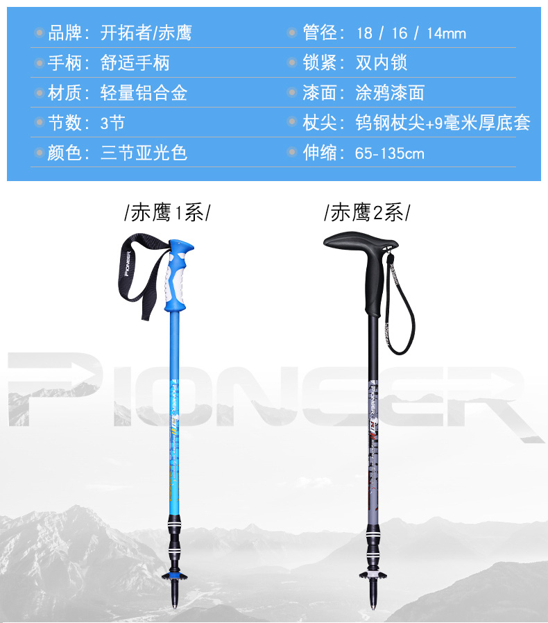 開拓者鋁合金登山杖 三節可伸縮減震手杖 老人柺杖爬山裝備行山仗