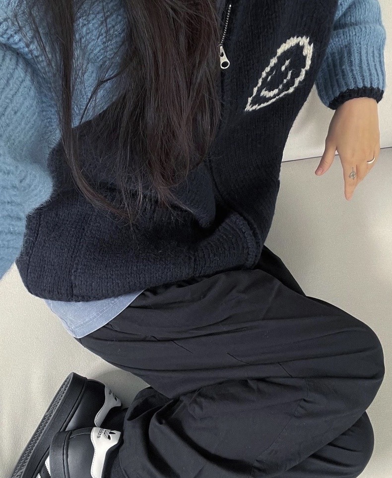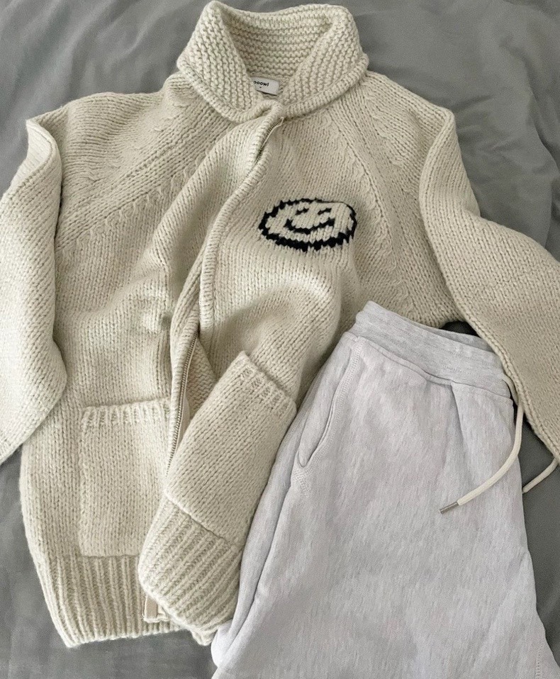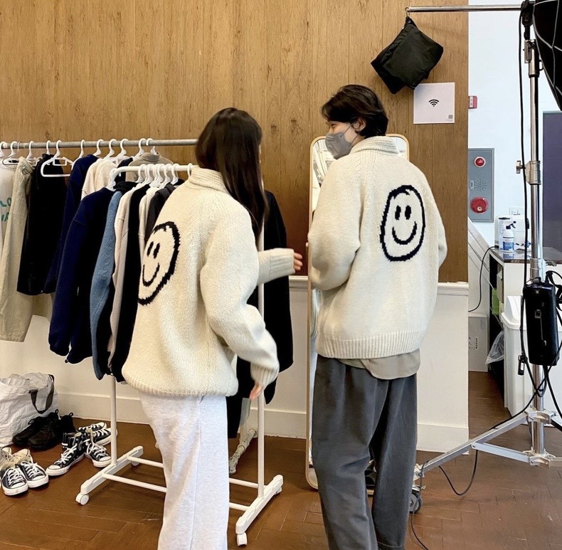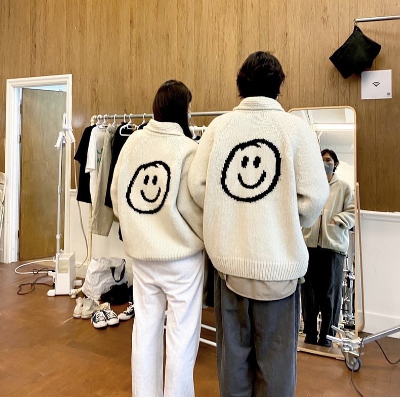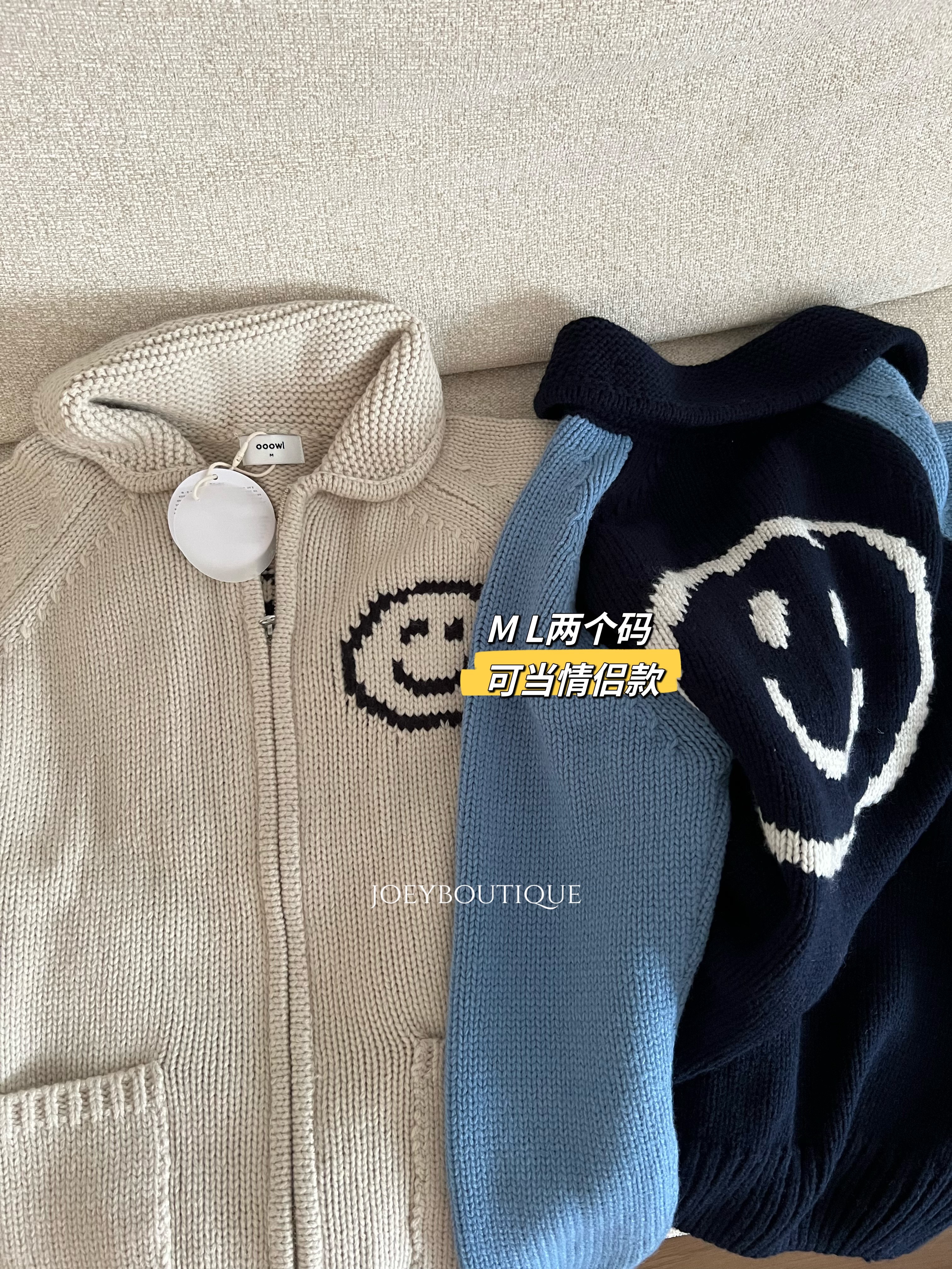 韓國ins博主 情侶裝 ooow*l 羊毛拉鍊軟糯針織毛衣開衫上衣男女