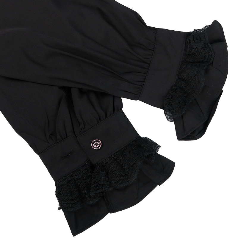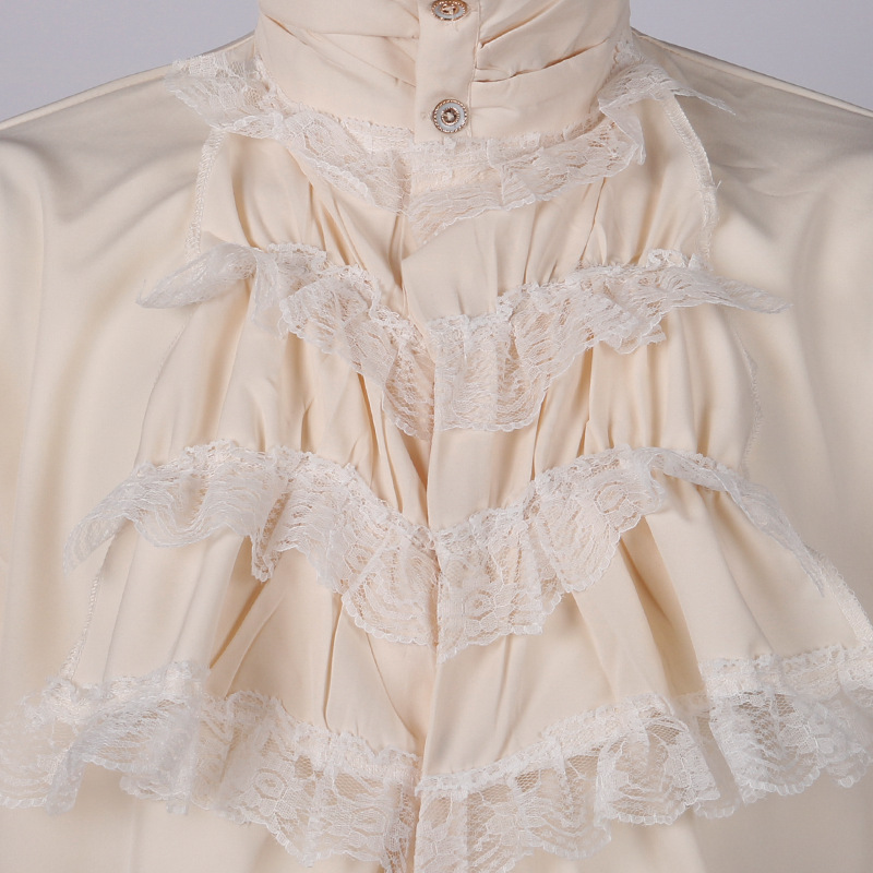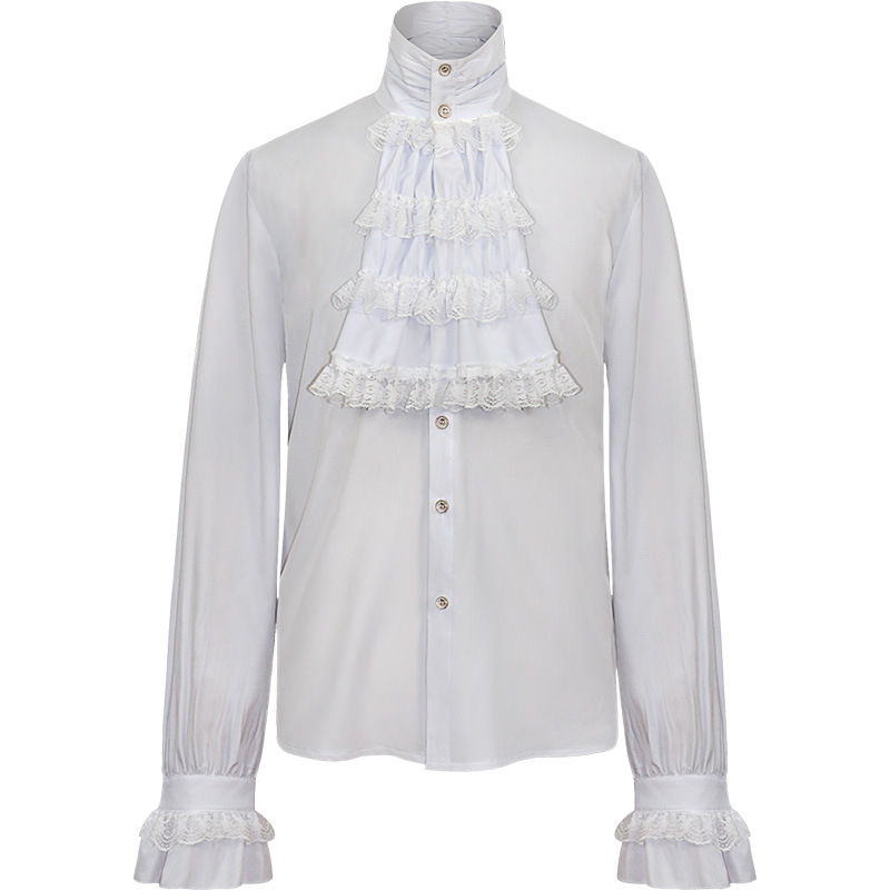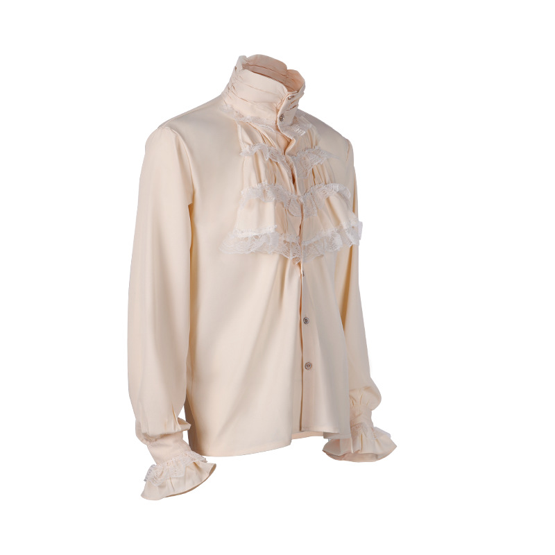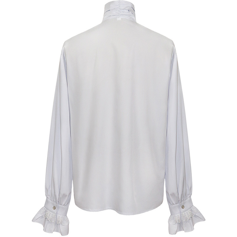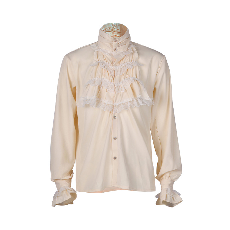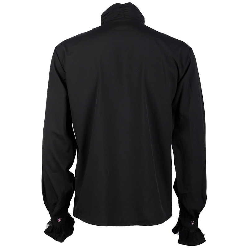 2023欧美新时尚哥特荷叶边立领长袖男式领带衬衫打褶袖口男装衬衣