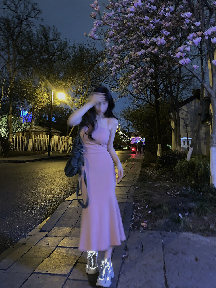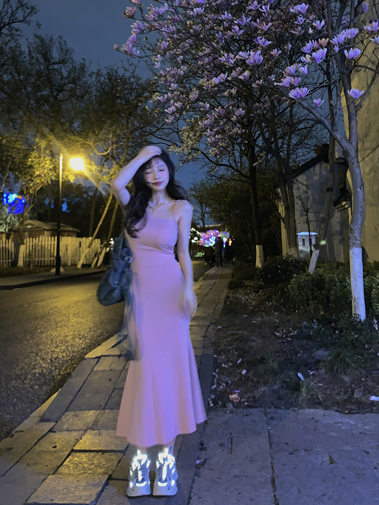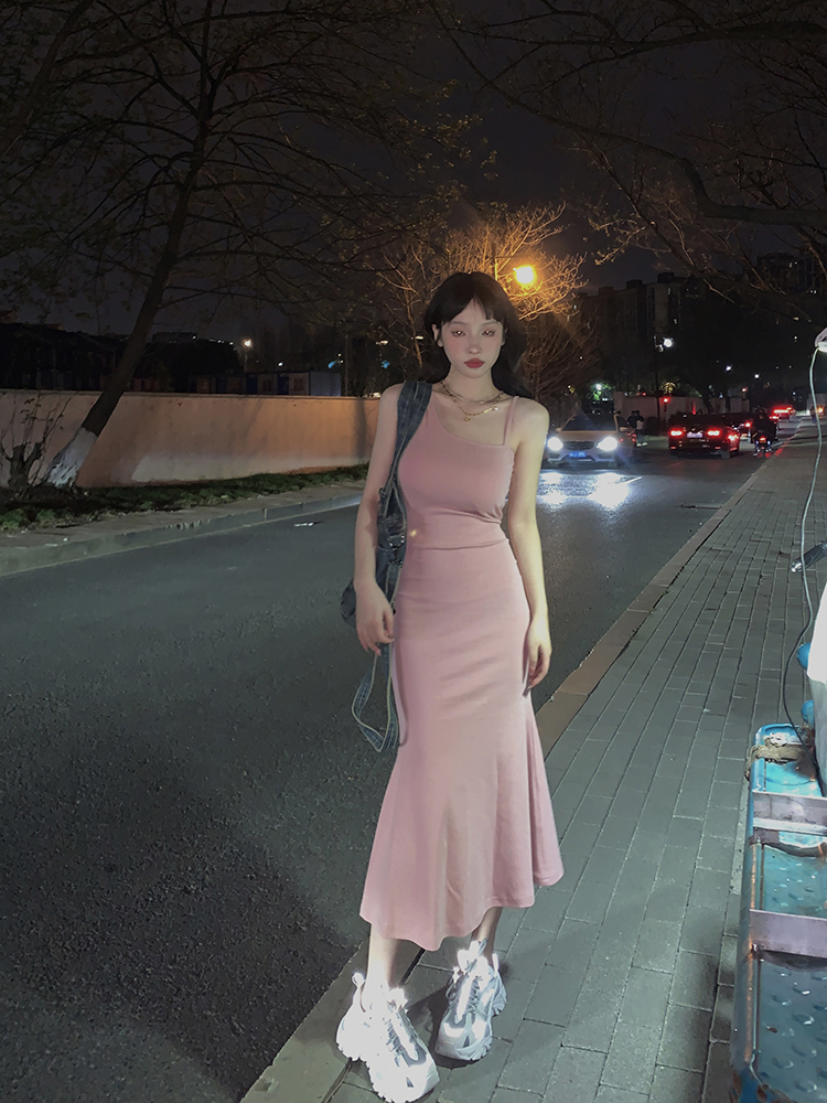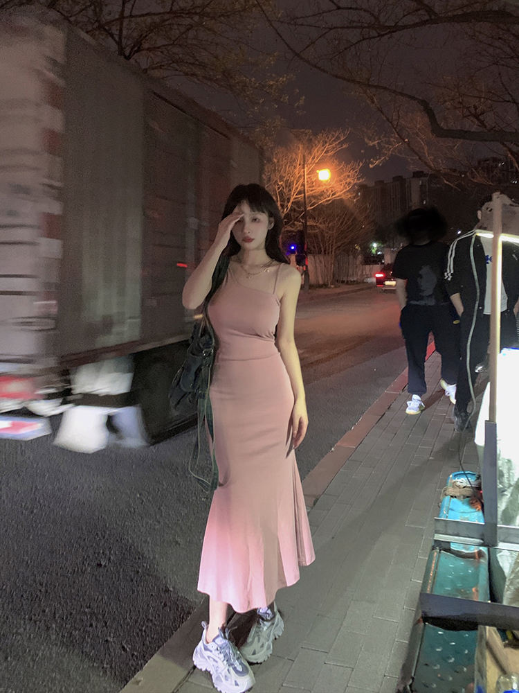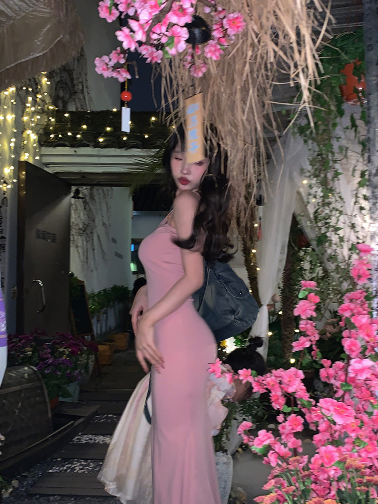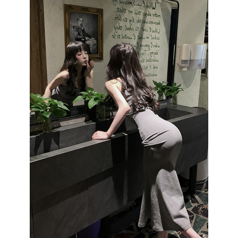 FunnJ方形茶幾 絕殺S腰臀比 收腰洋裝女包臀魚尾吊帶長裙(帶胸墊)
