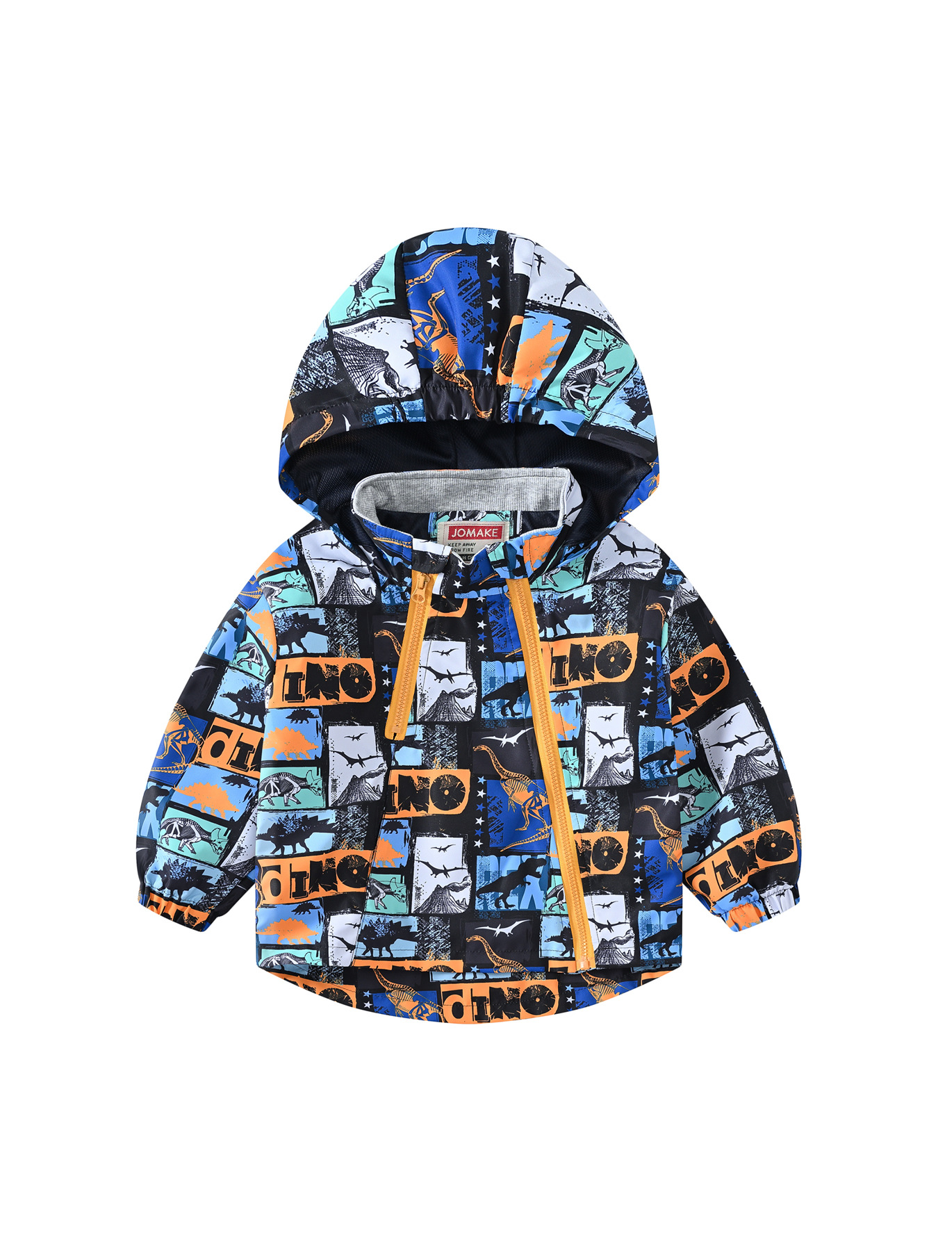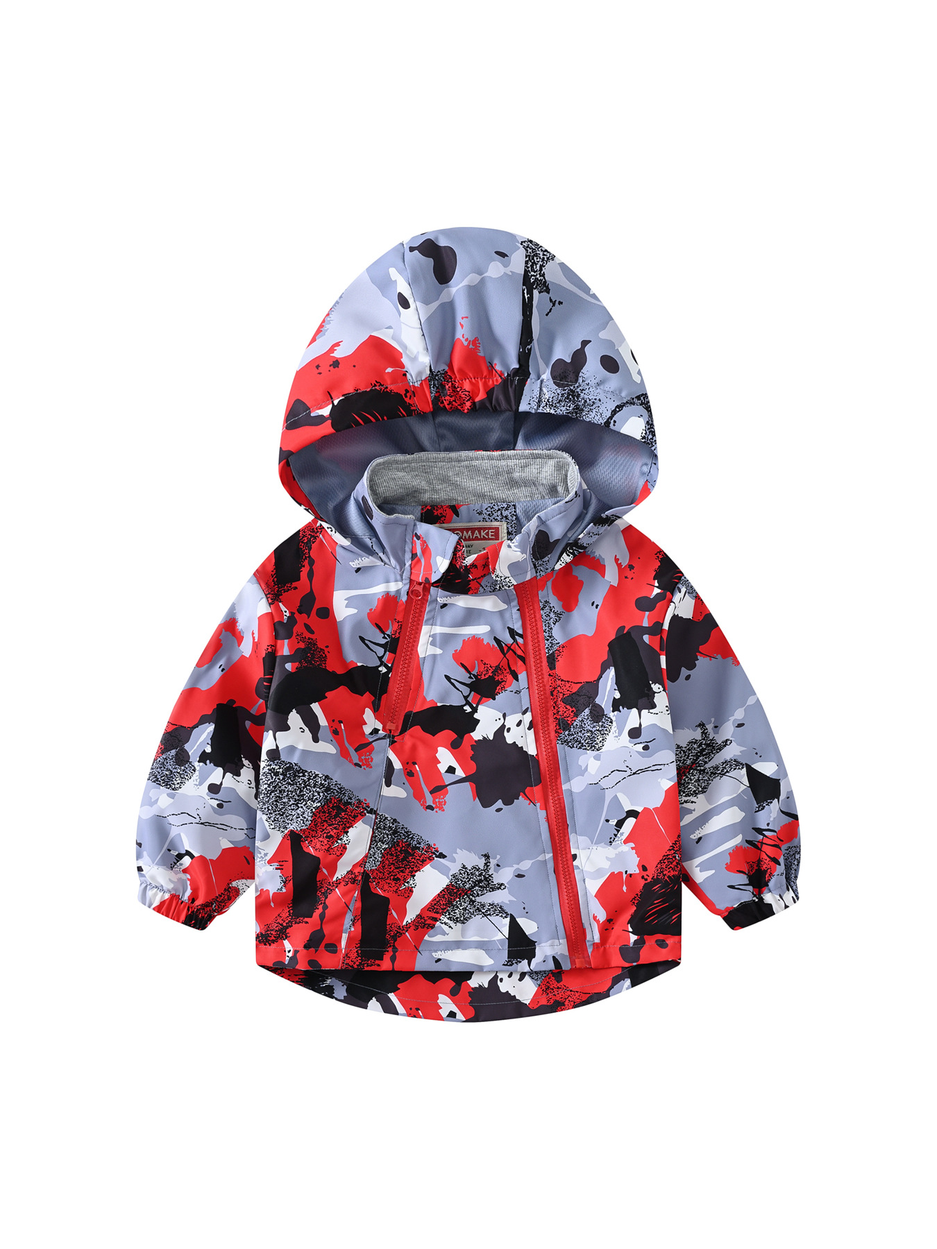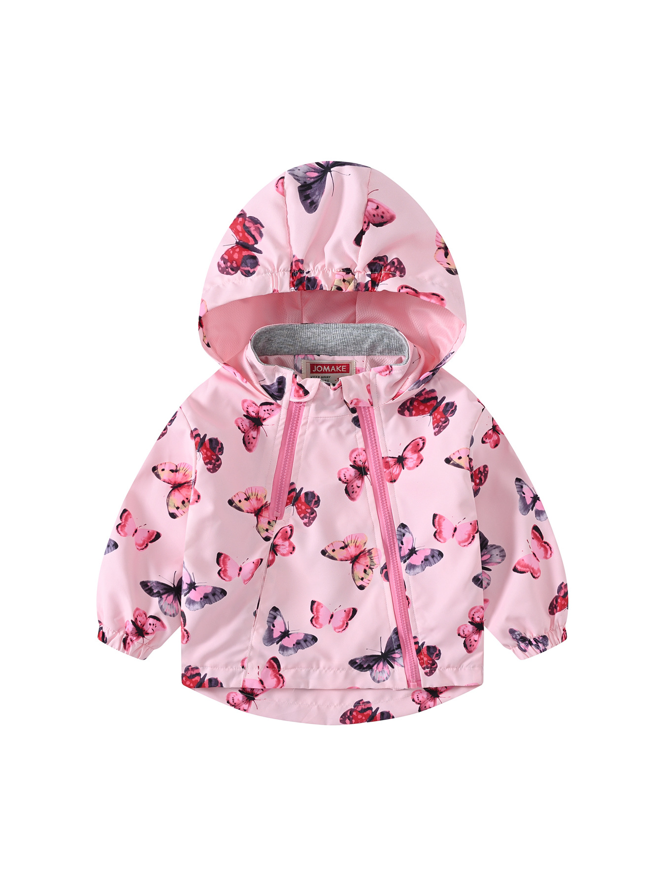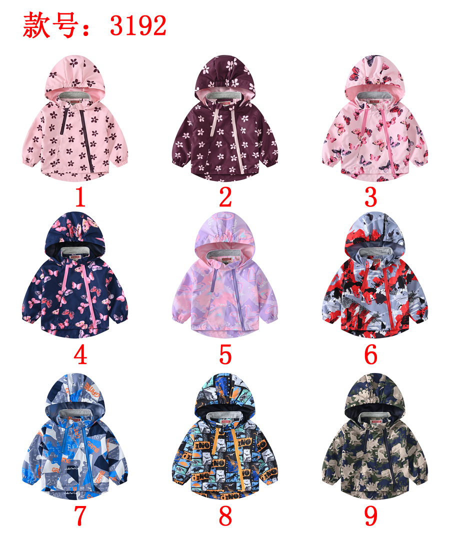 连帽儿童新款外出式双拉链卡通印花欧美风夹克风衣防风男童女童外