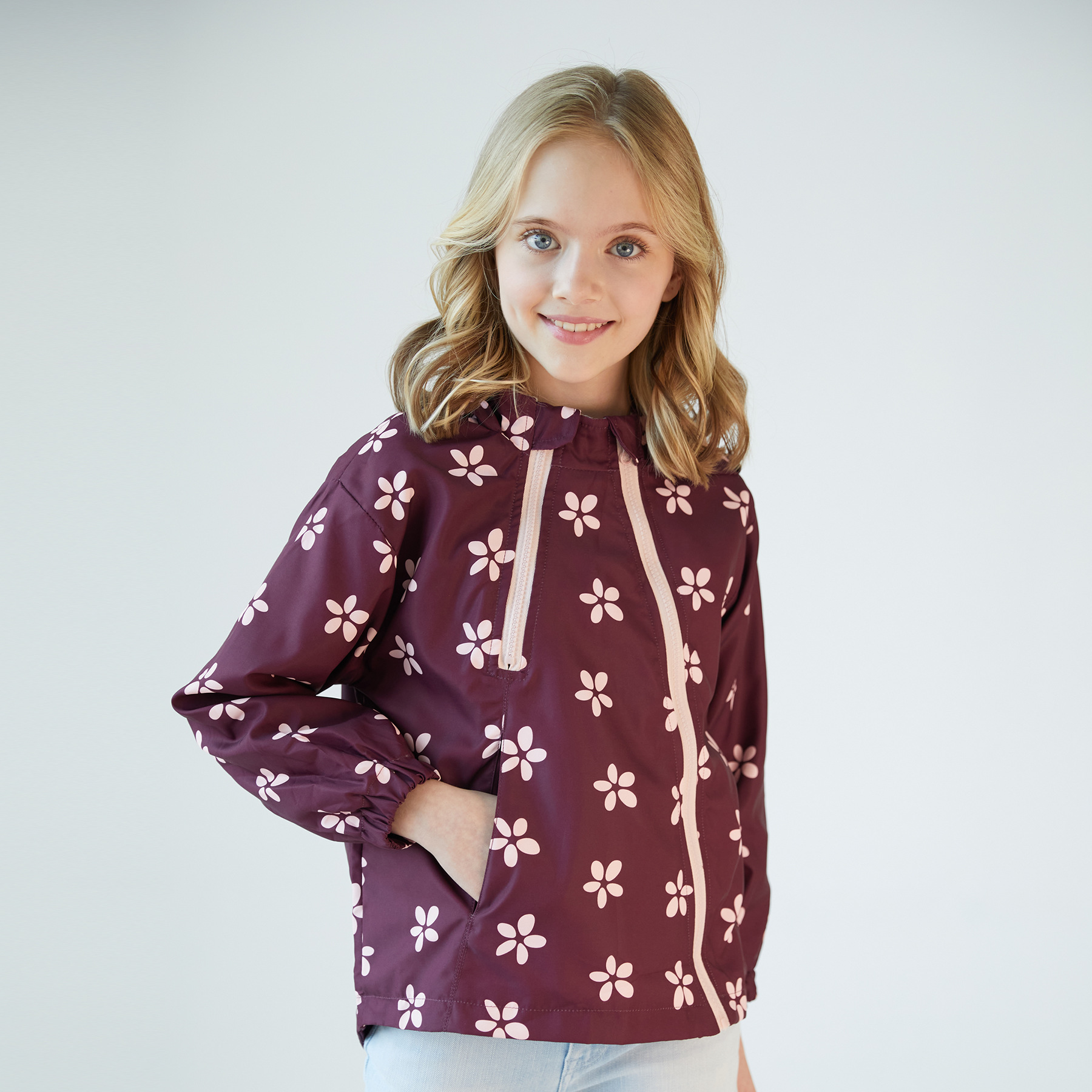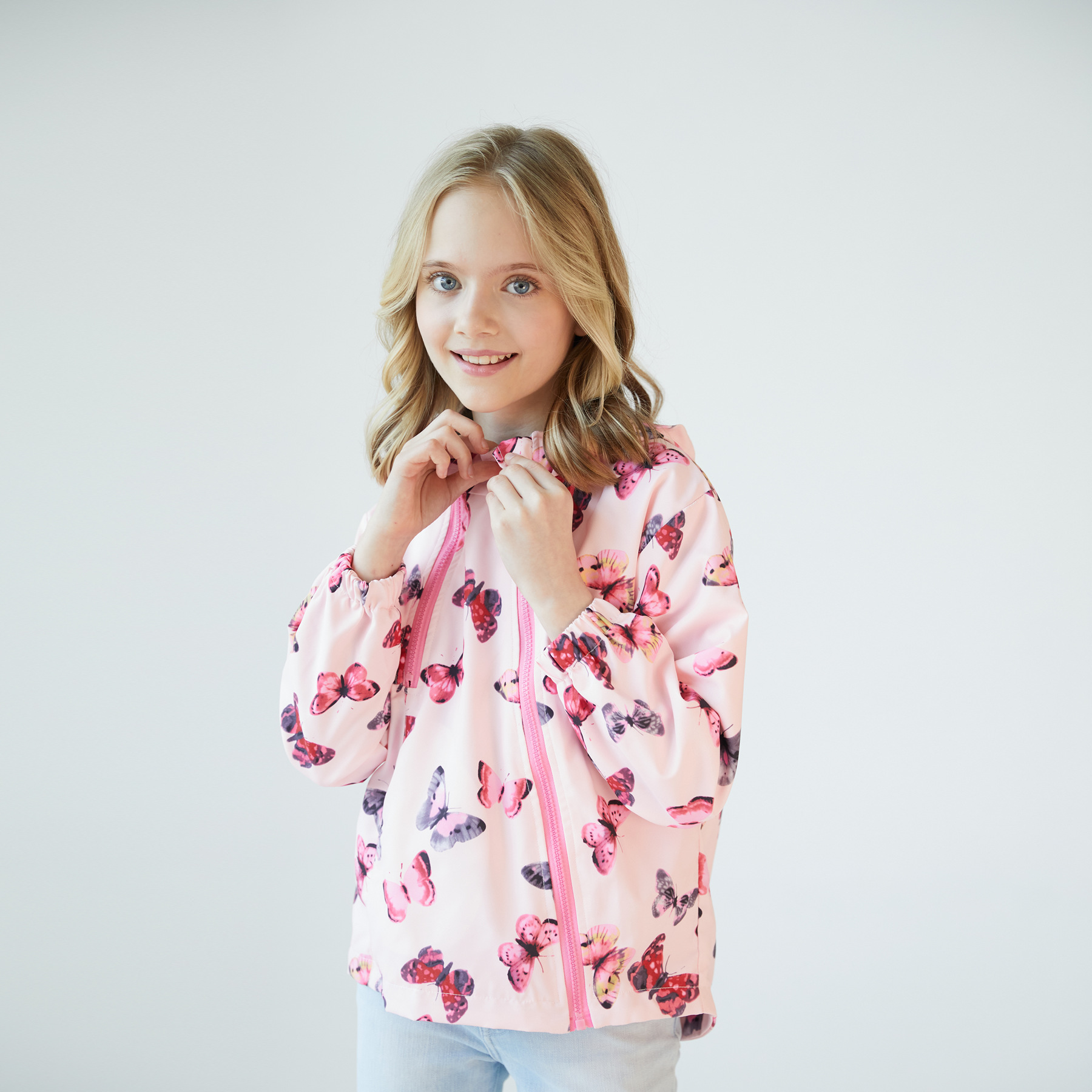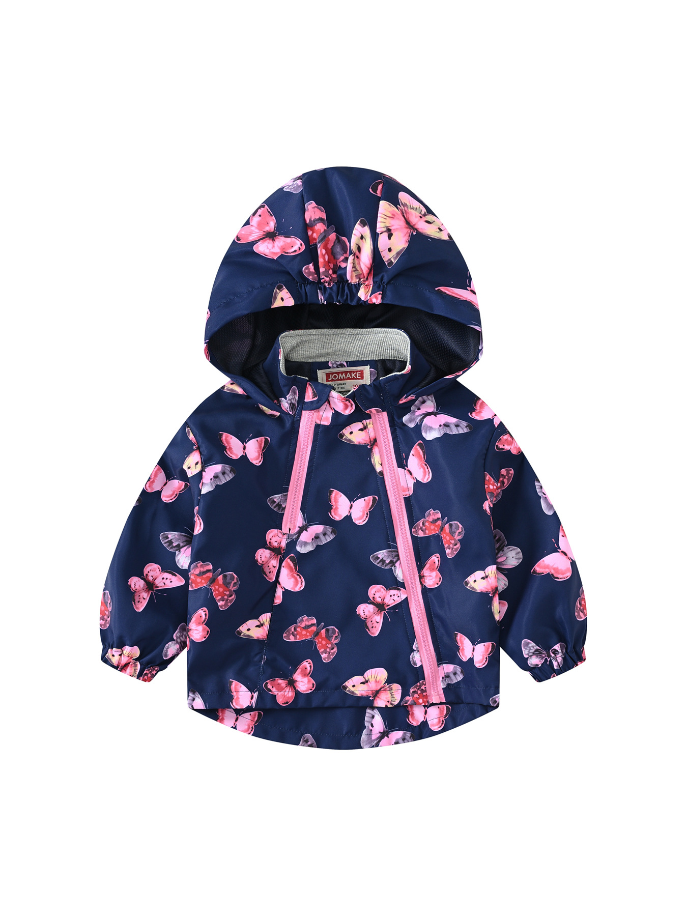 连帽儿童新款外出式双拉链卡通印花欧美风夹克风衣防风男童女童外