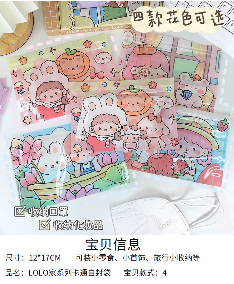 韩国LOLO系列零食首饰横版收纳自封袋少女心糖果口罩包装袋糖果袋