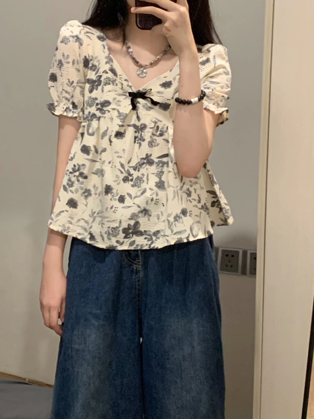 蓝色牛仔短袖衬衫女夏季新款设计感小众宽松衬衣别致绝美上衣法式