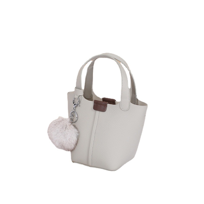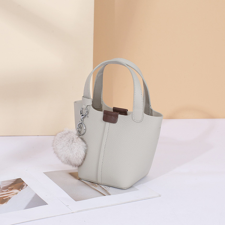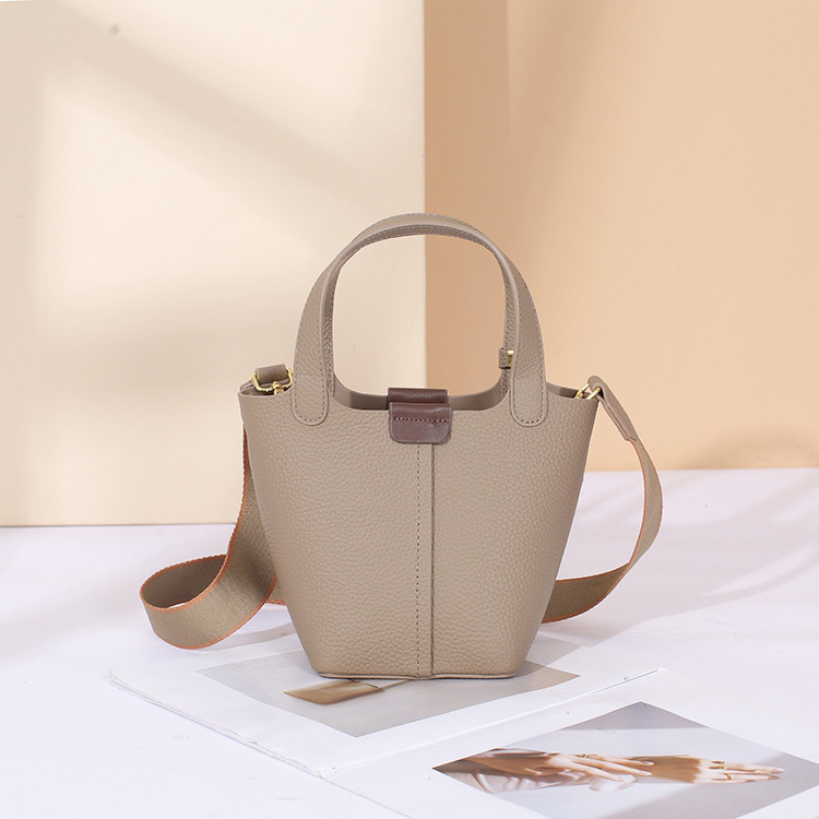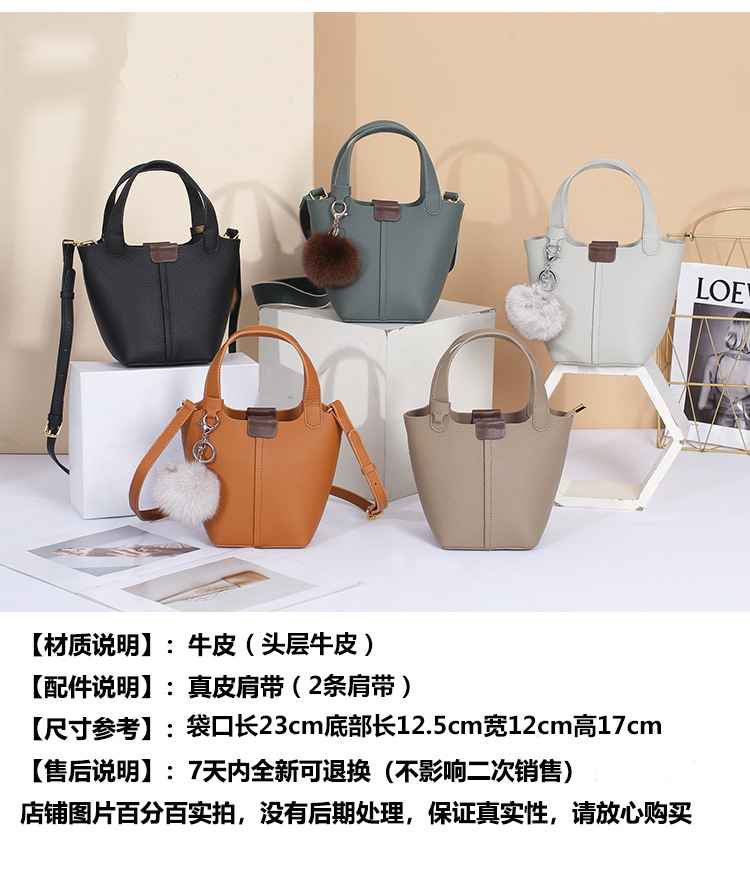 2024新款时尚百搭头层牛皮女士手提包 轻奢真皮大容量菜篮子女包