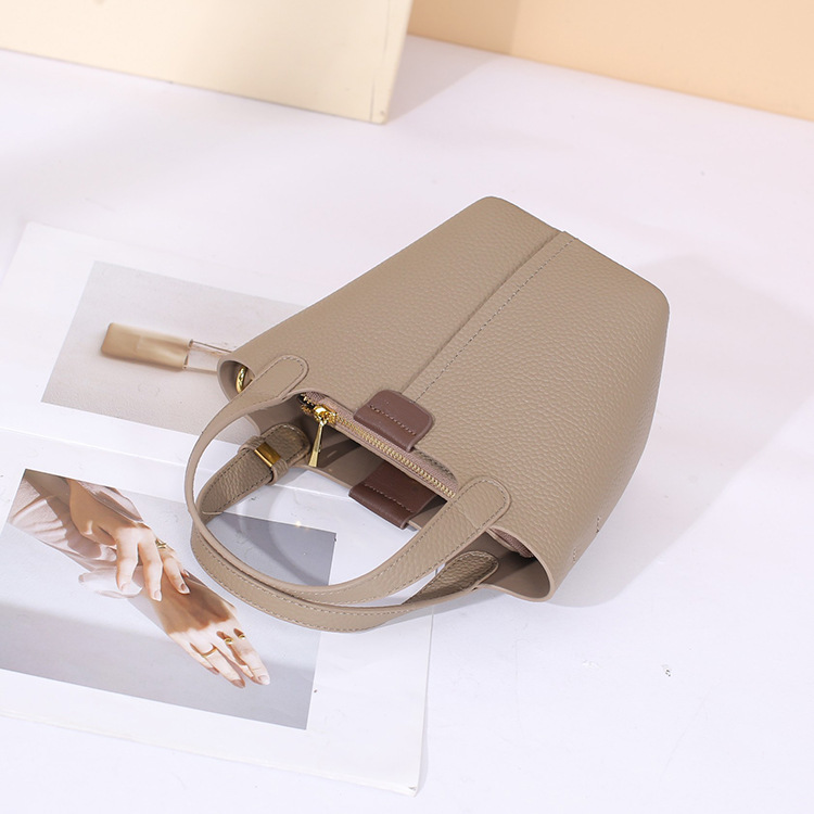 2022新款真皮女包水桶包通勤手提包小众设计感托特包单肩斜挎包女超值价:¥140
