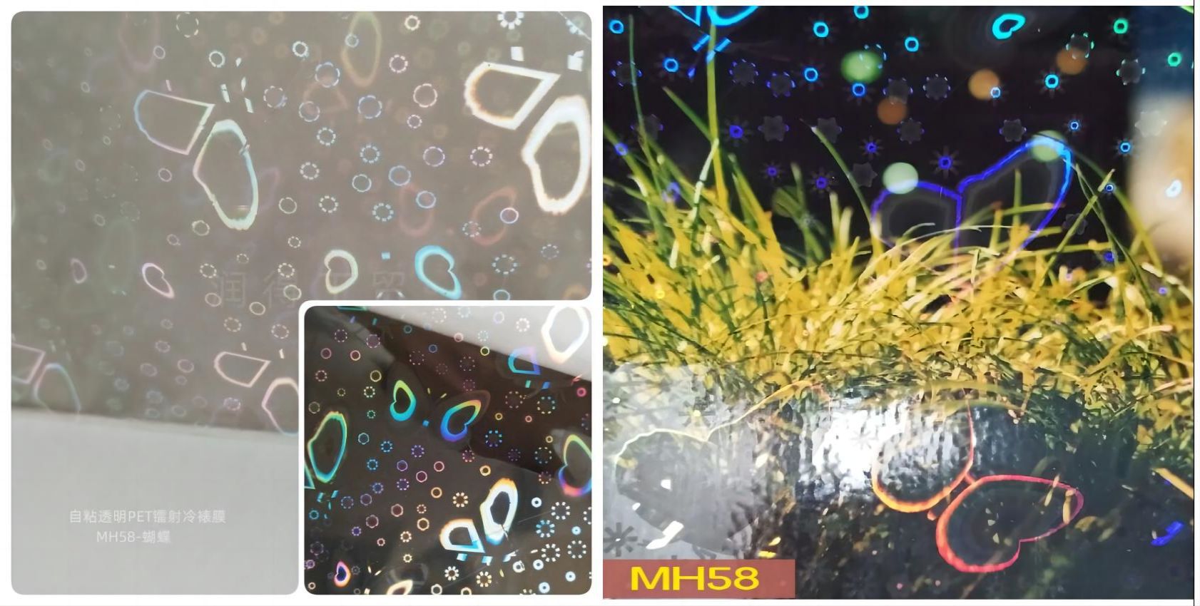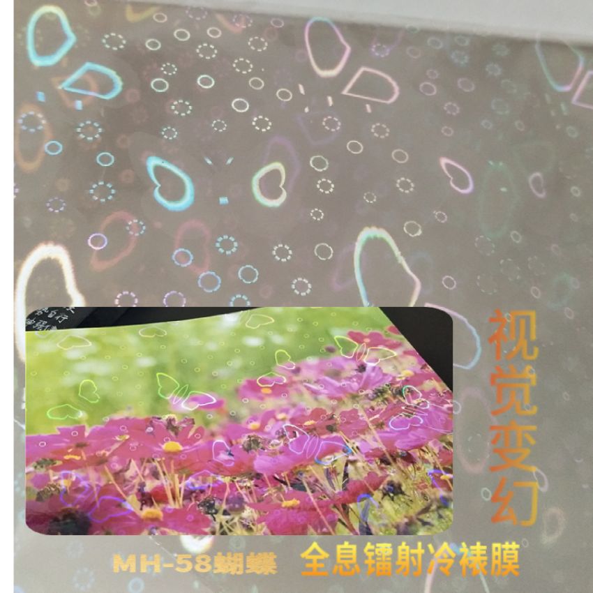 现货 PET彩色蝴蝶冷裱膜透明介质镭射不干胶 相片胸章包装保护膜