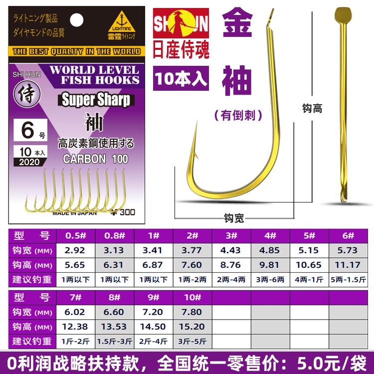 侍魂伊势尼伊豆新关东金袖钩丸世溪流海夕日本钓鱼钩散装渔具批发