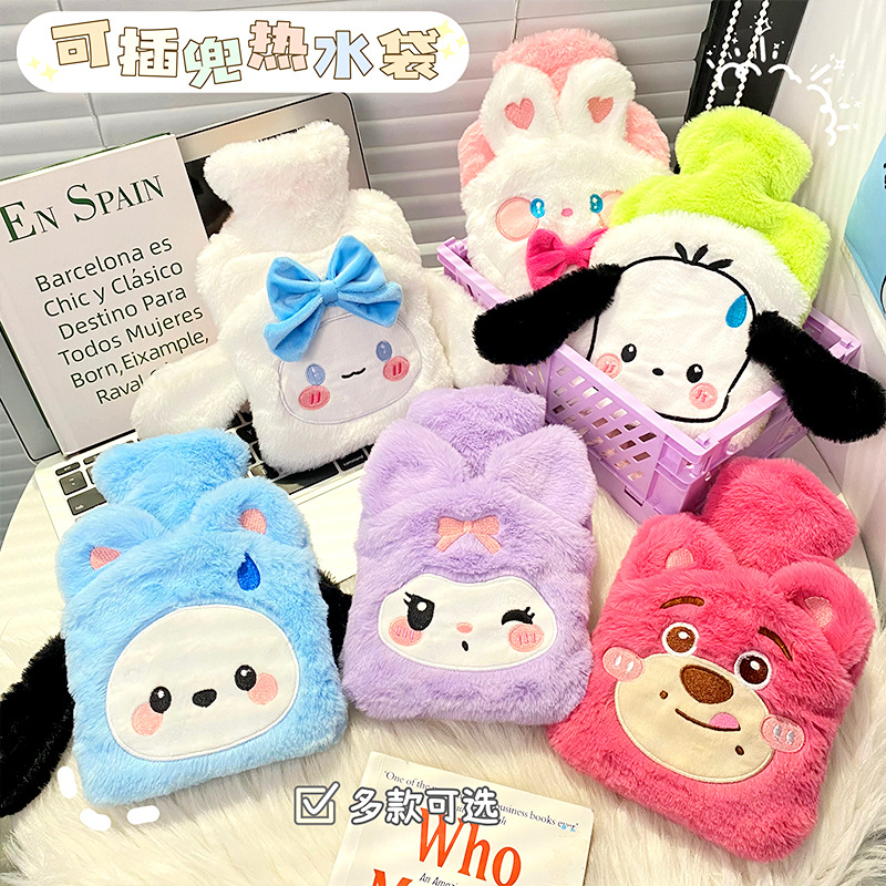 新款可插兜毛绒热水袋可爱卡通注水暖水袋冬季女生用宫寒暖身防爆