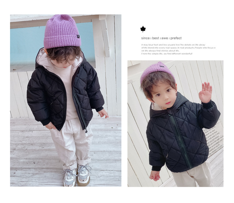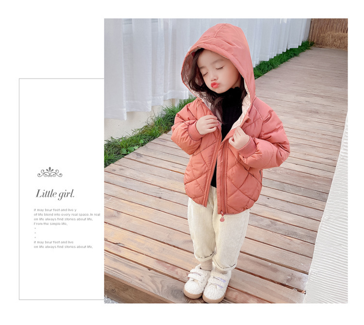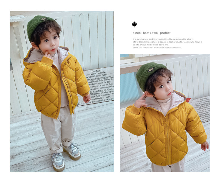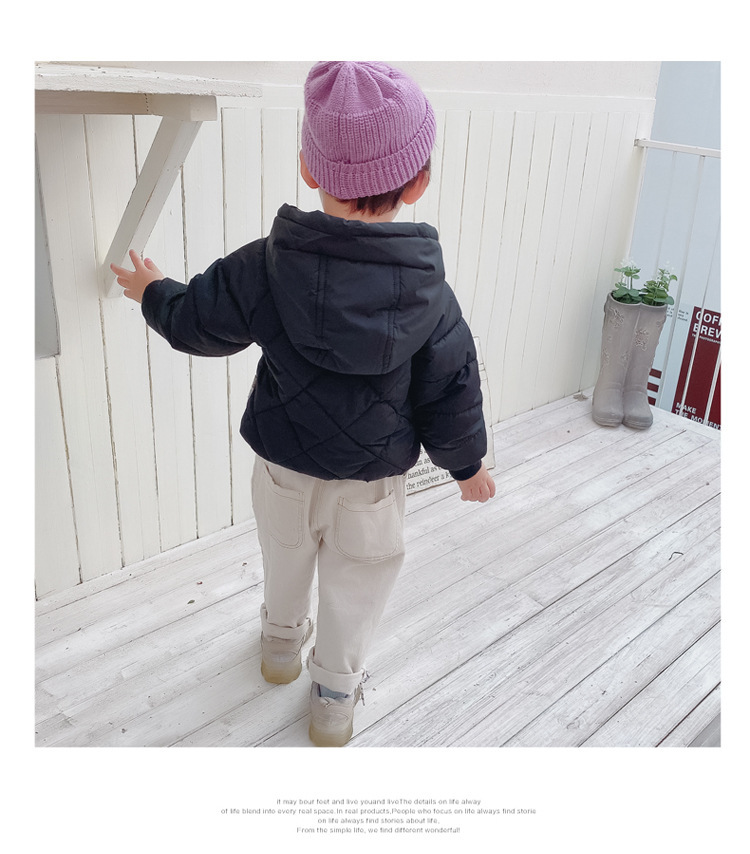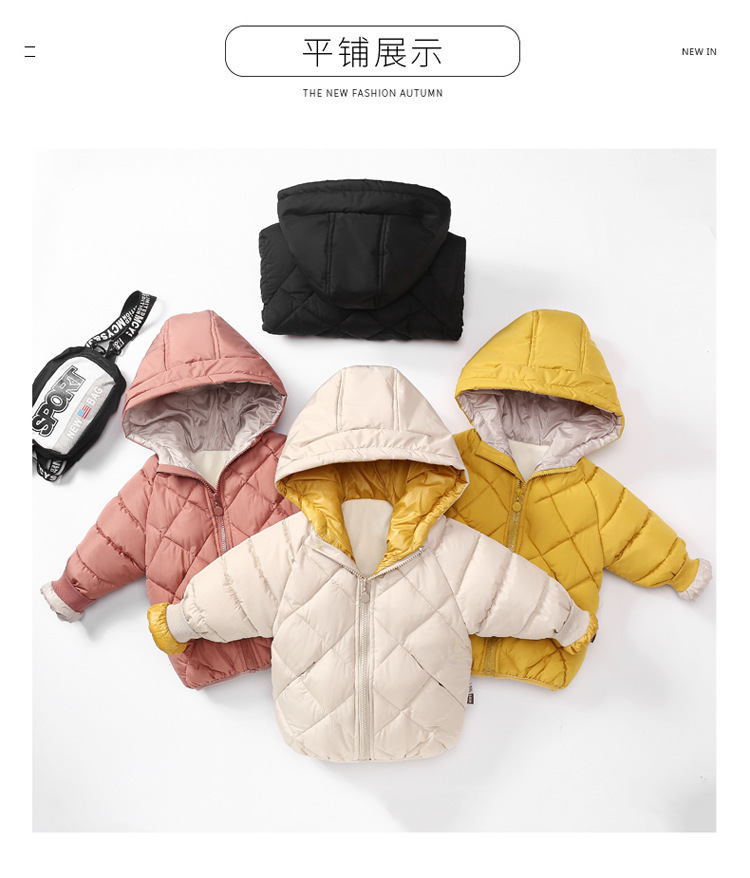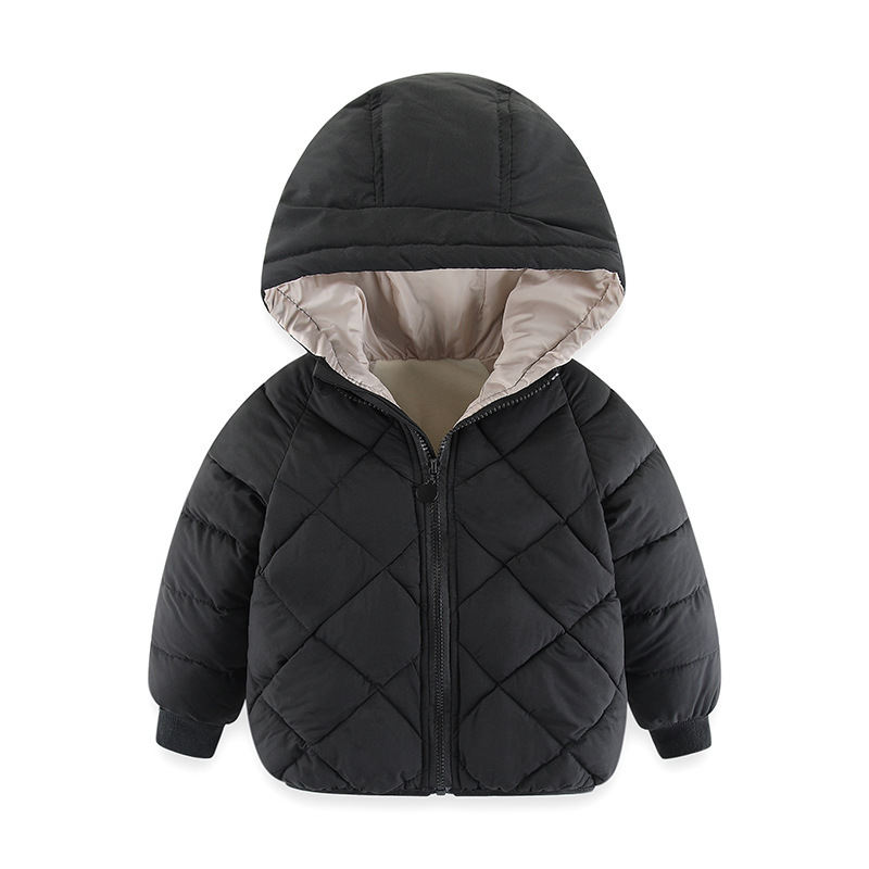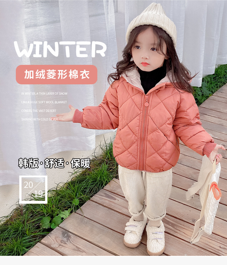 秋冬童装儿童棉衣男女宝宝加厚连帽外套中小童菱形格羽绒棉服短款