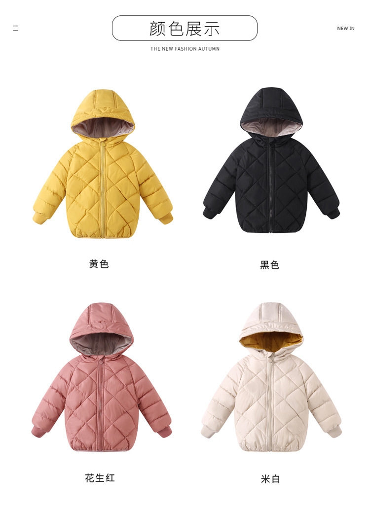 冬款新款儿童羽绒棉服 2022棉衣儿童羽绒棉服轻薄款男童女童秋冬宝宝小棉袄保暖外套冬款新款儿童羽绒棉服外套菱形格连帽上衣