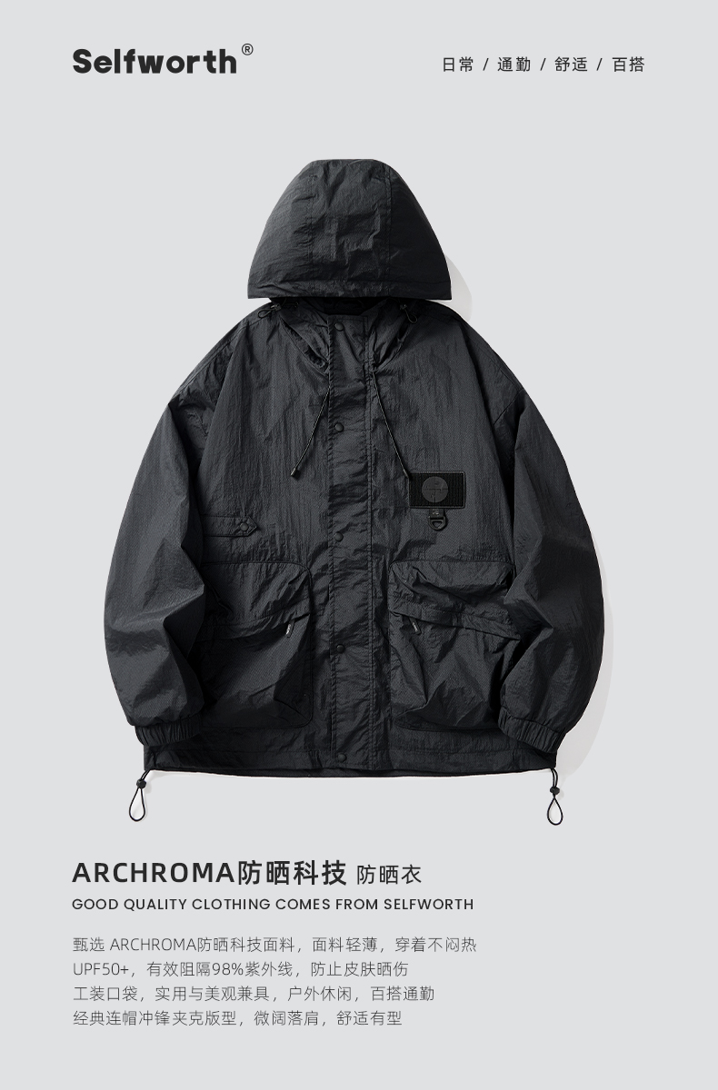 高級感男裝戶外防曬衣2023夏季新款休閒工作服衝鋒衣男士輕薄防曬服