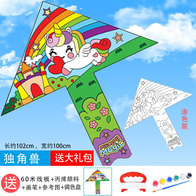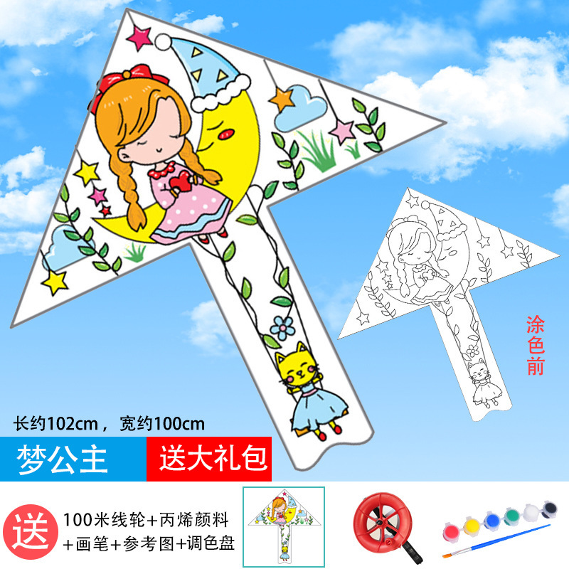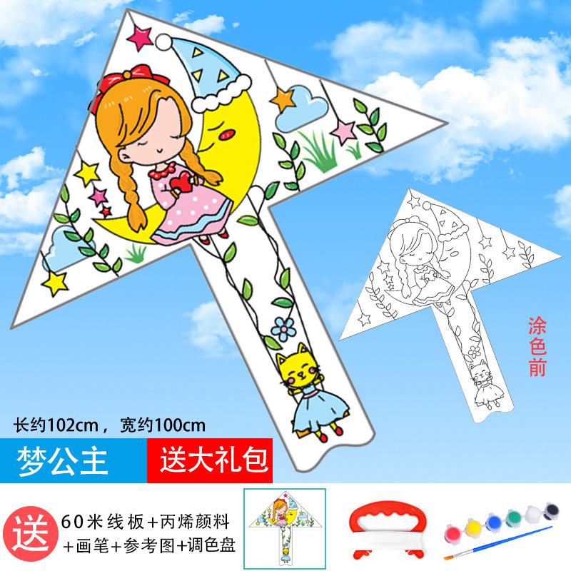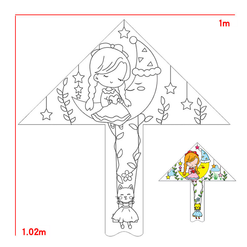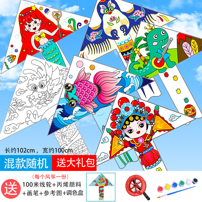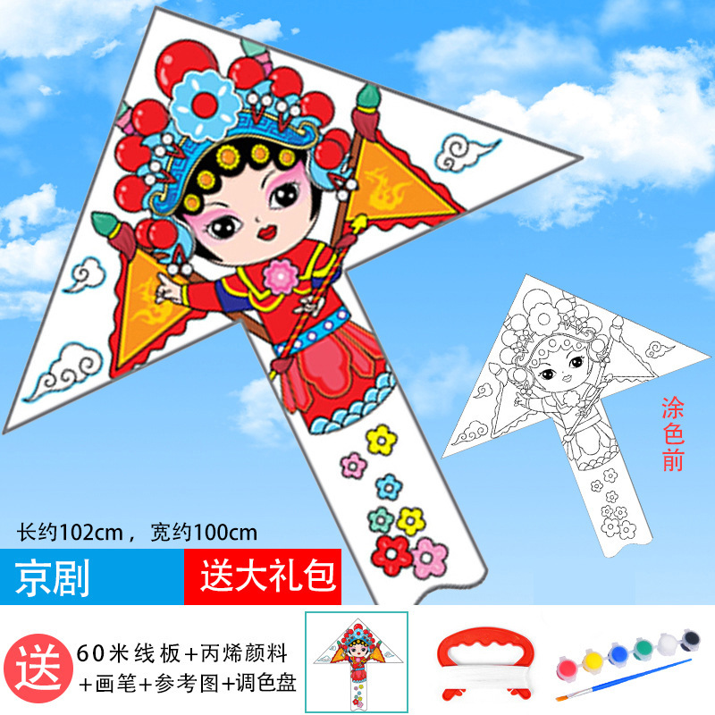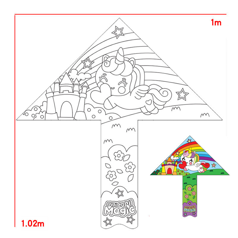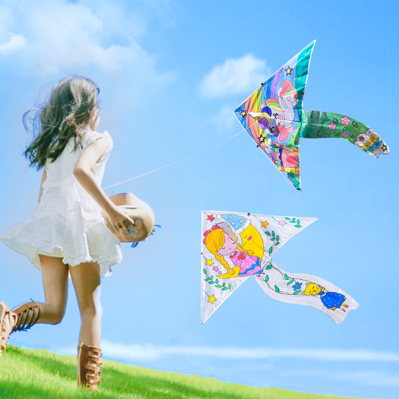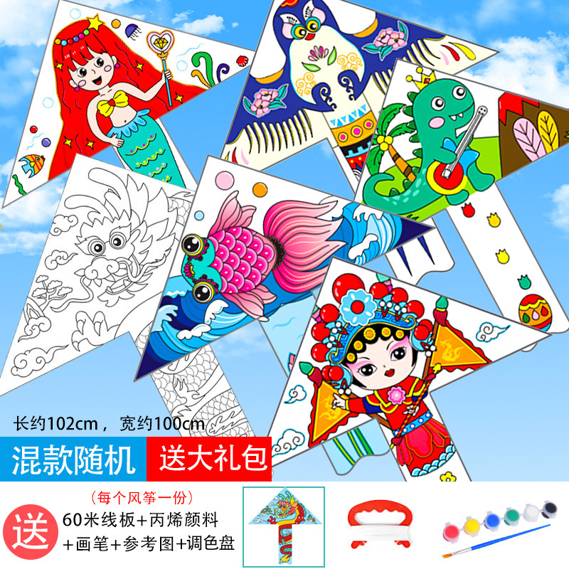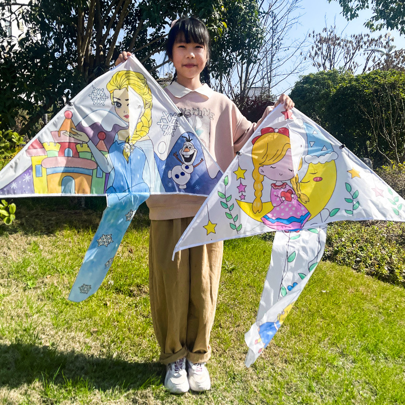 儿童空白风筝diy材料包微风易飞手工制作手绘画填色涂鸦卡通新款