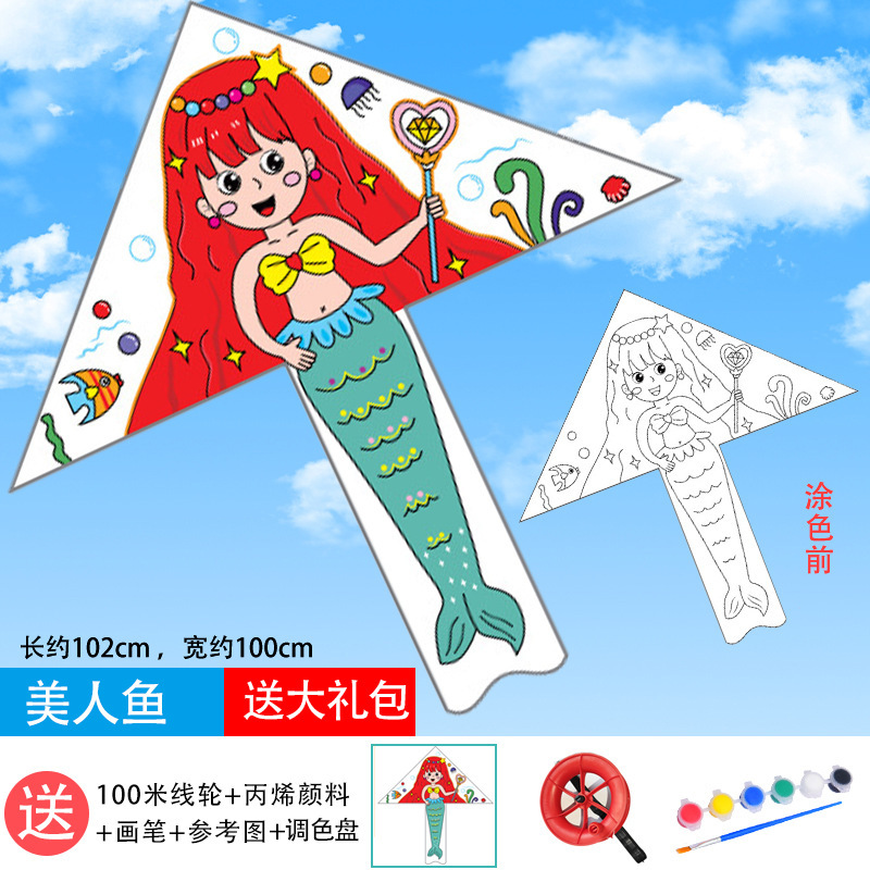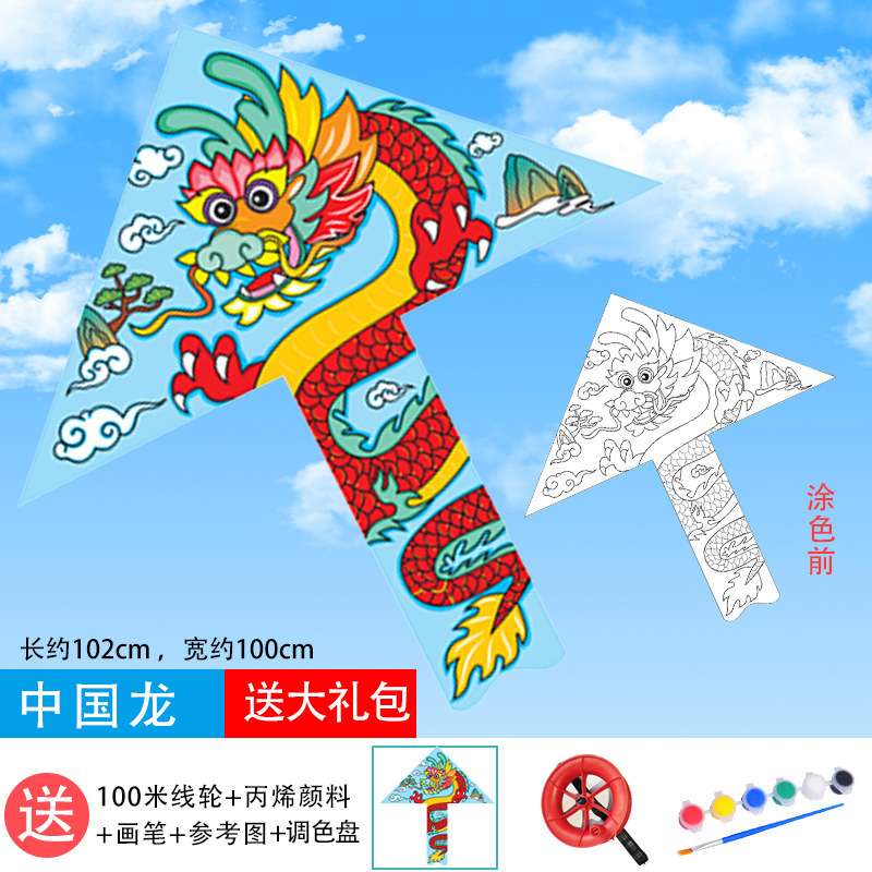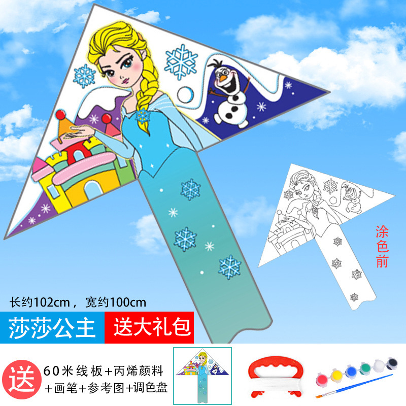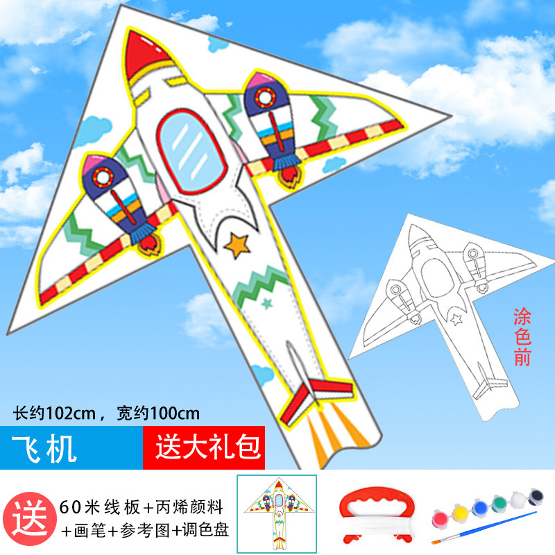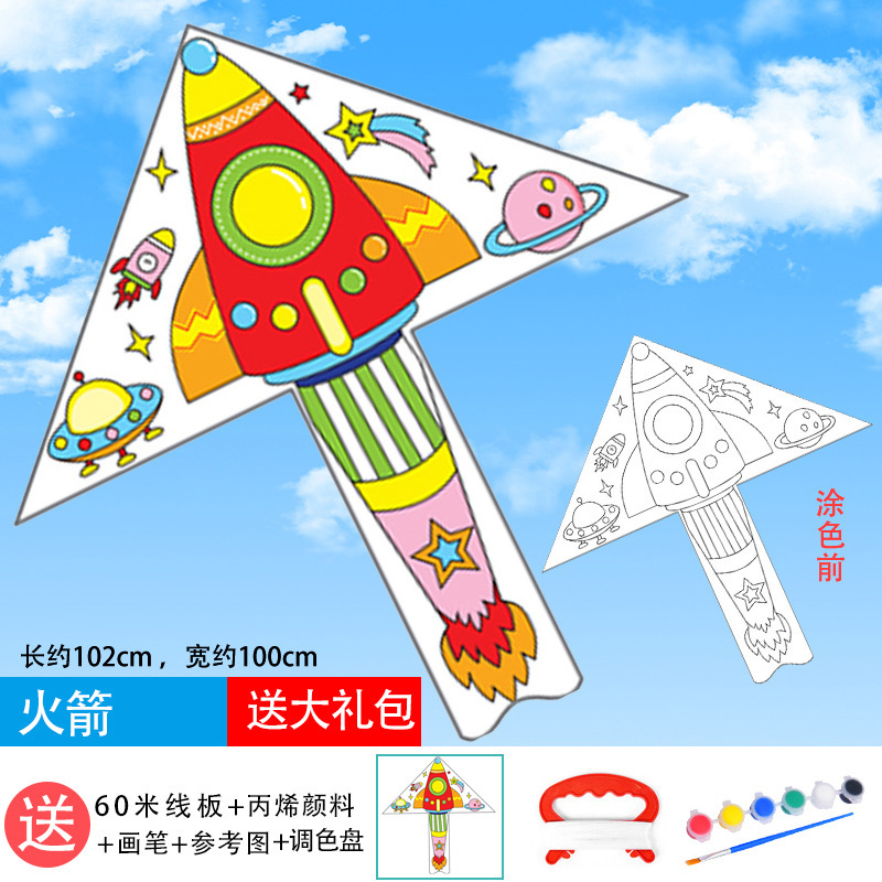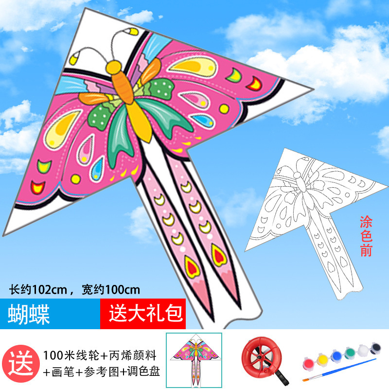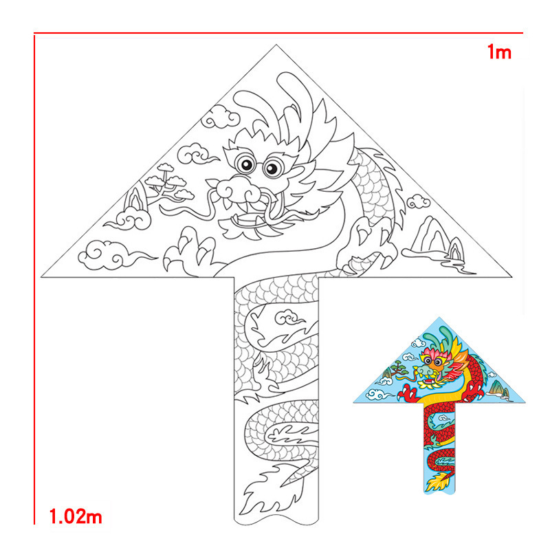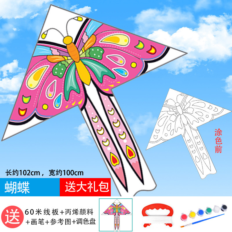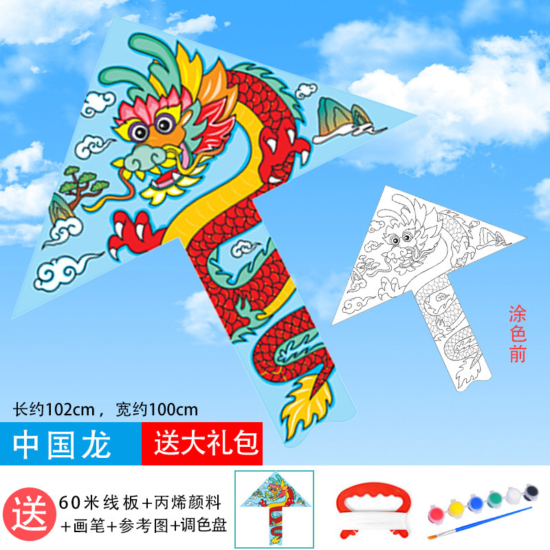 儿童空白风筝diy材料包微风易飞手工制作手绘画填色涂鸦卡通新款