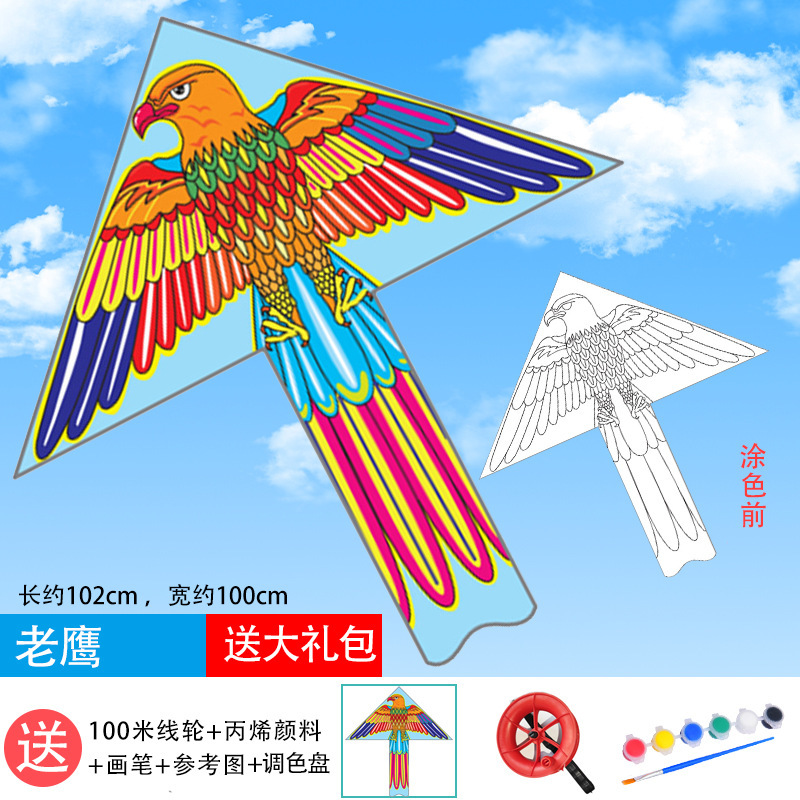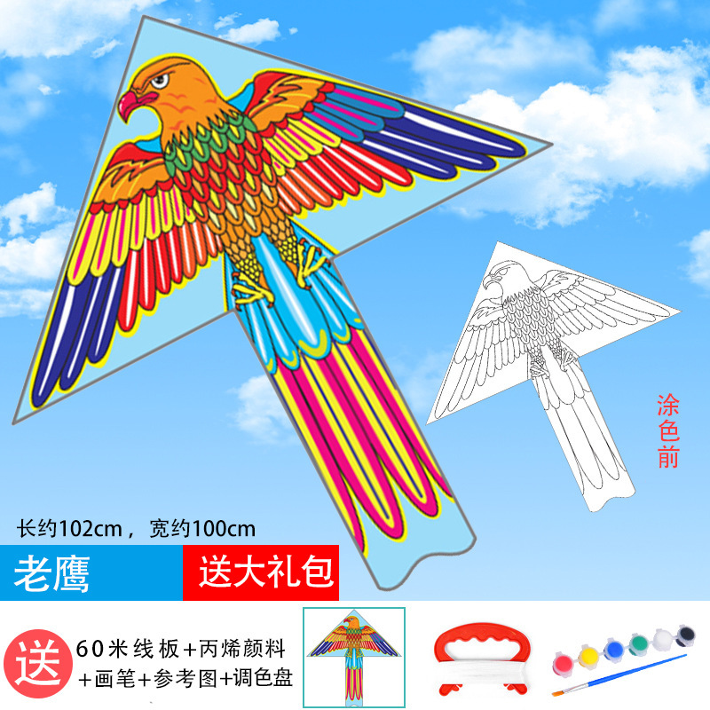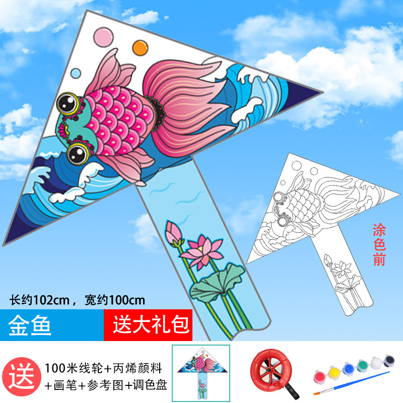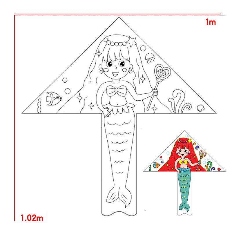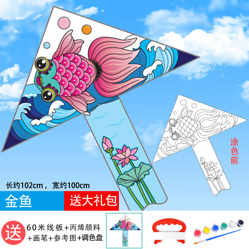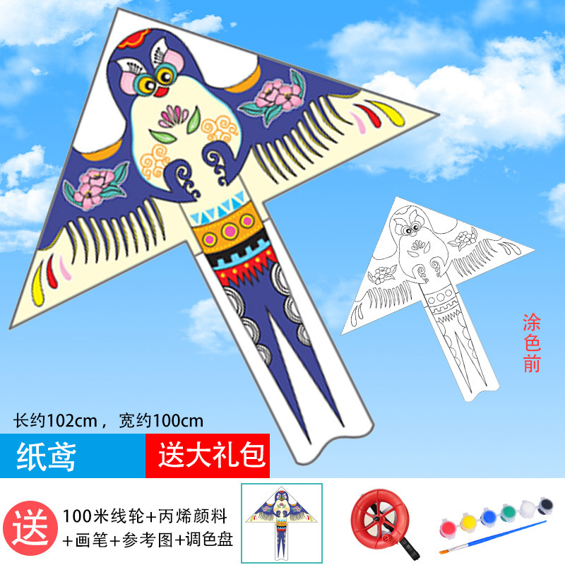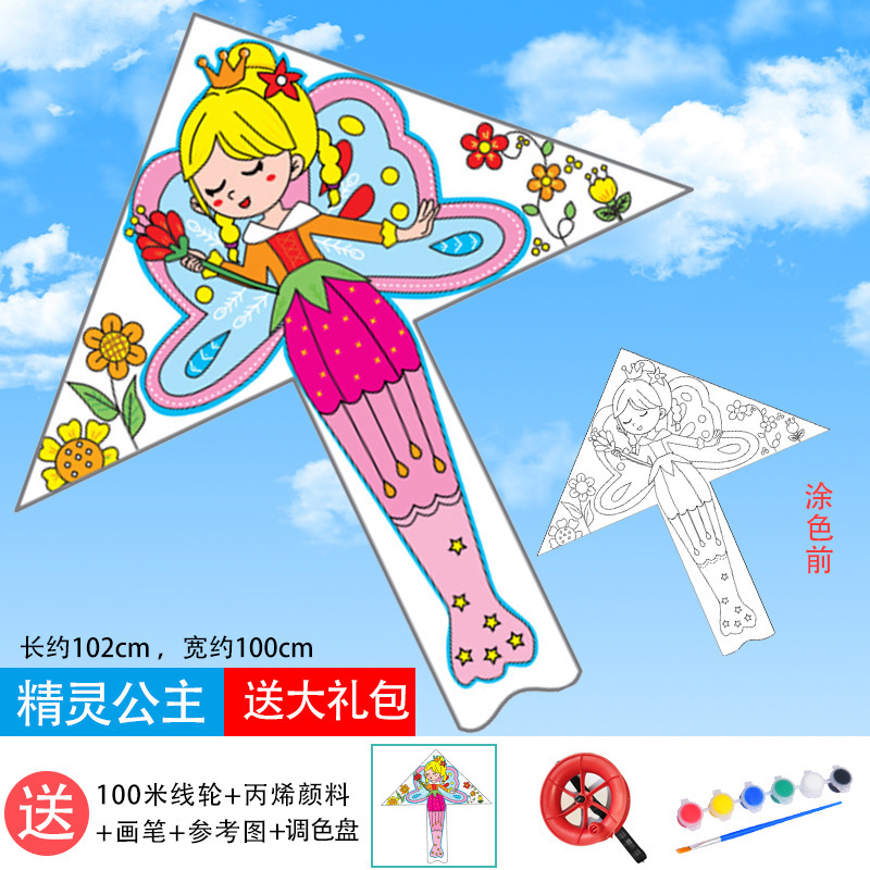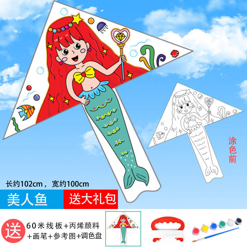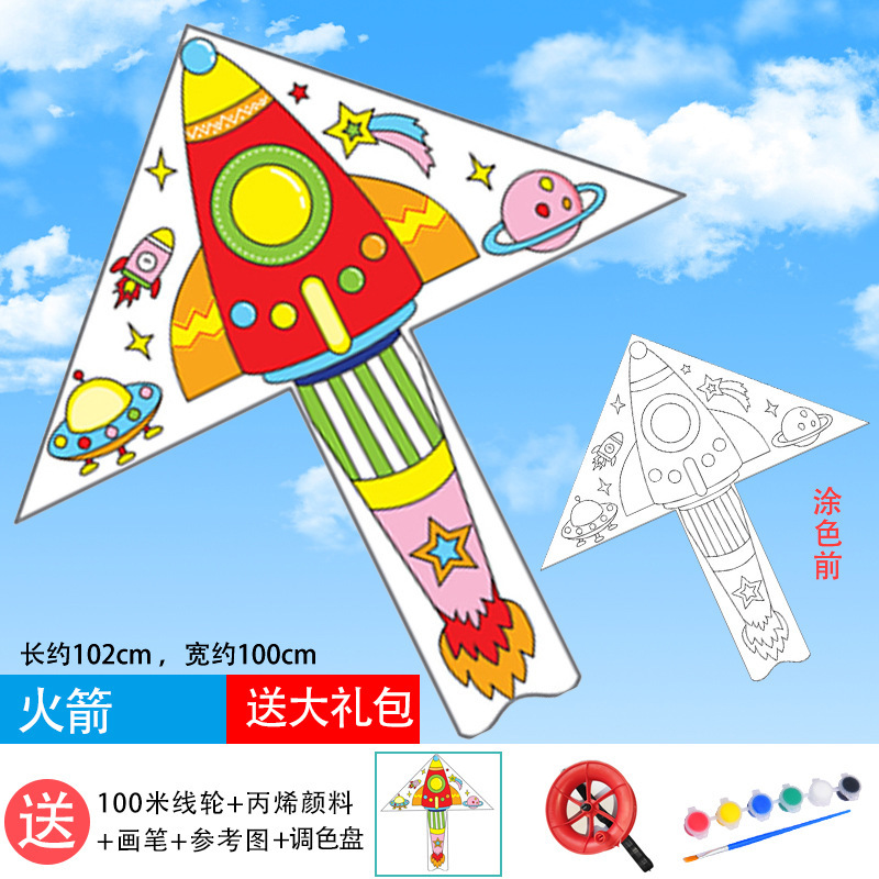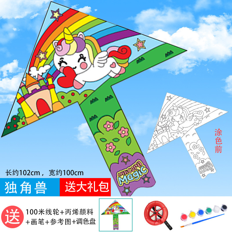 儿童空白风筝diy材料包微风易飞手工制作手绘画填色涂鸦卡通新款