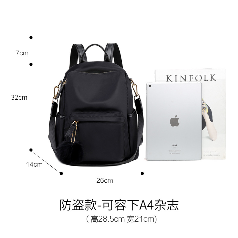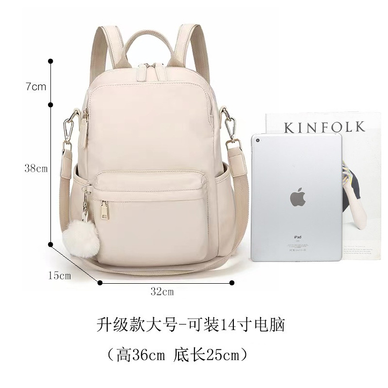 牛津布双肩包女多功能2024新款休闲百搭学生书包轻便简约防盗背包