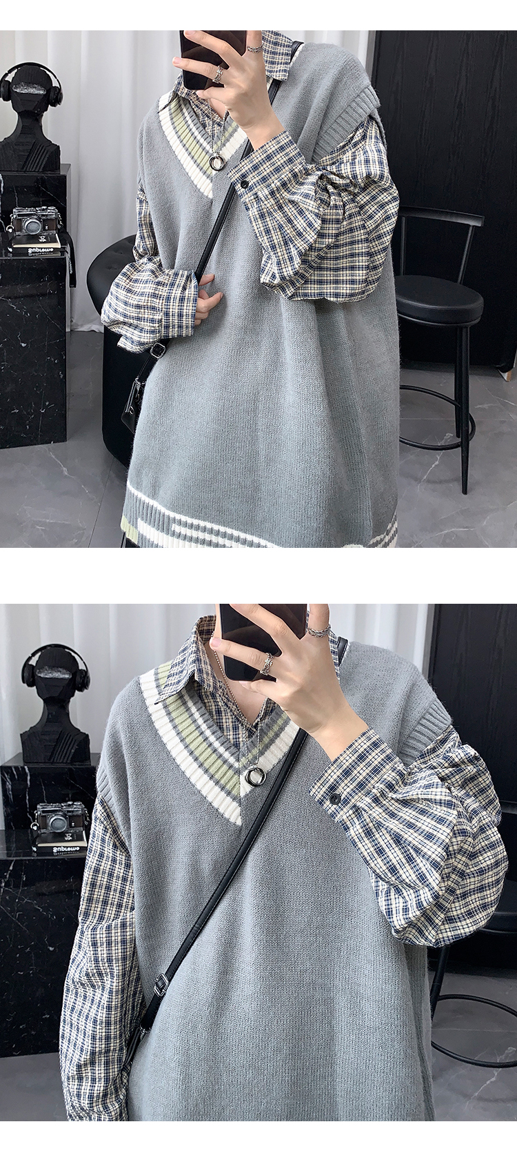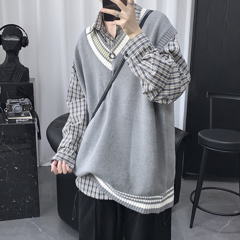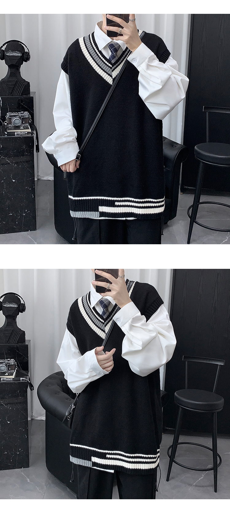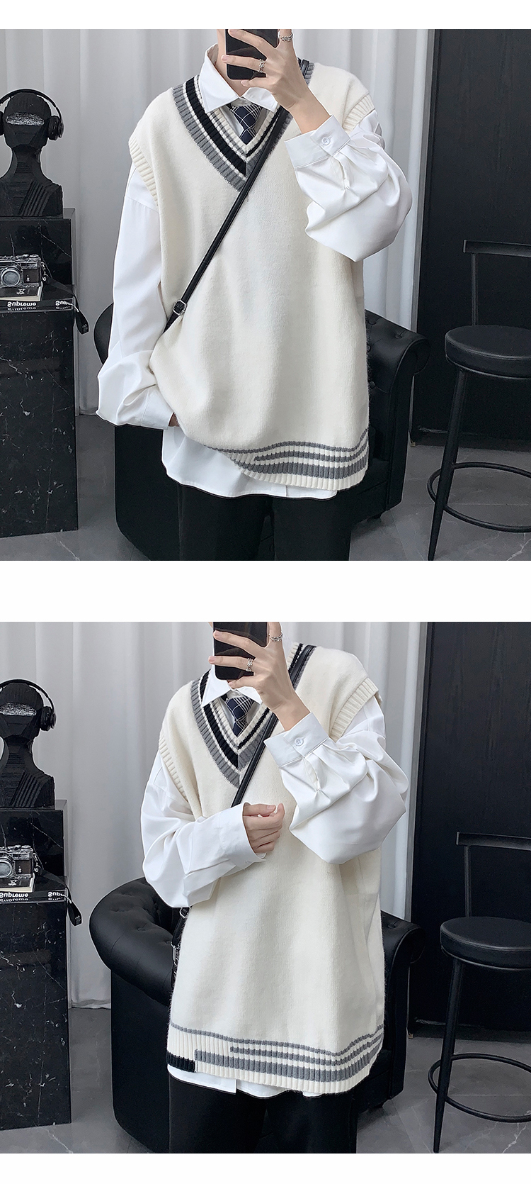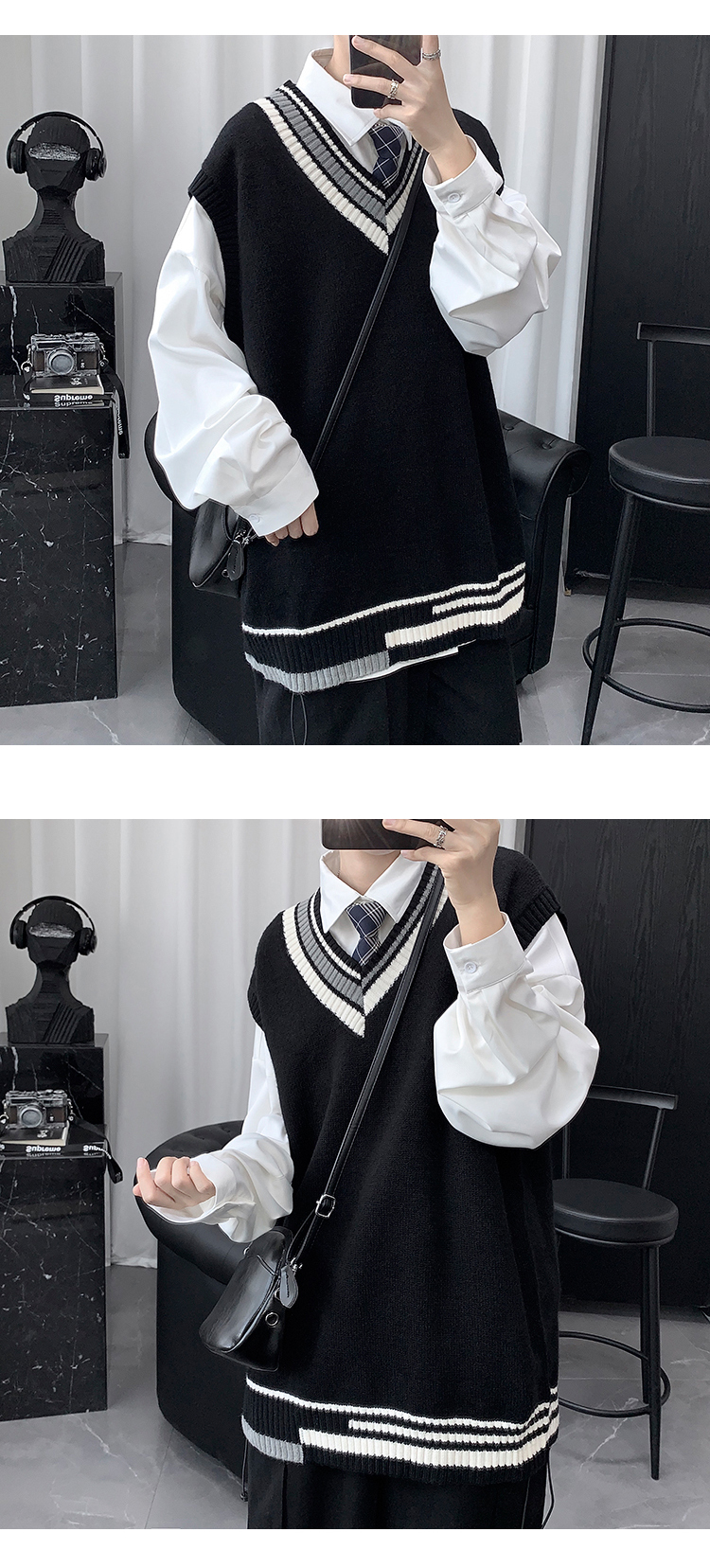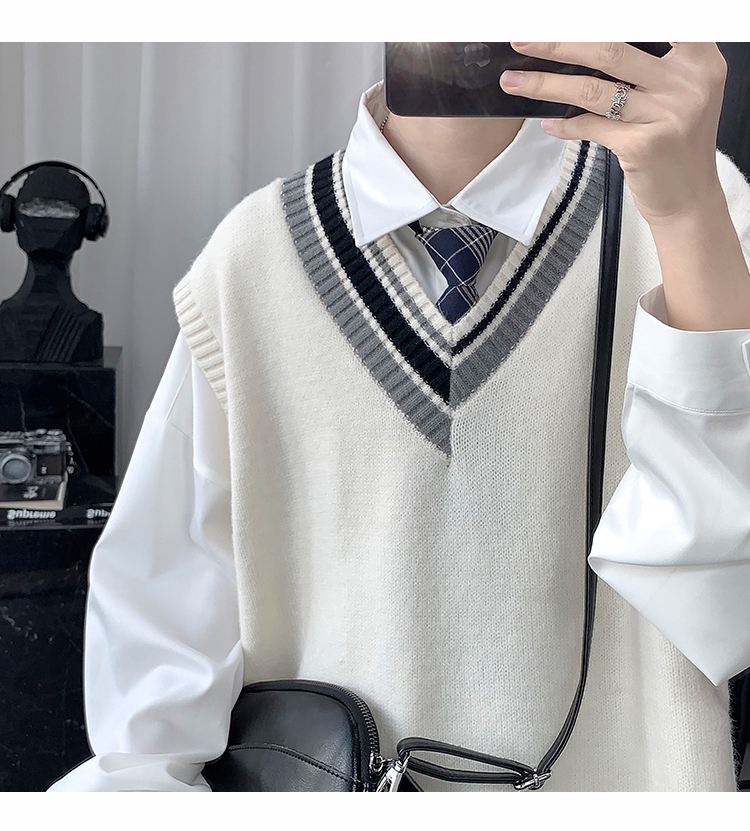 學院風情侶文藝針織無袖毛衣馬甲男毛線背心馬甲男秋冬季潮流內搭