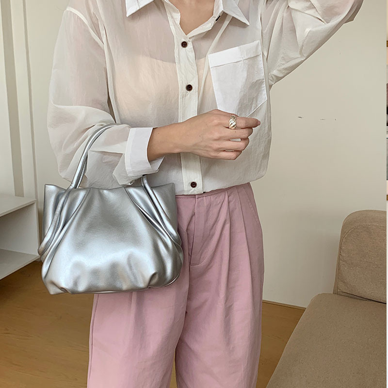 时尚简约斜挎菜篮子包包女2023新款韩版百搭通勤单肩手提水桶包批
