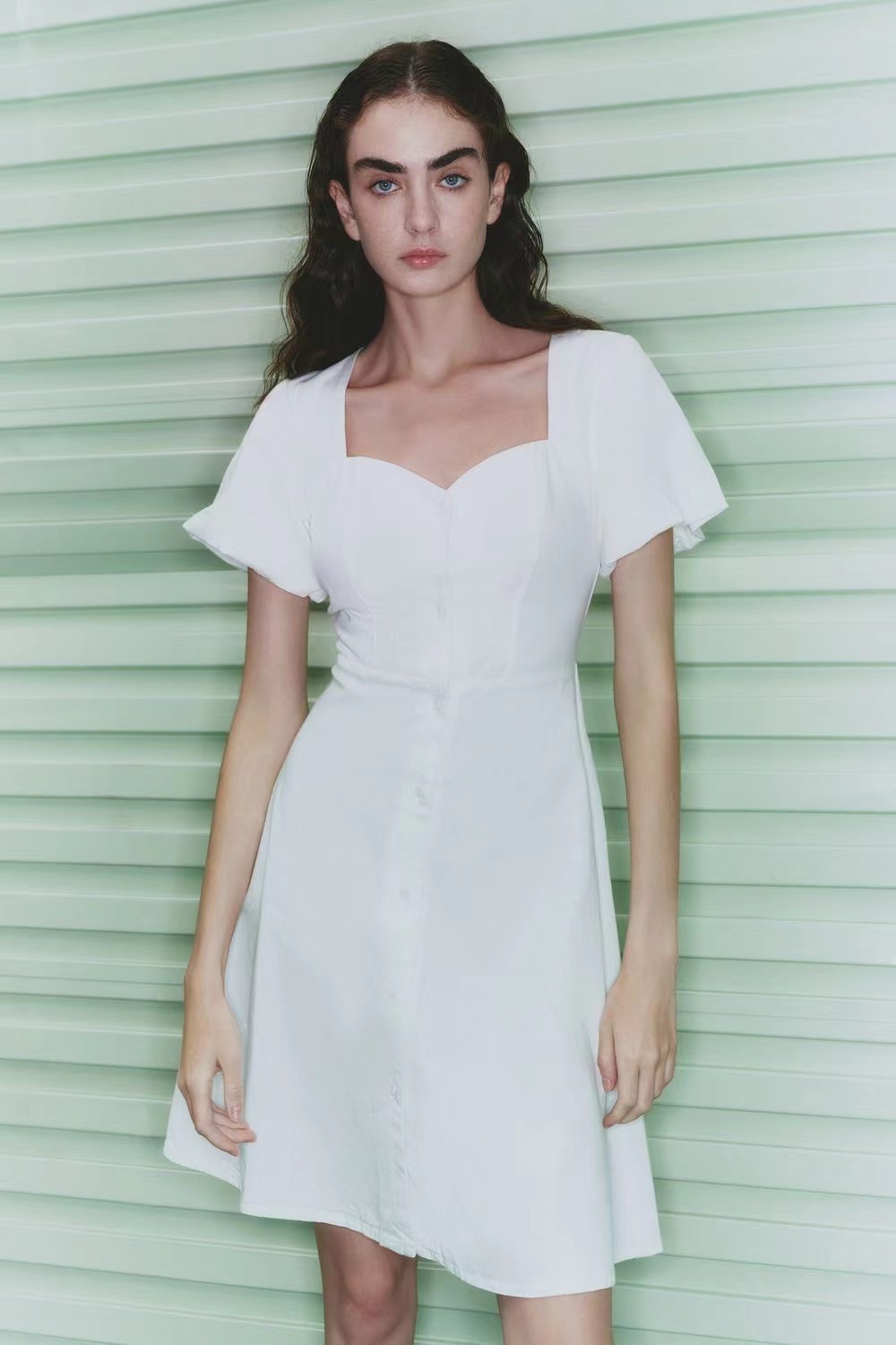 和春夏的适配度太高啦收紧的腰身优雅的泡泡袖