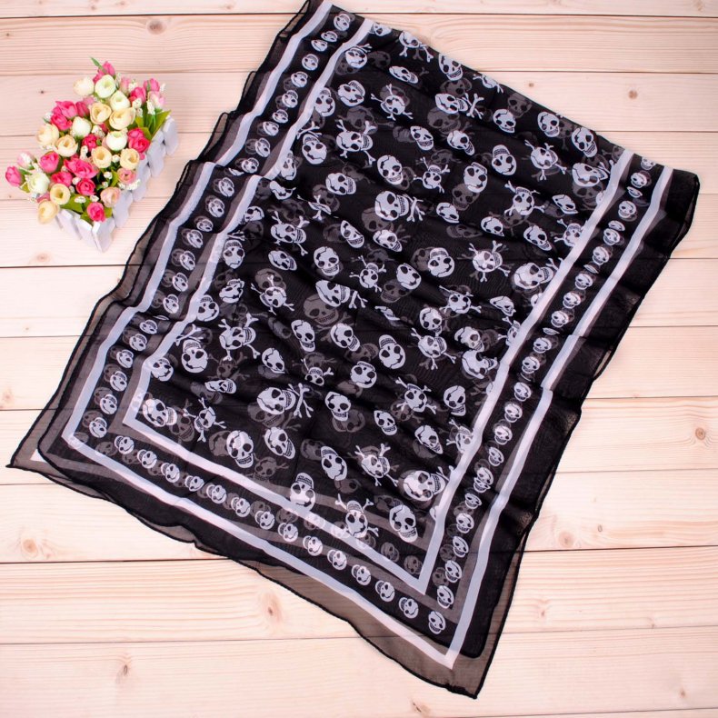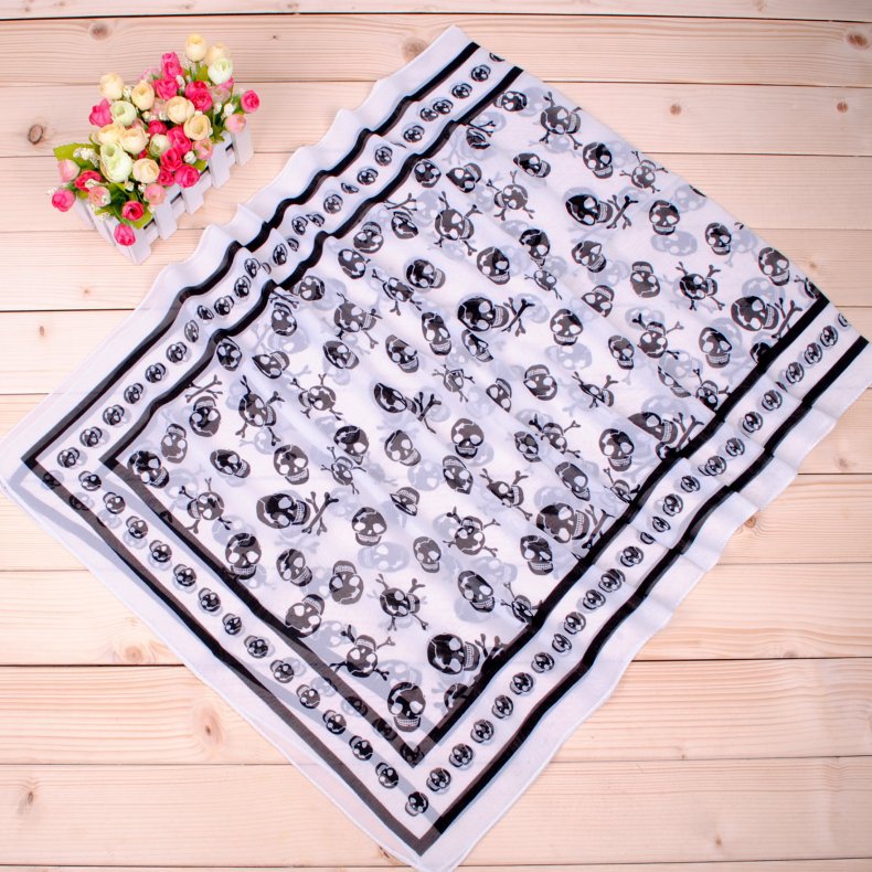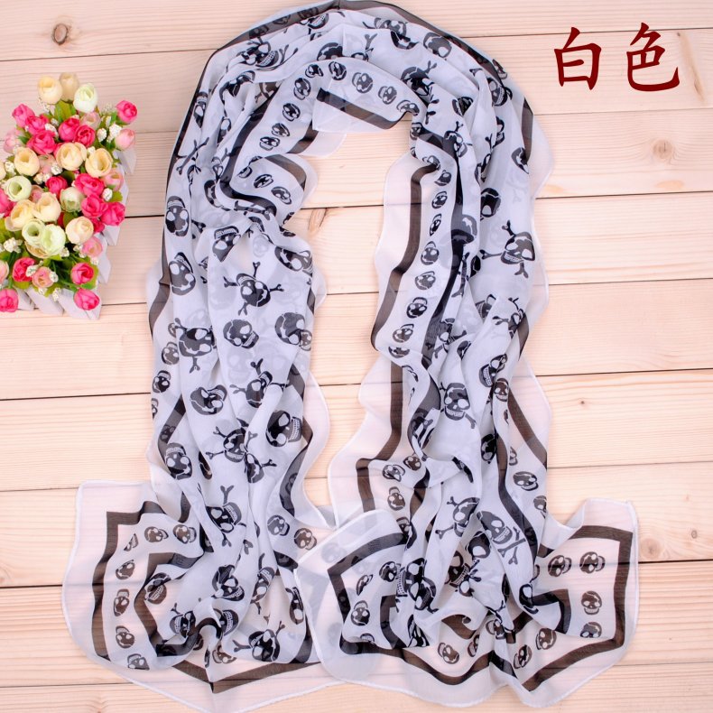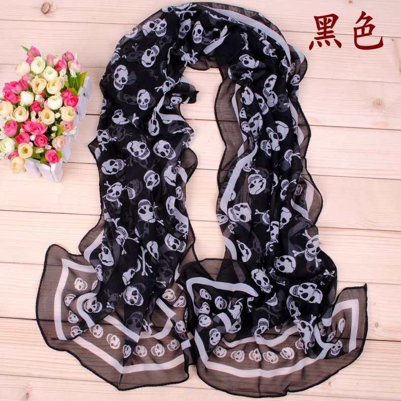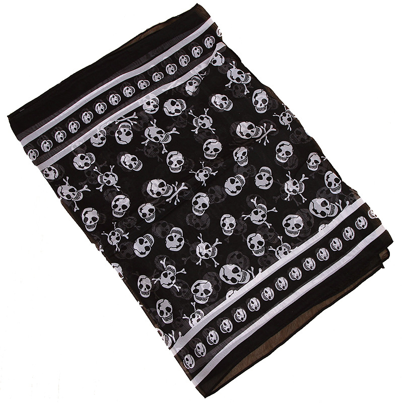 经典海盗骷髅头长款雪纺丝巾批发 万圣节围巾纱巾