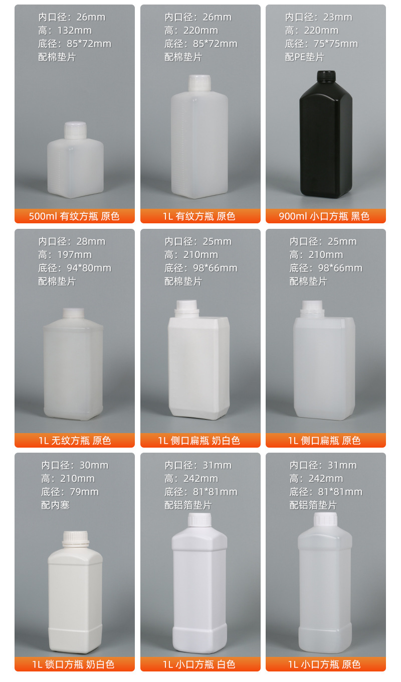 规格 1L白色配铝箔垫片,1L原色配棉垫片(有纹),500ML原色配棉垫片(有纹),1L原色配棉垫片(无纹),900ML黑色配PE垫片,1L原色配棉垫片,1L奶白色配棉垫片,1L白色配内塞(锁扣),1L原色配铝箔垫片