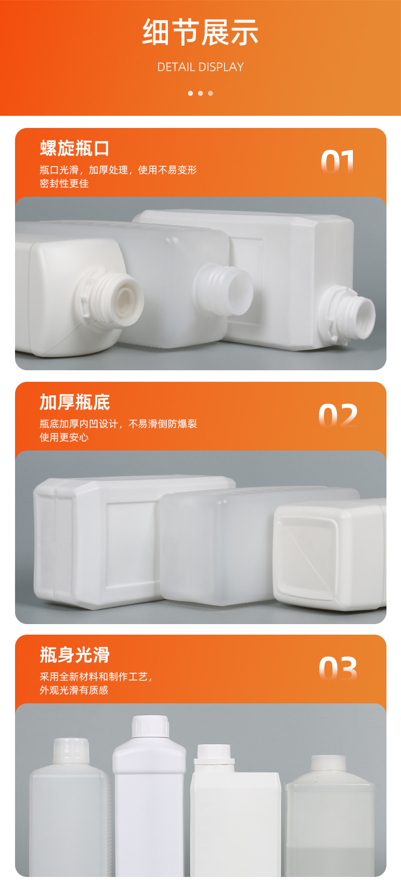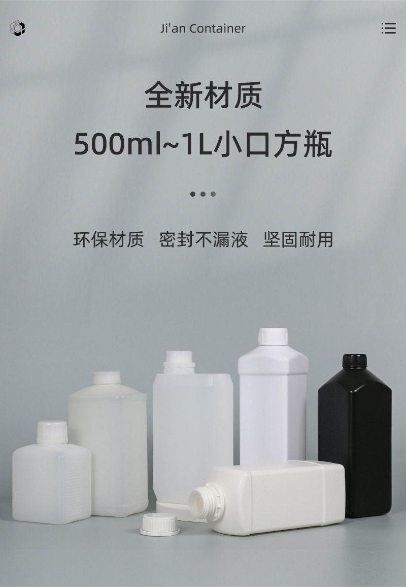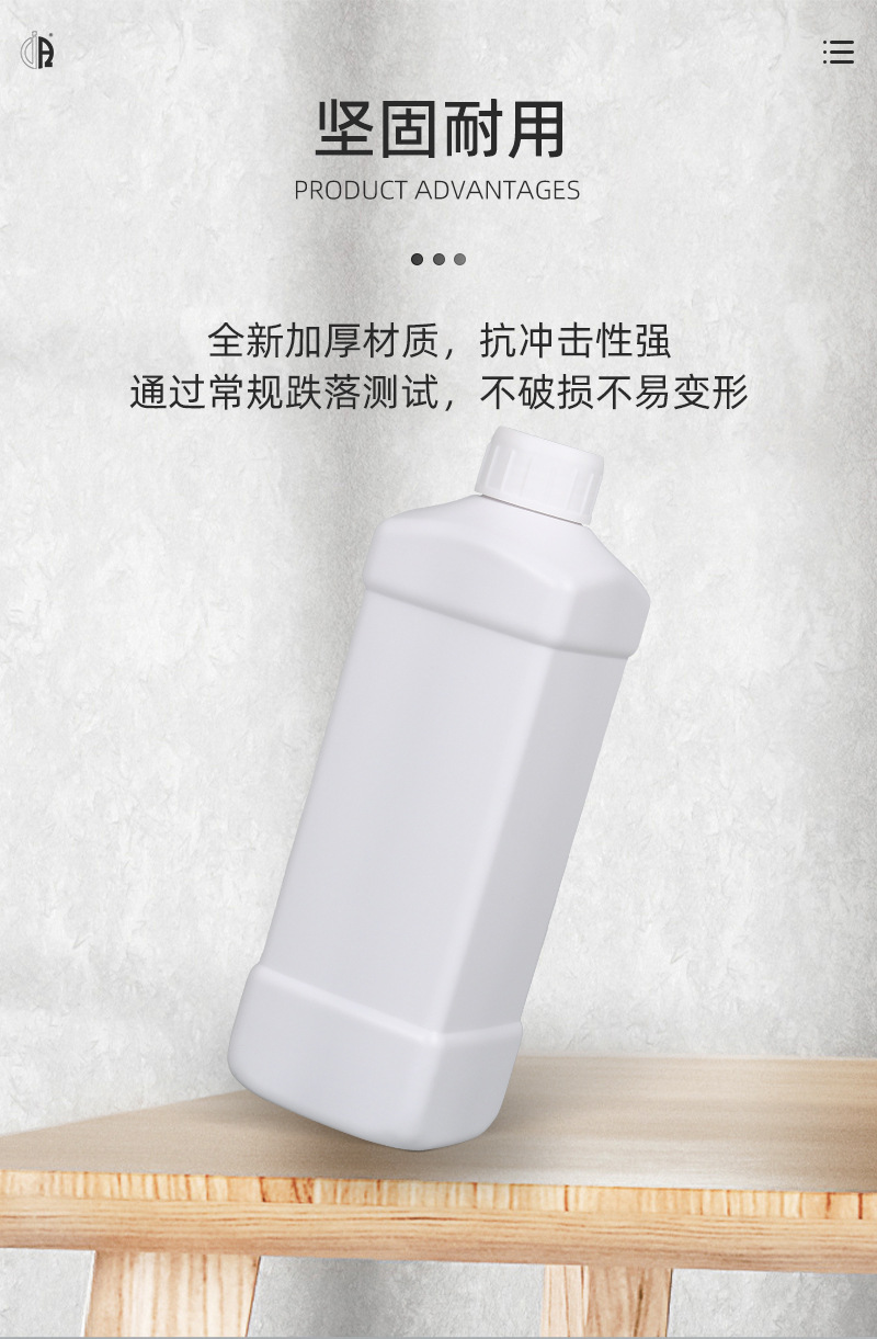 方扁瓶500ML/900ML/1L升塑料瓶白色 1kg液体瓶化工瓶农药包装瓶子