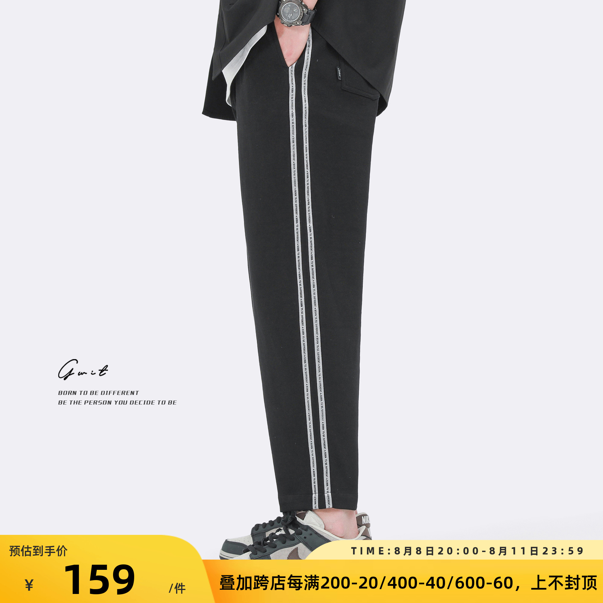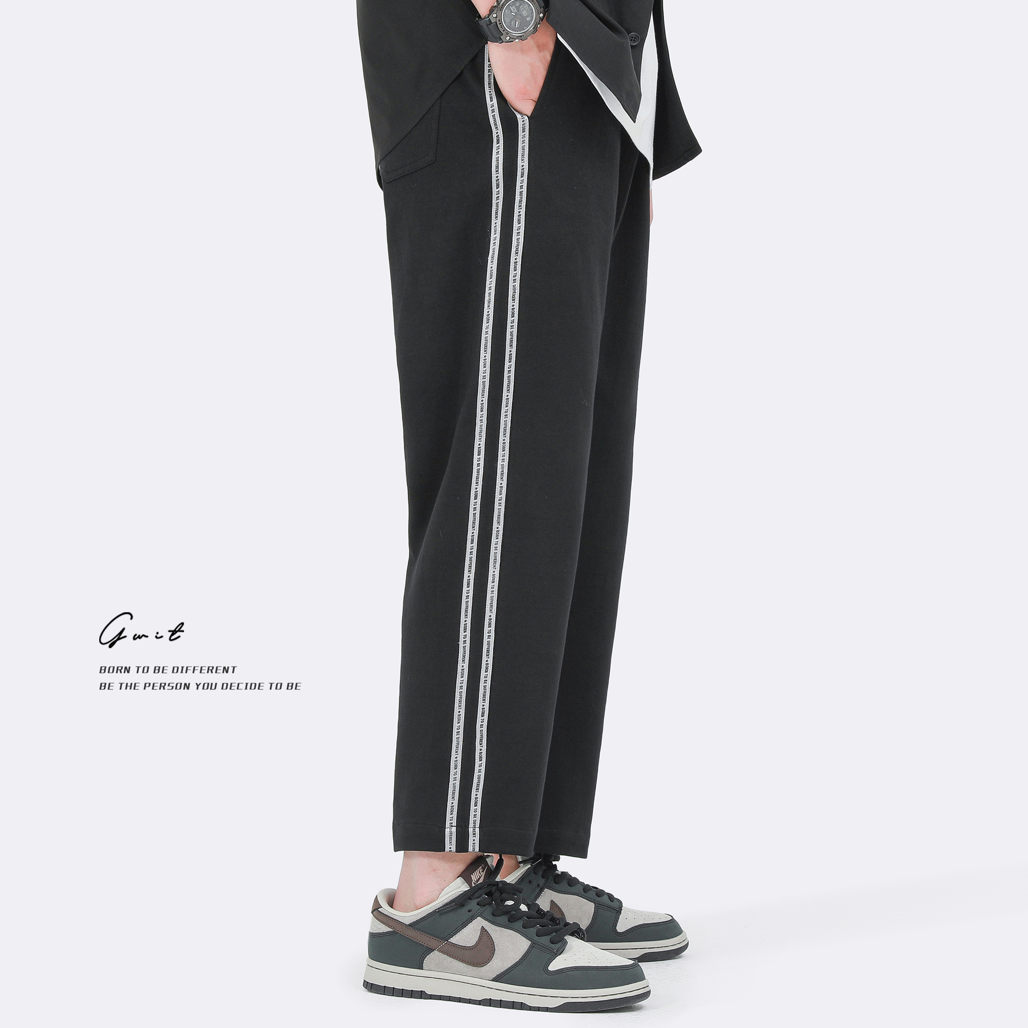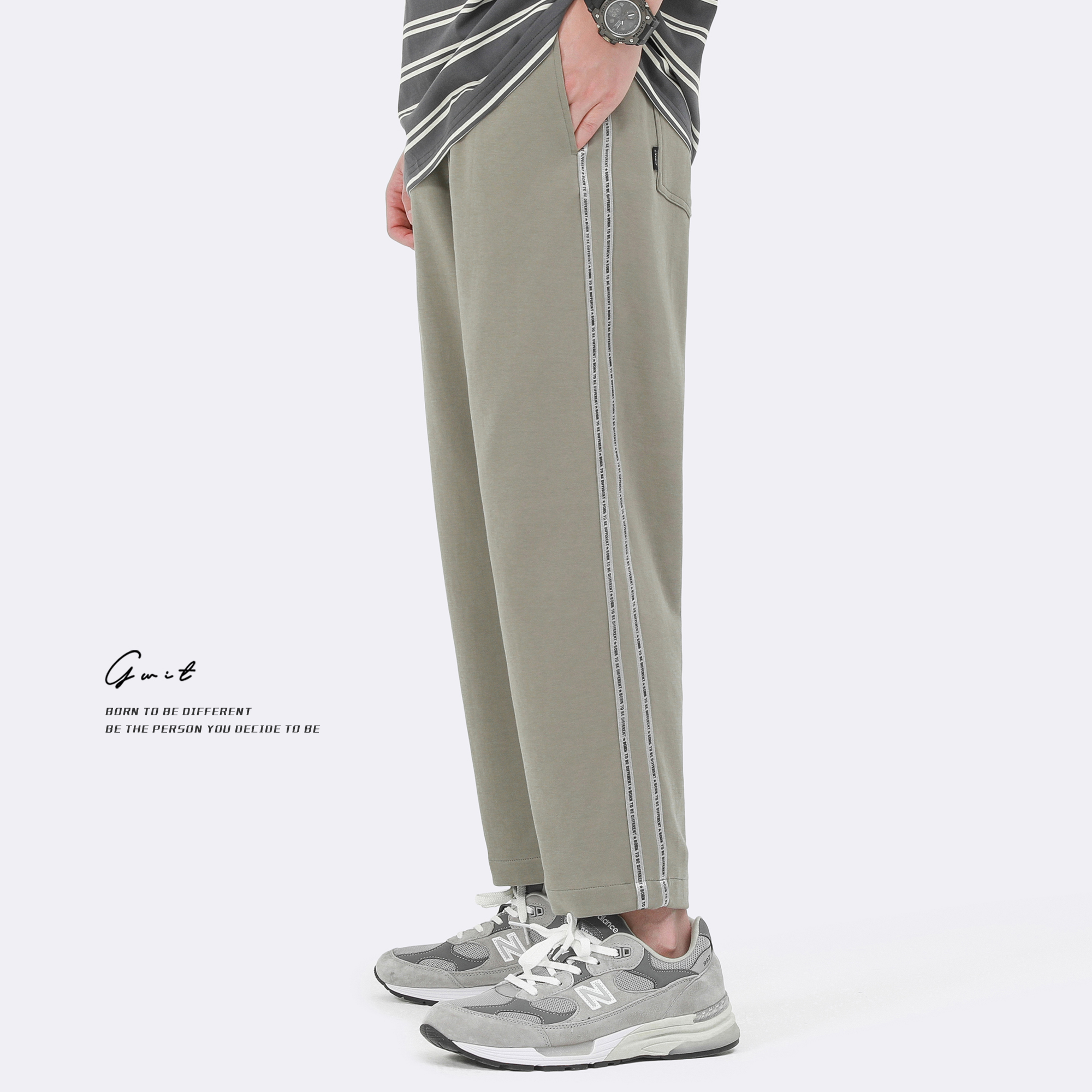 GWIT 260g天山棉 輕薄夏季新款撞色潮流休閒厚棉褲薄款九分運動褲男