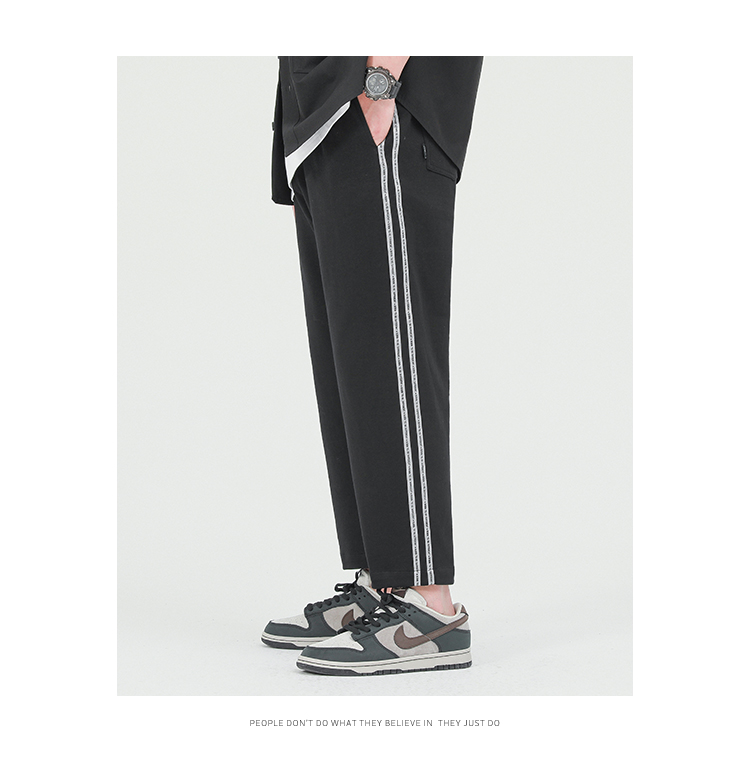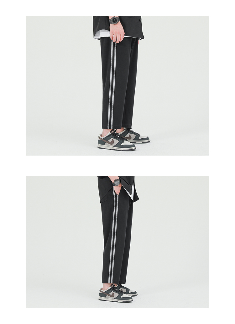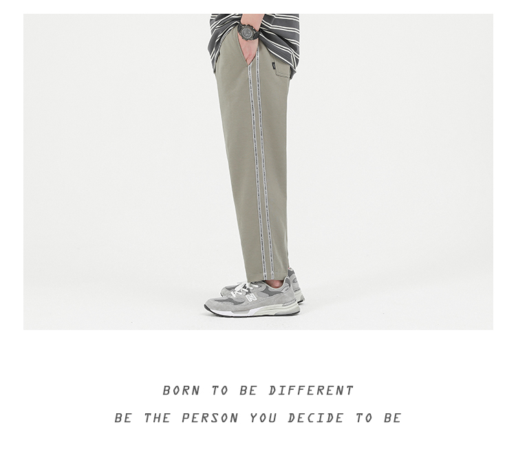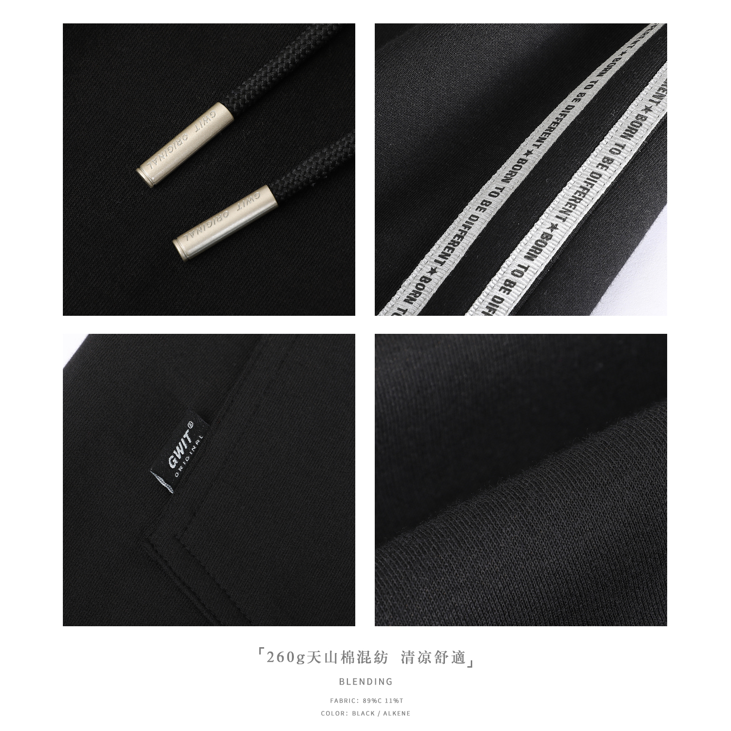 GWIT 260g天山棉 輕薄夏季新款撞色潮流休閒厚棉褲薄款九分運動褲男