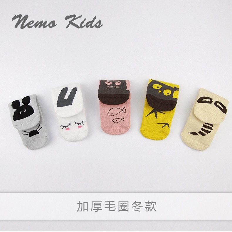 秋冬毛圈加厚松口婴儿宝宝袜子 儿童袜子精梳棉防滑点胶卡通袜子