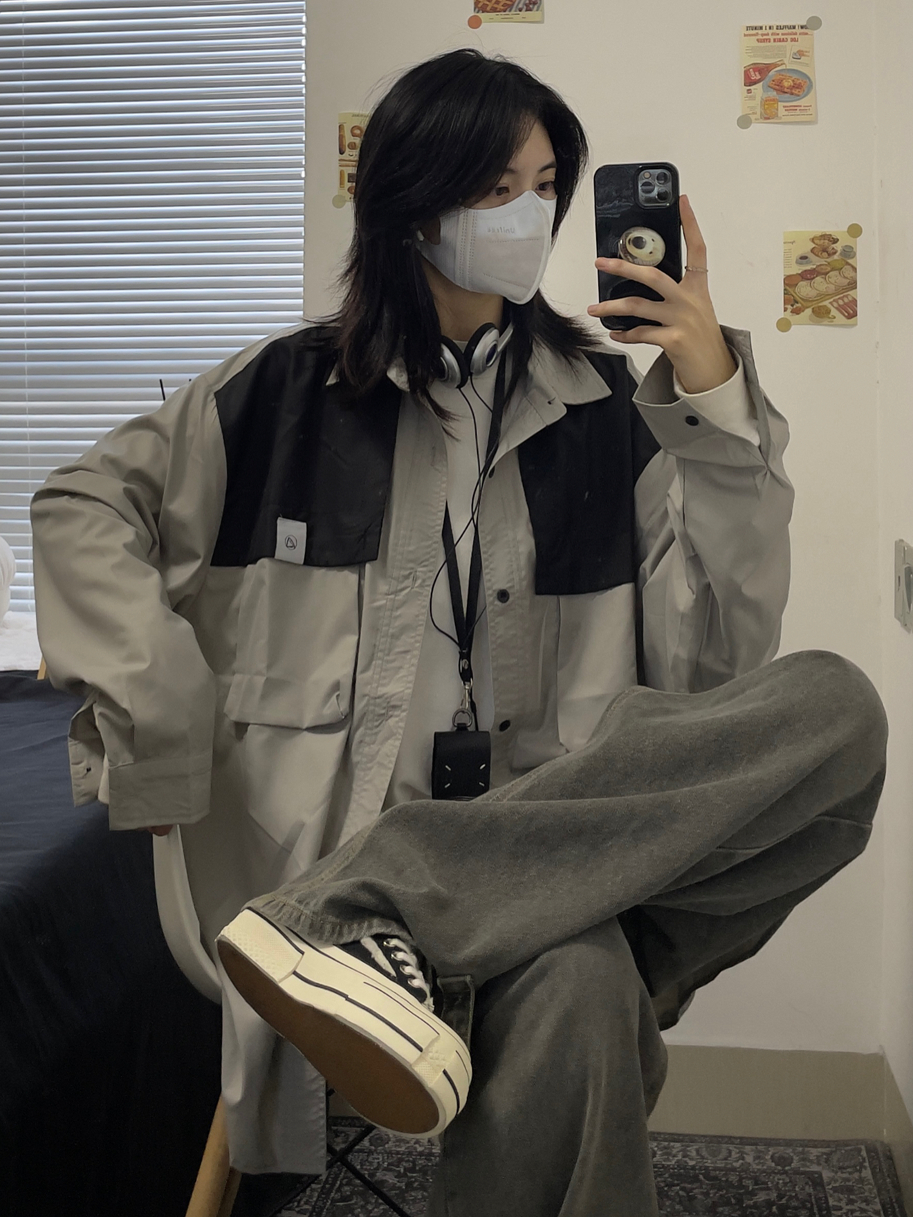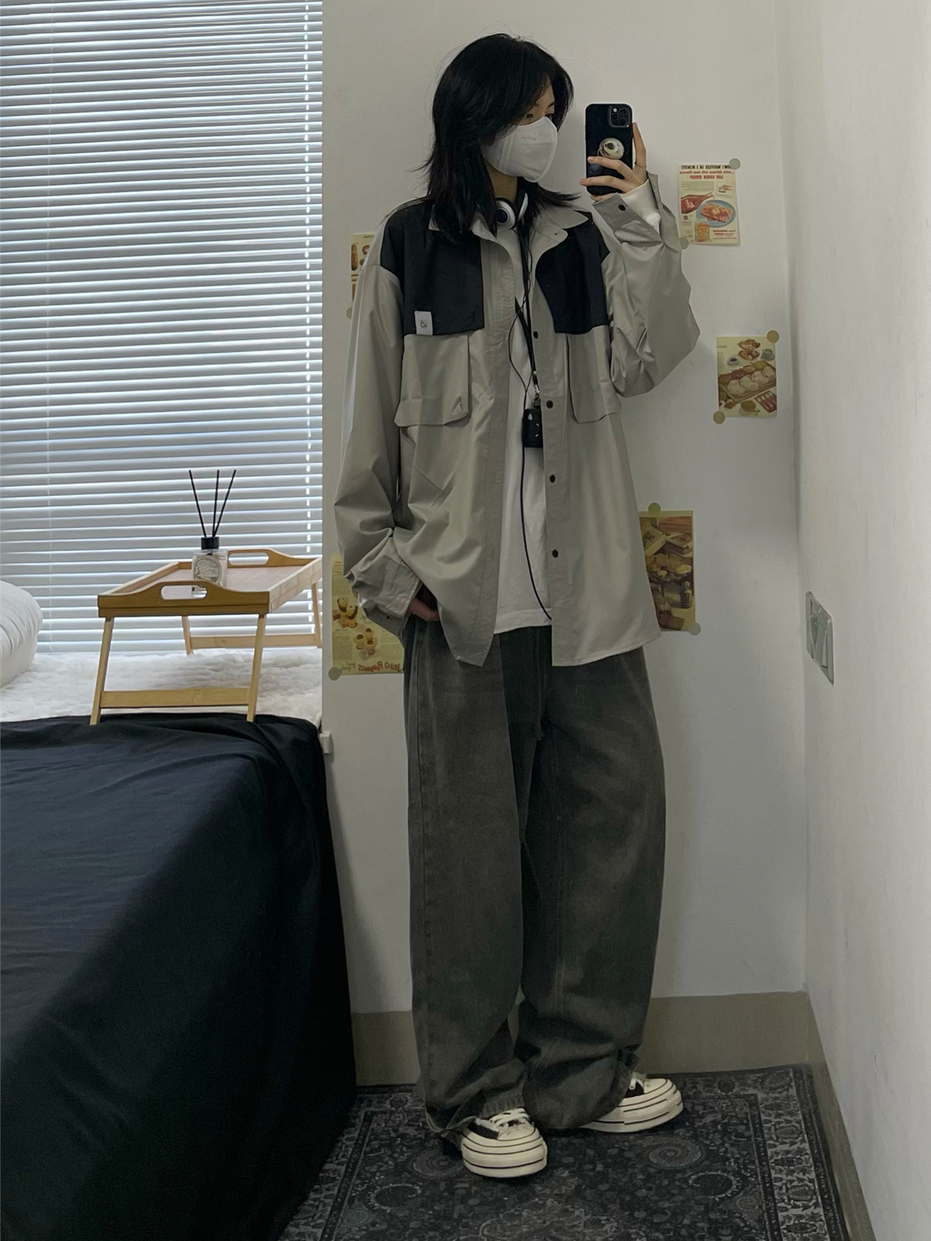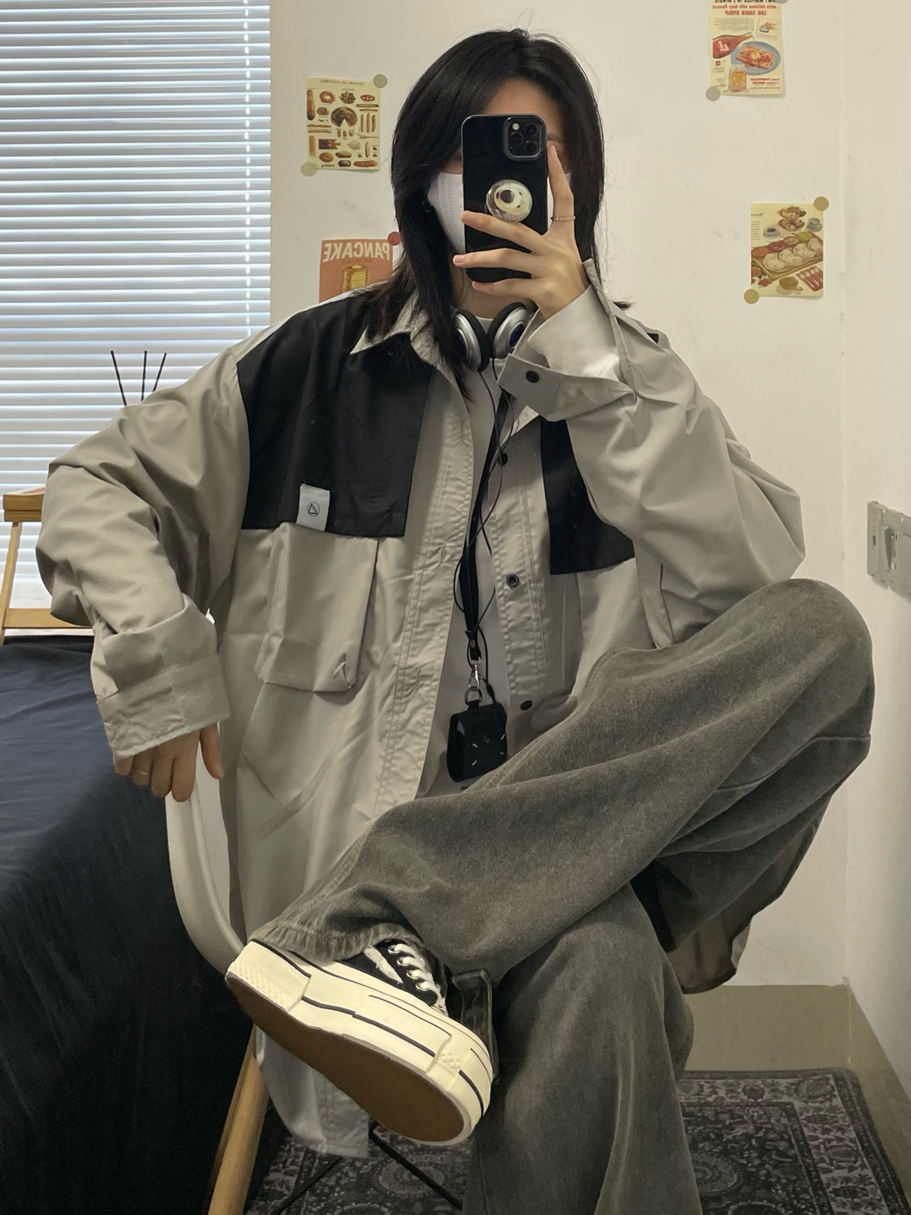 HALF H撞色拼接長袖襯衫小眾春季男女設計感外套多口袋寬鬆百搭