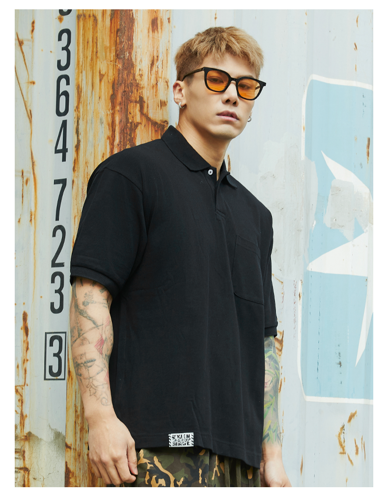 無畏東方基礎polo衫男短袖t恤美式復古翻領寬鬆街頭純棉百搭夏季