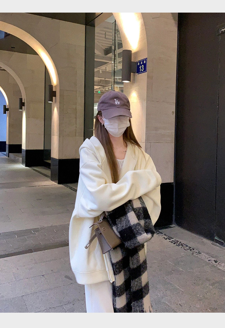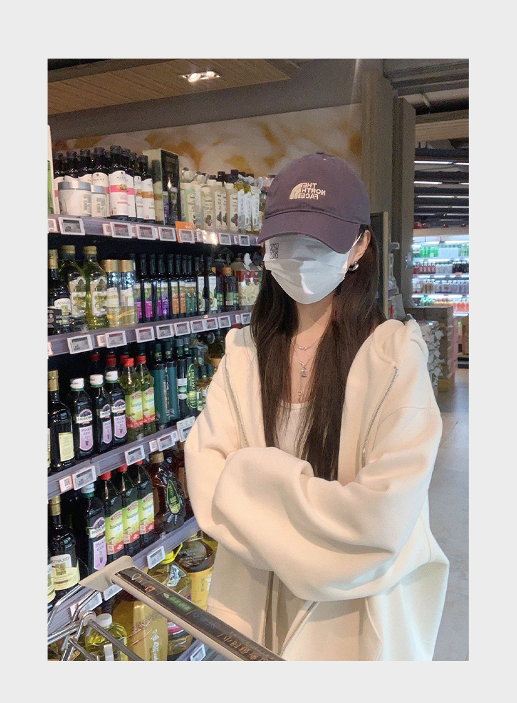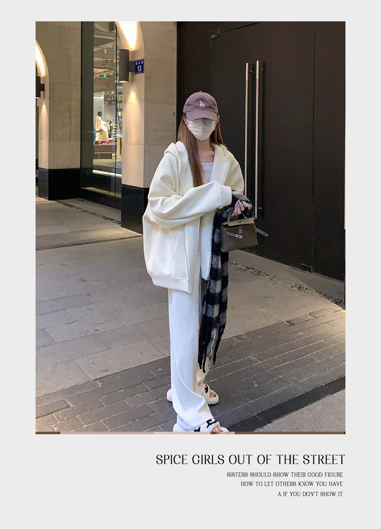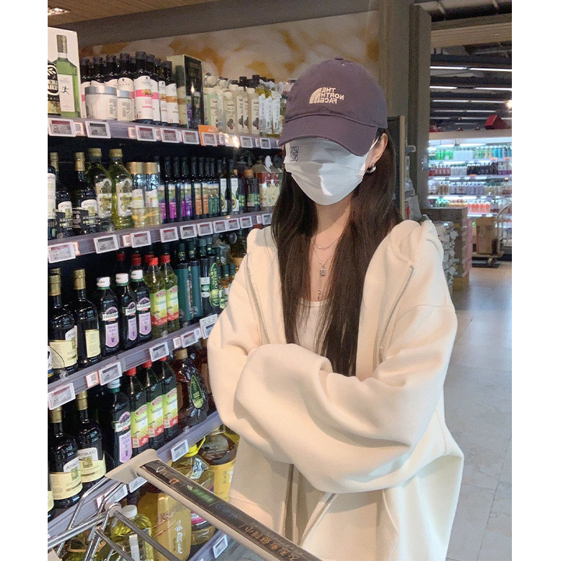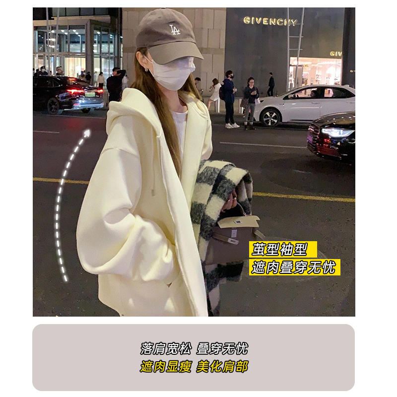 秋季白色厚棉T外套女2023新款春秋款拉鍊開衫薄款連帽韓系慵懶風厚
