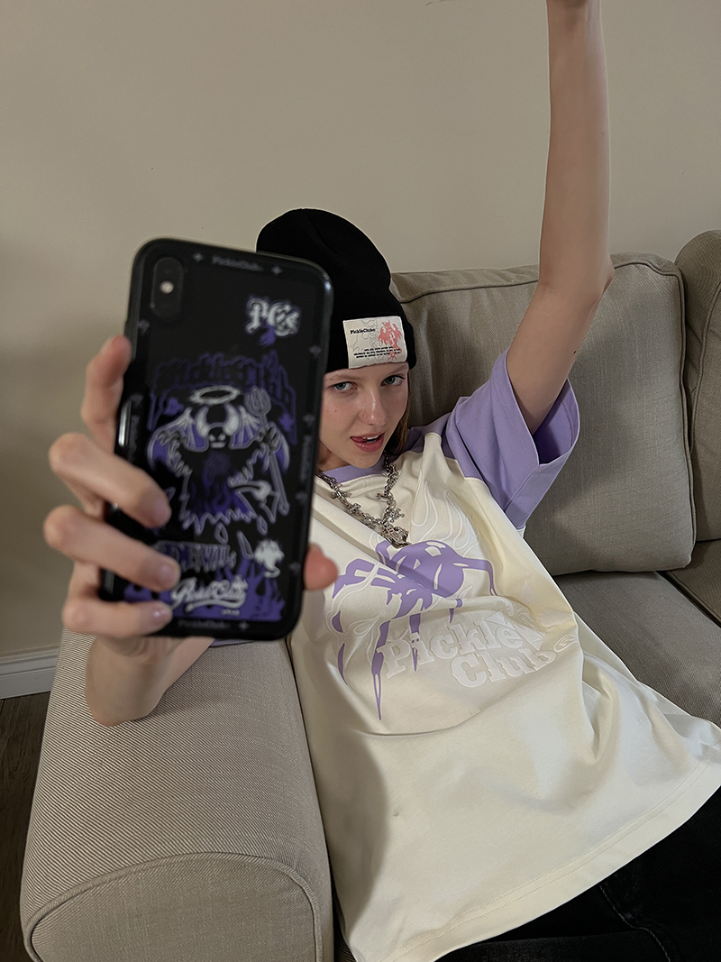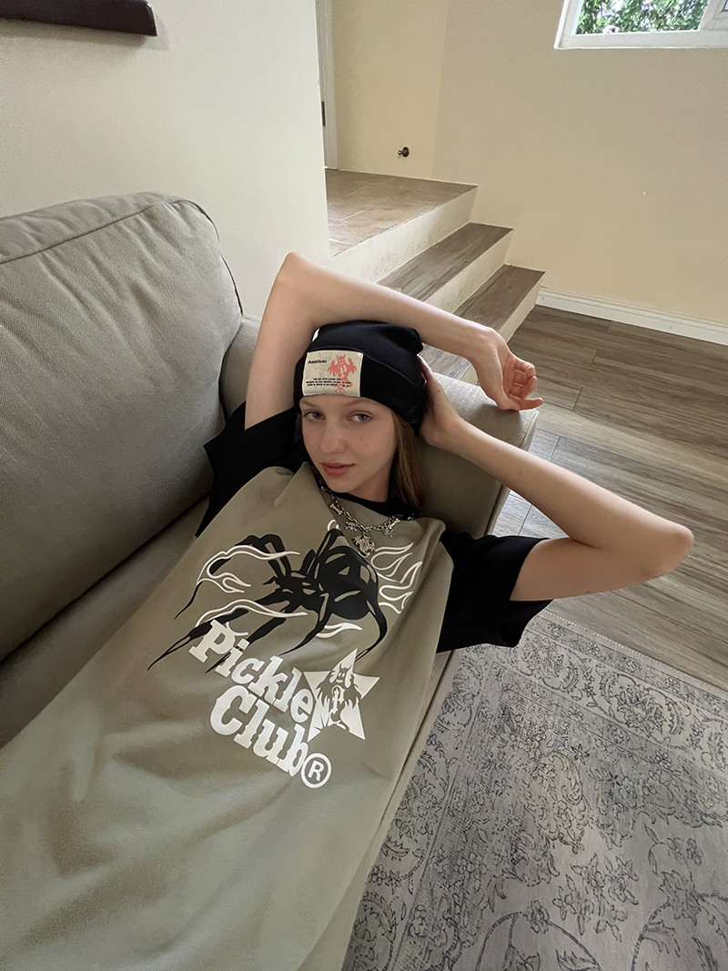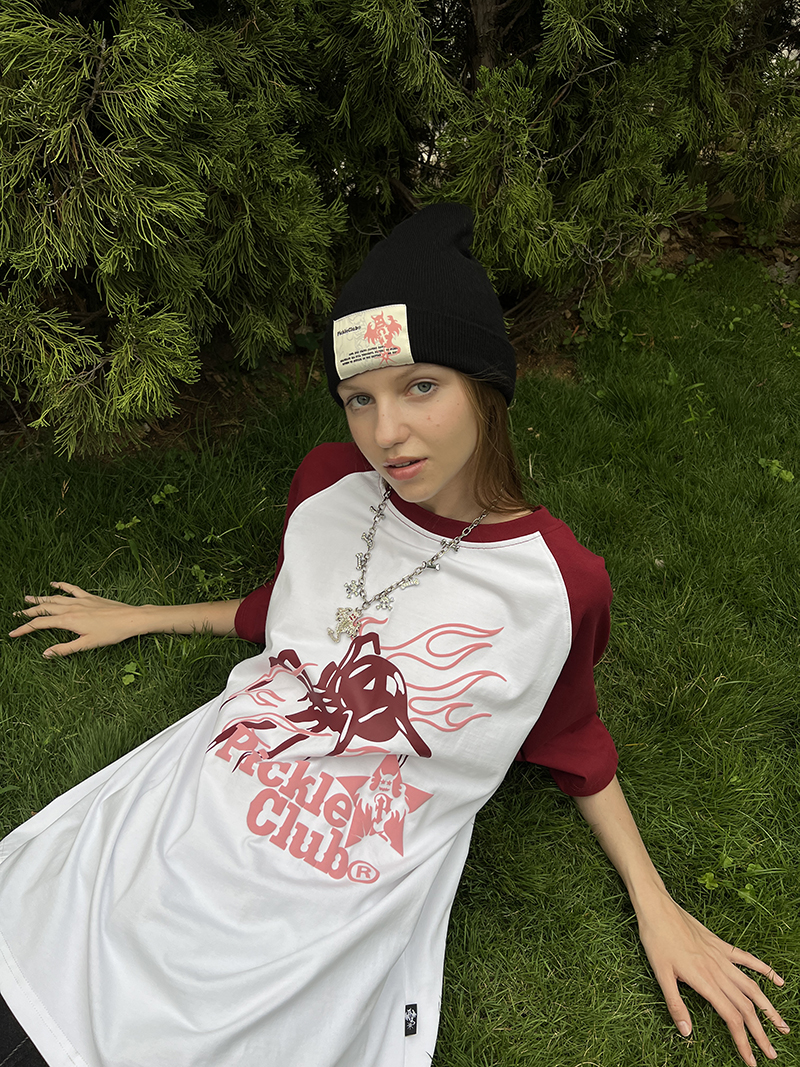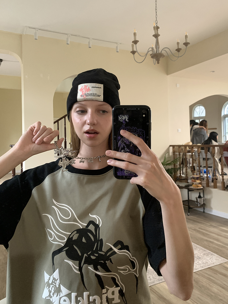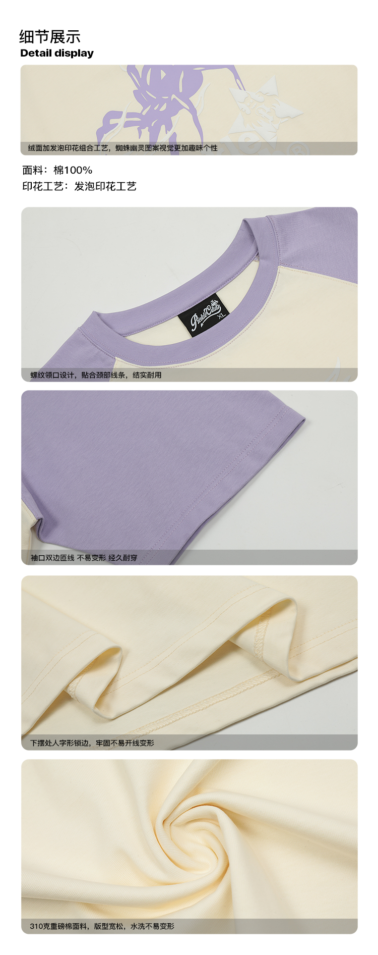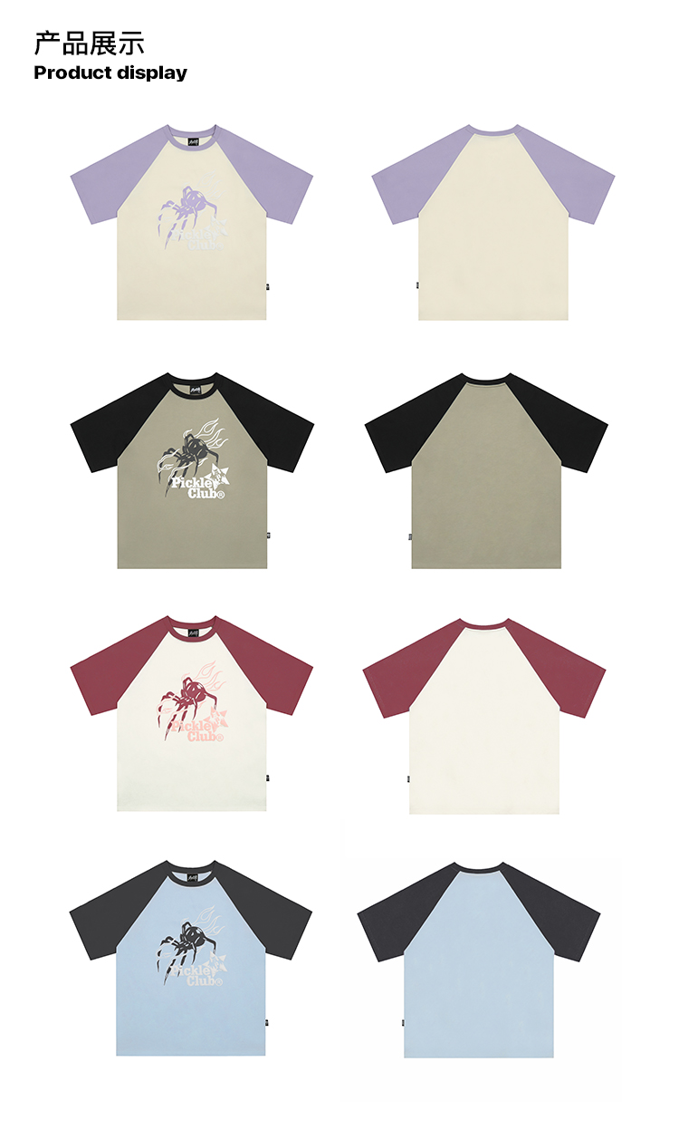 樑拌泡菜 PC蜘蛛幽靈印花情侶插肩袖短袖T恤女寬鬆多巴胺女孩穿搭