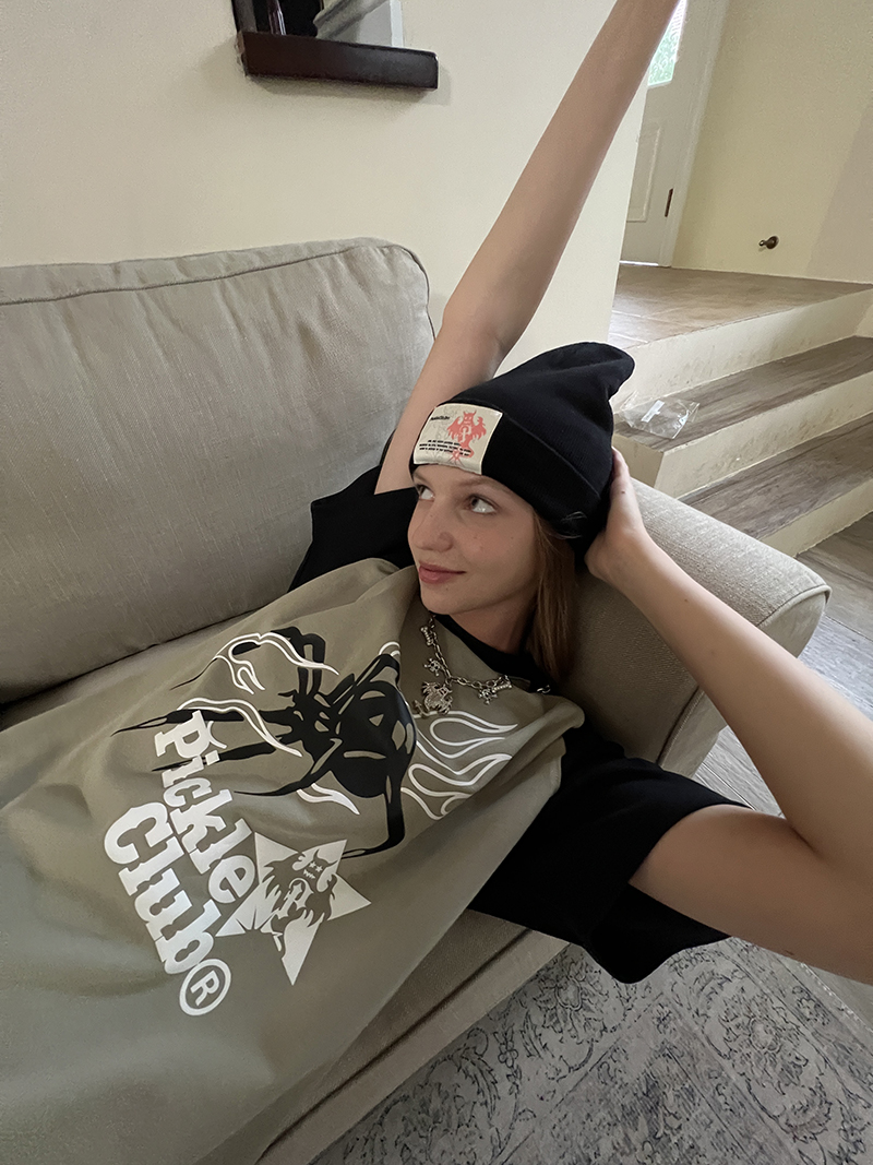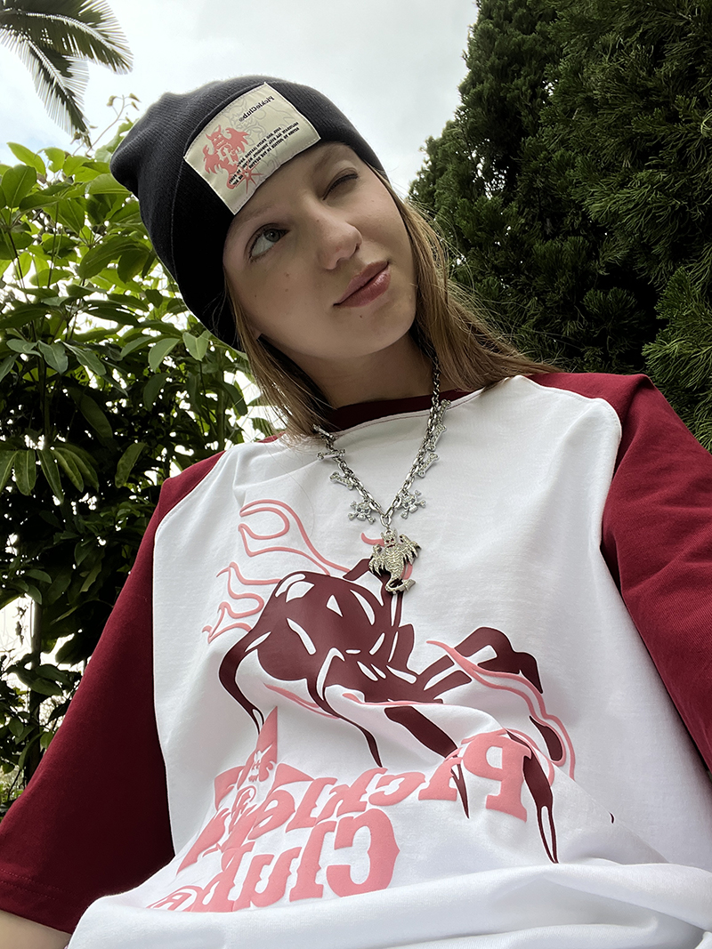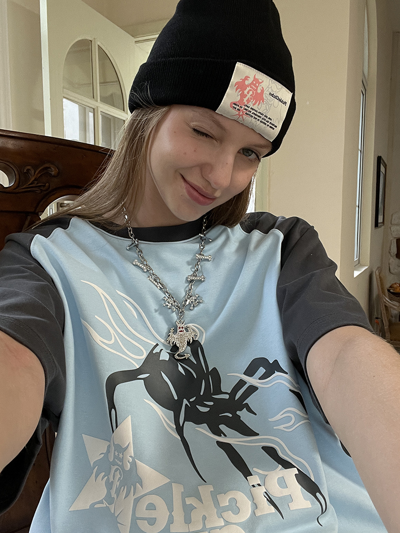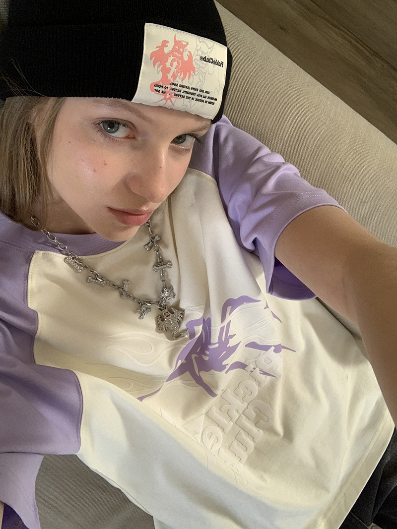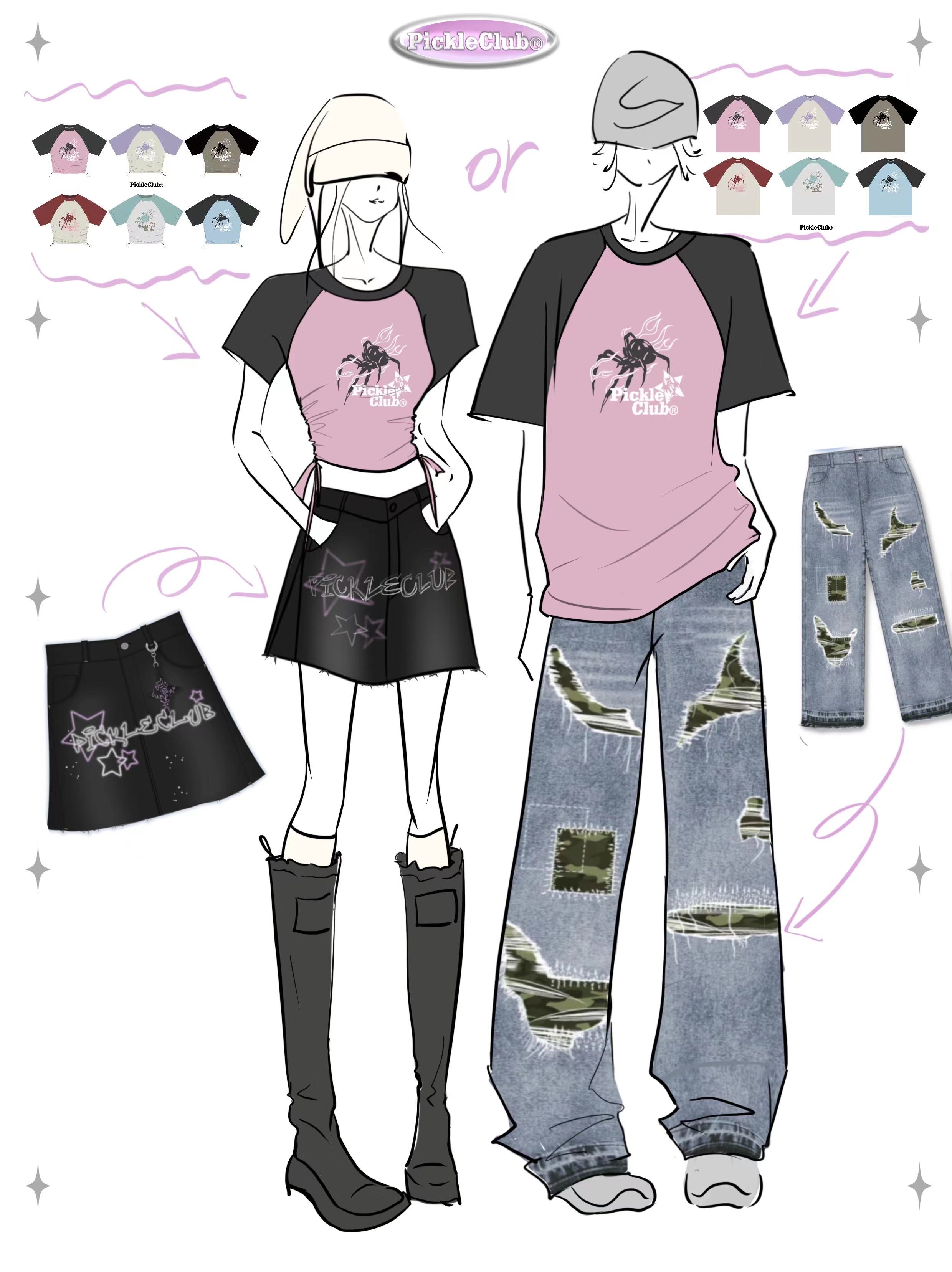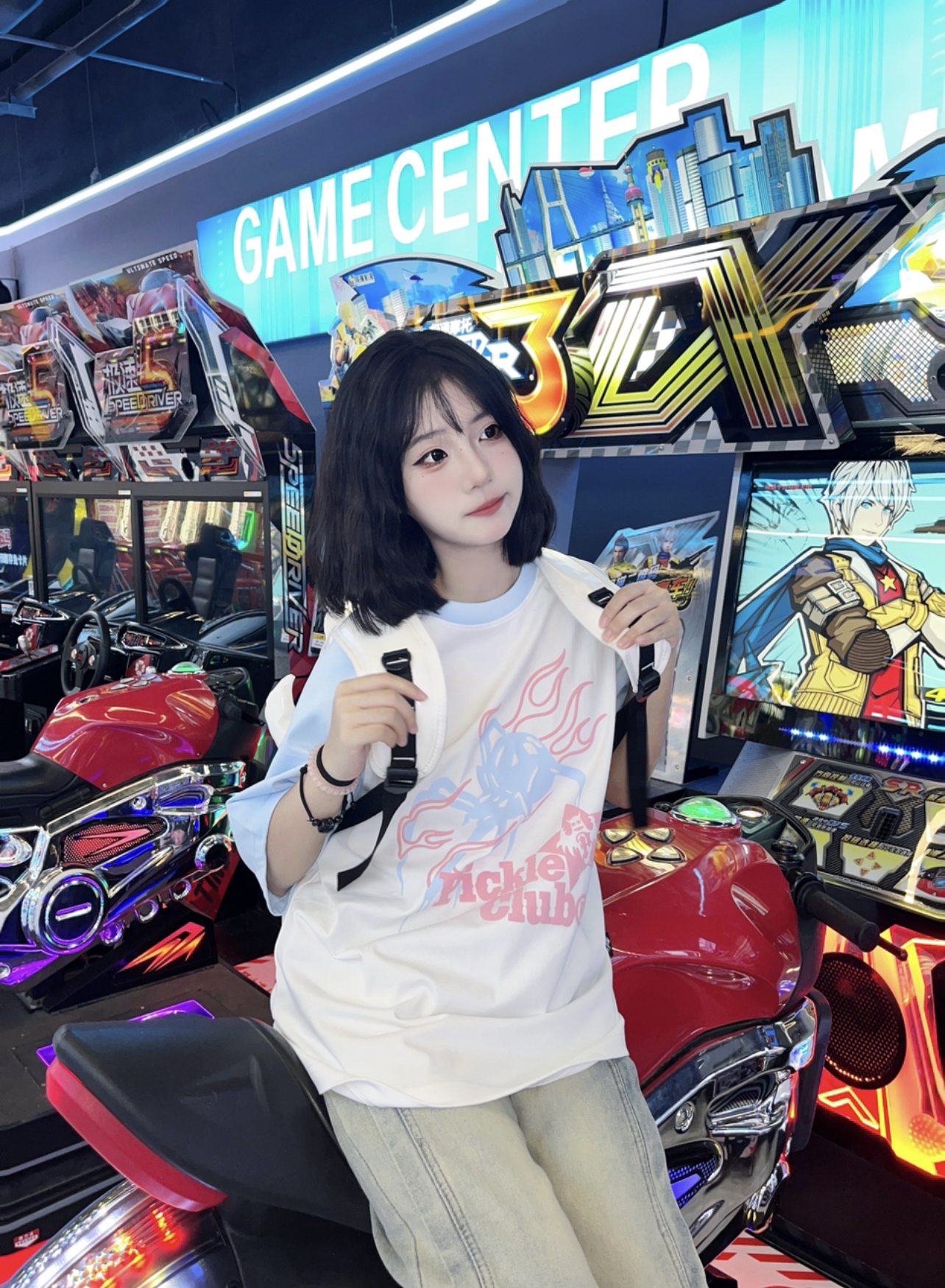 樑拌泡菜 PC蜘蛛幽靈印花情侶插肩袖短袖T恤女寬鬆多巴胺女孩穿搭