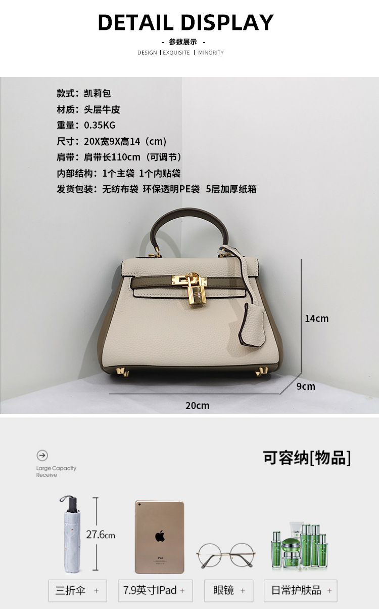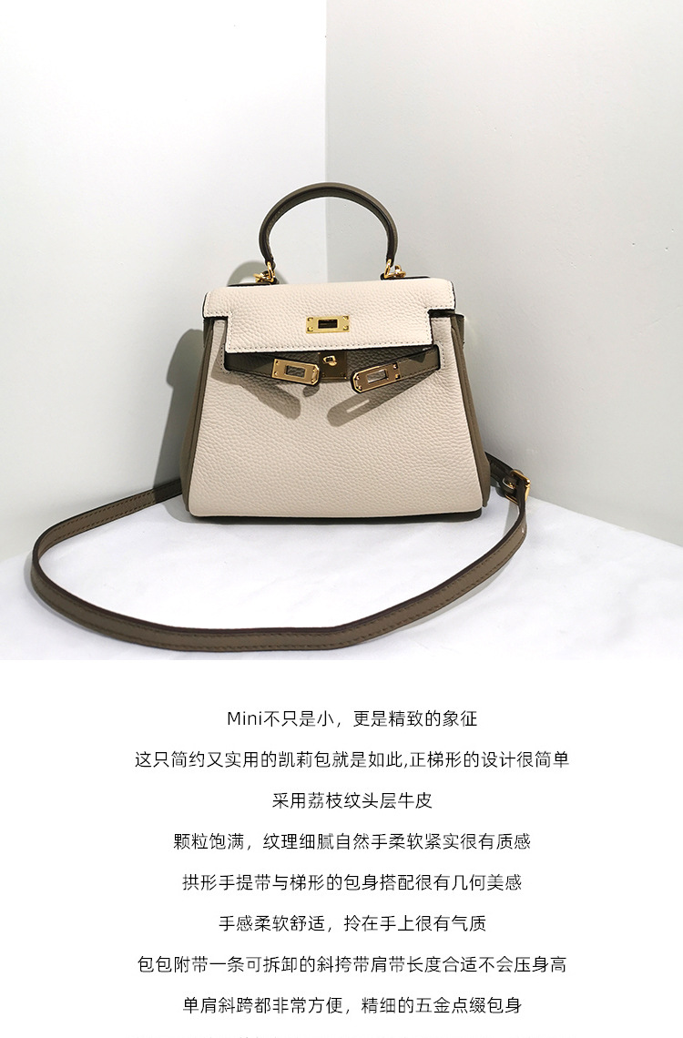 2022新款潮mini女包真皮包手提荔枝纹牛皮二代凯莉包单肩斜挎小包