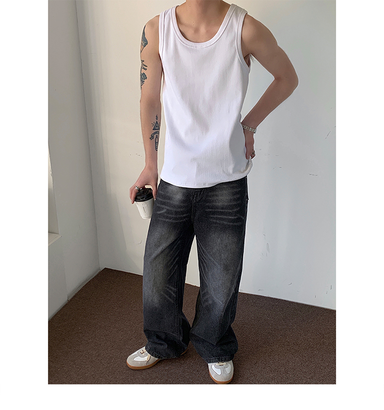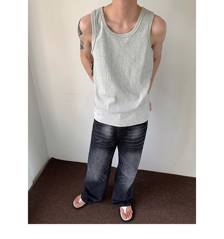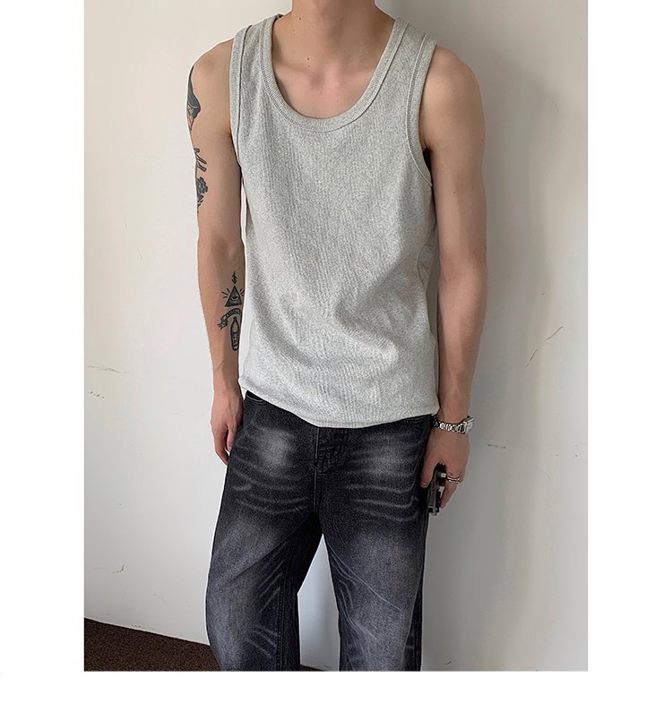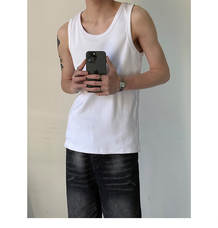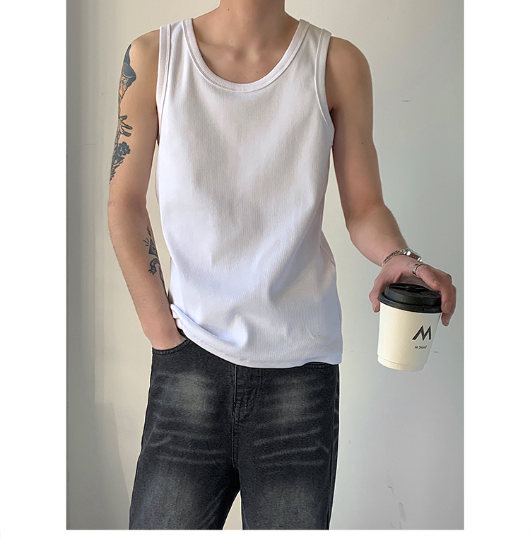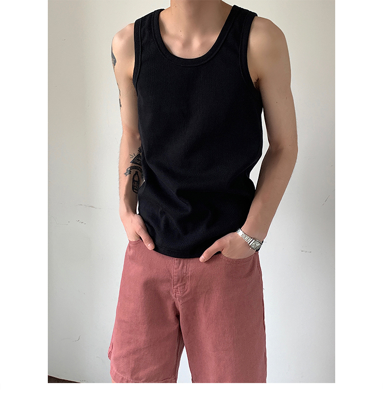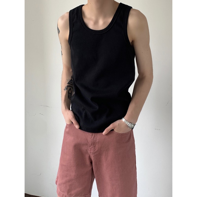 體育生訓練坎肩背心夏季純黑色螺紋無袖T恤ins小眾高級感運動汗衫