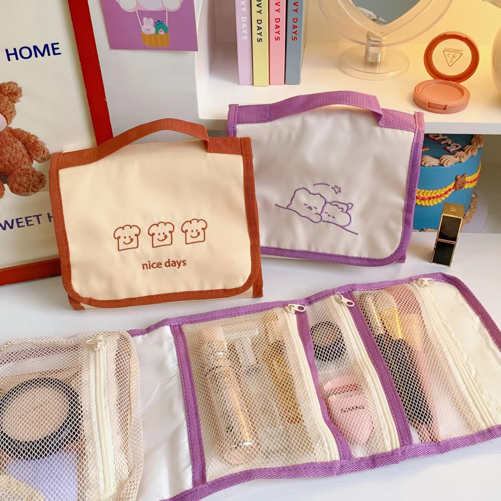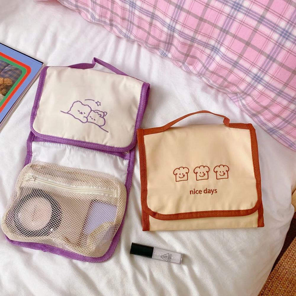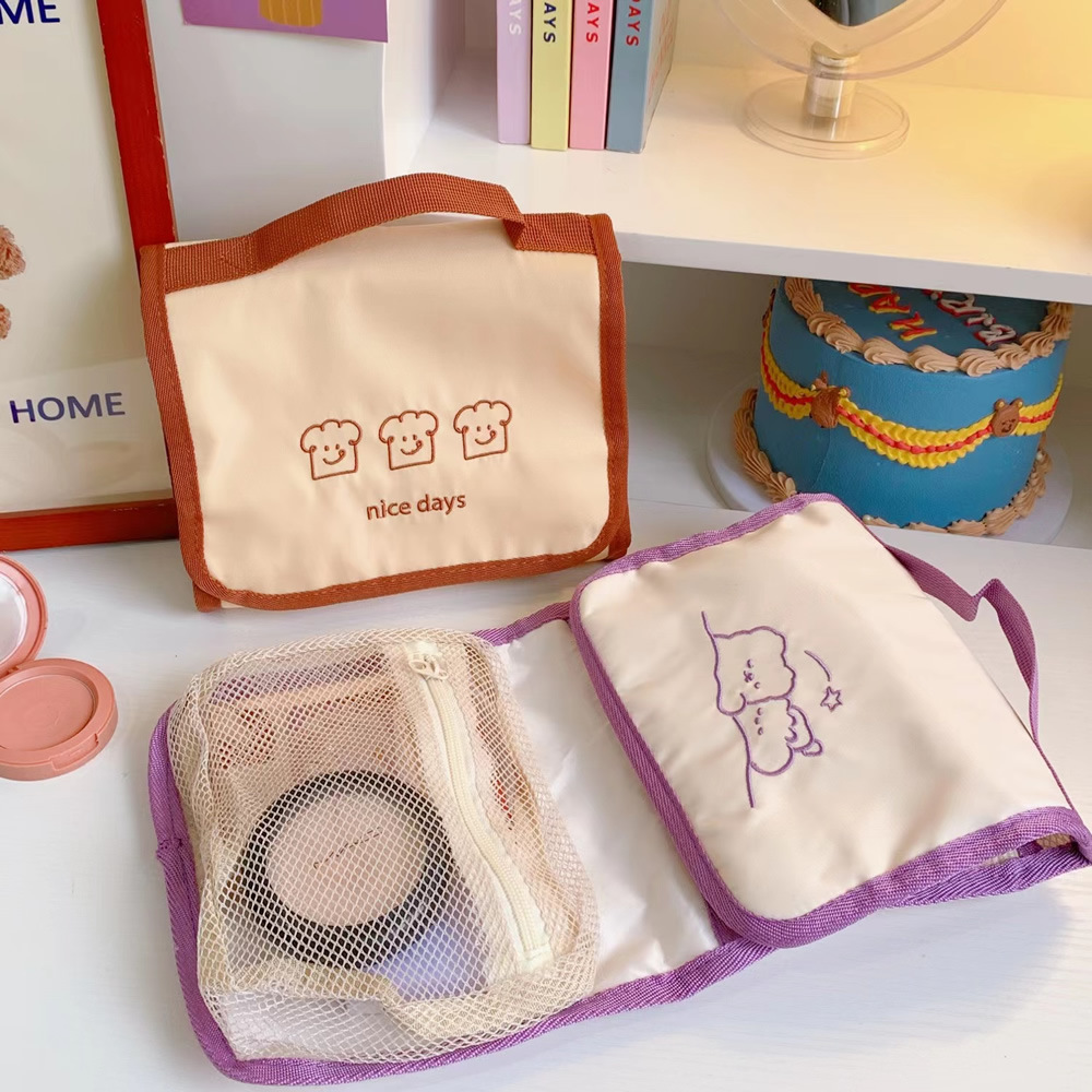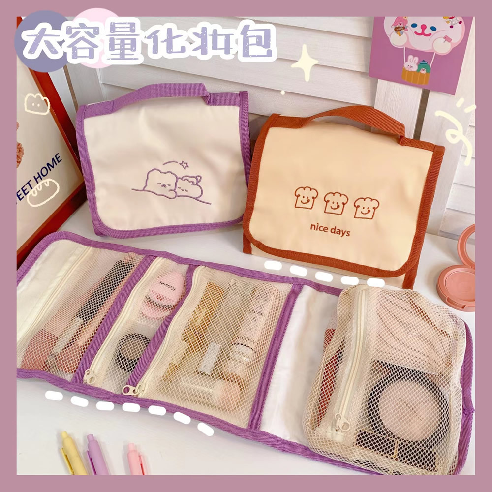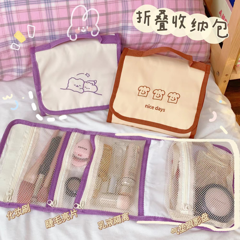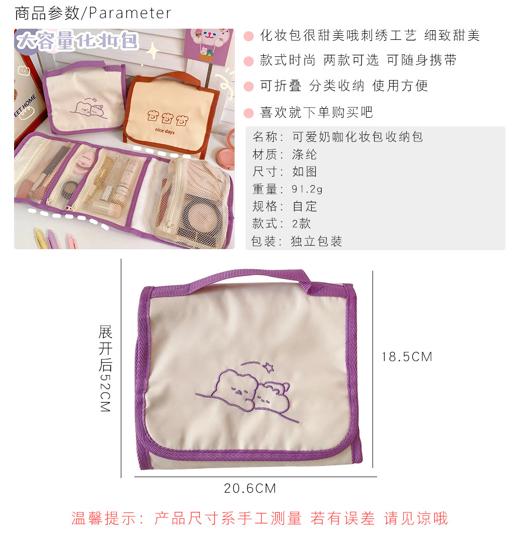 ins可爱奶咖多功能可折叠化妆品收纳包小熊便携旅行收纳袋化妆包