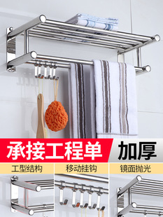 加厚304不锈钢毛巾架浴巾架浴室毛巾置物架免打孔卫生间五金壁挂