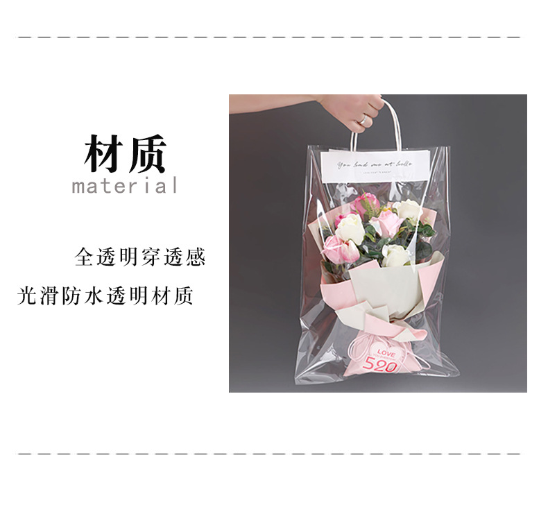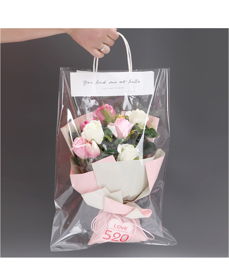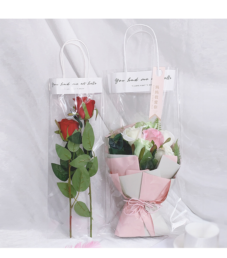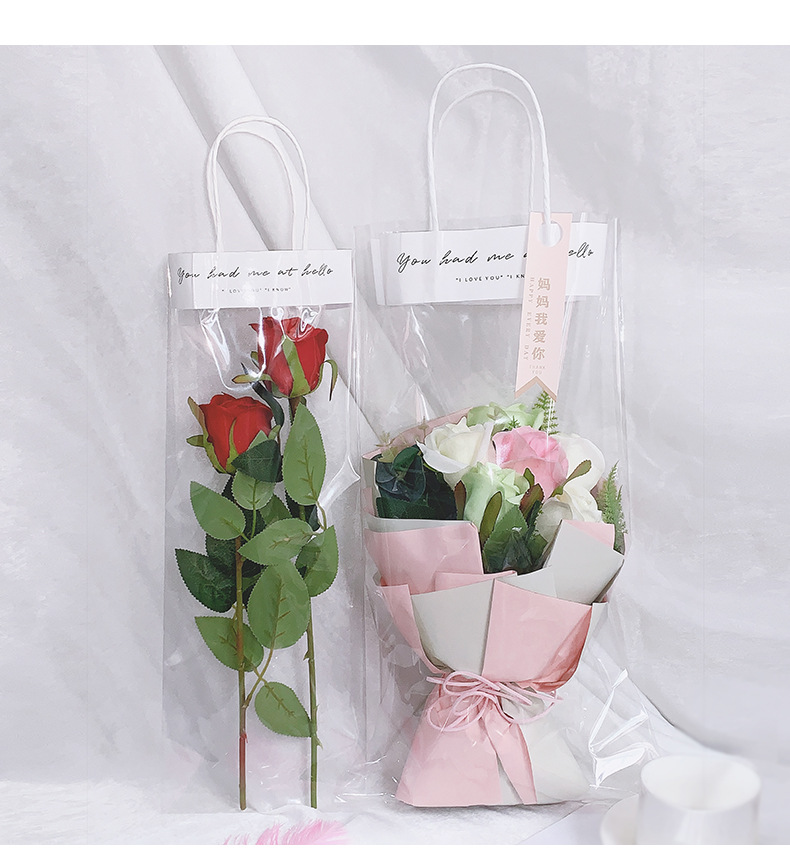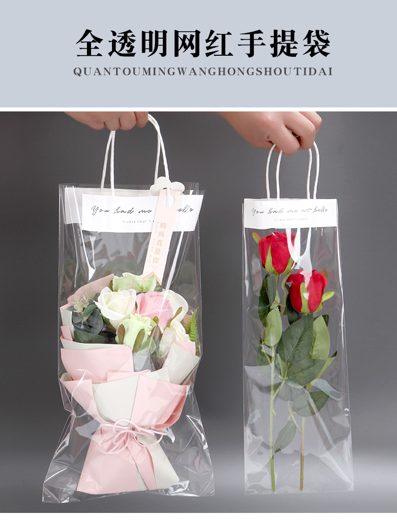 鲜花包装材料教师节花艺袋单支袋玫瑰鲜花包装成品OPP花束手提袋
