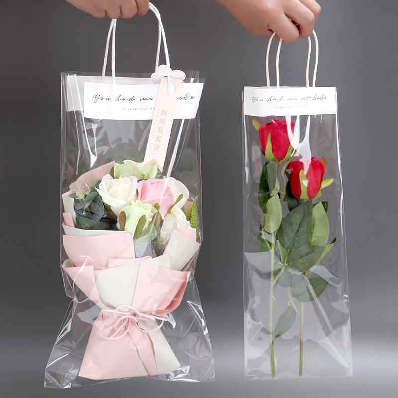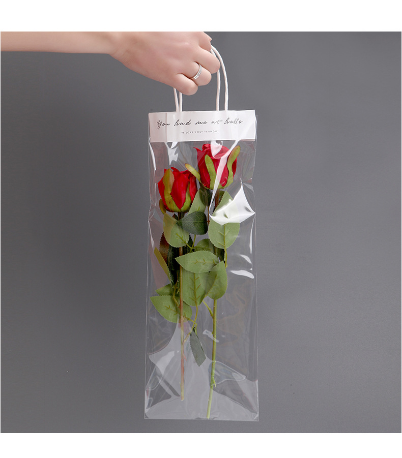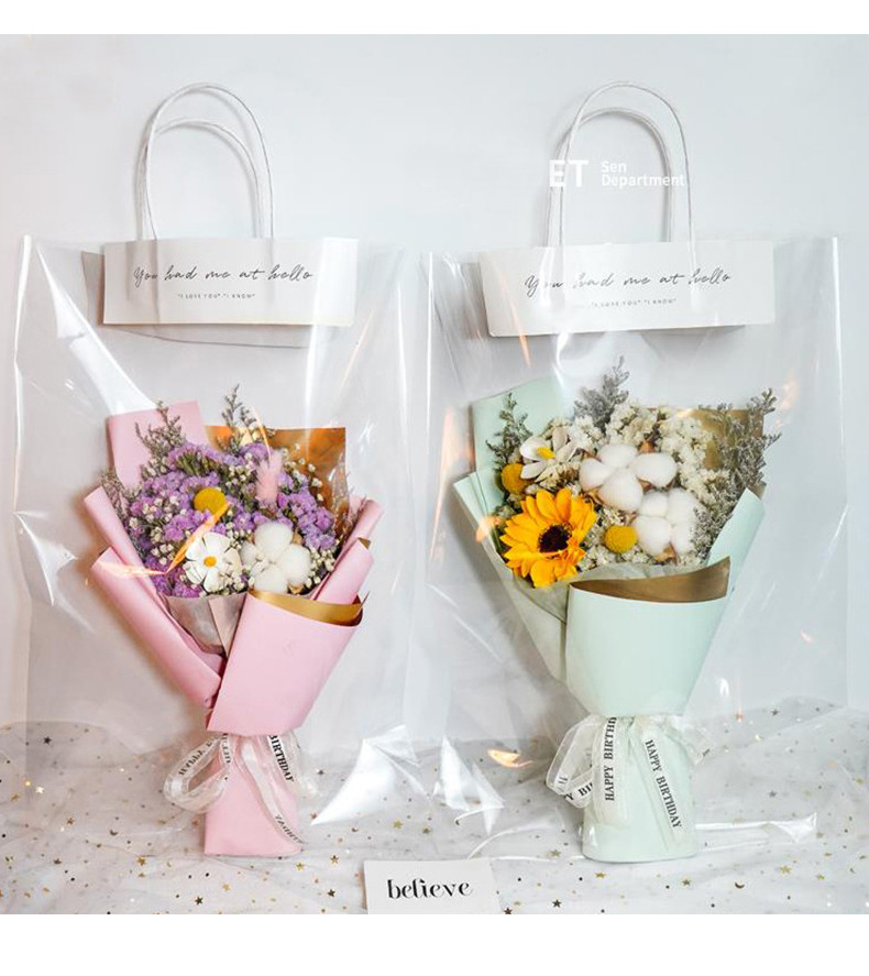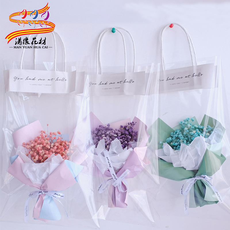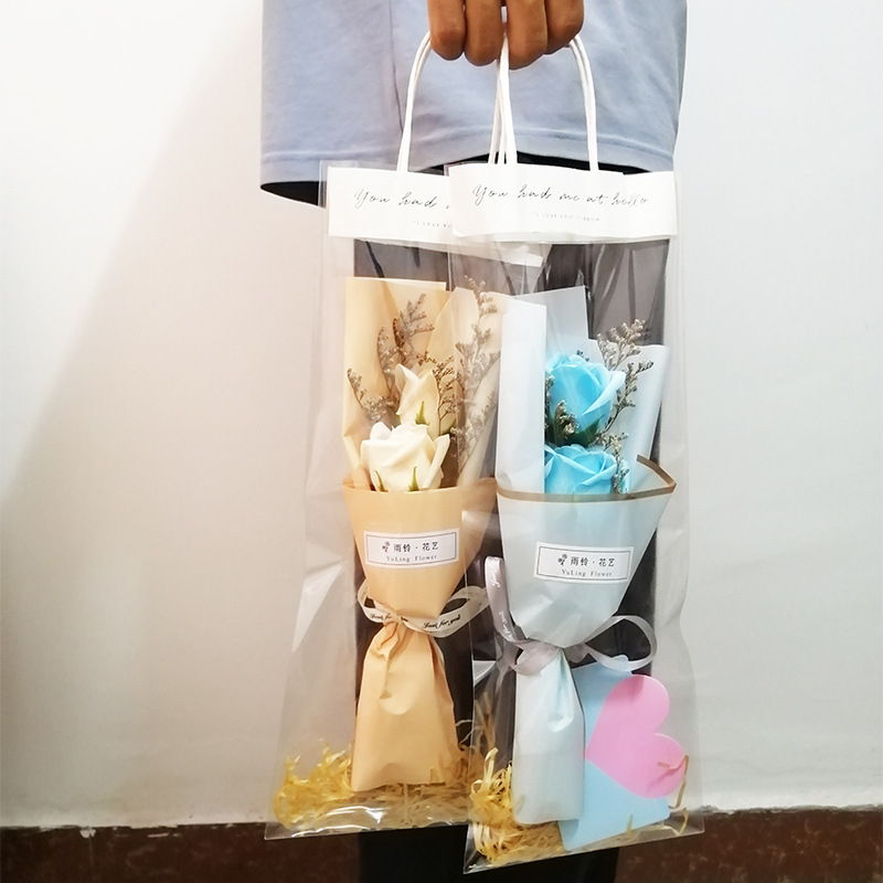 鲜花包装材料教师节花艺袋单支袋玫瑰鲜花包装成品OPP花束手提袋