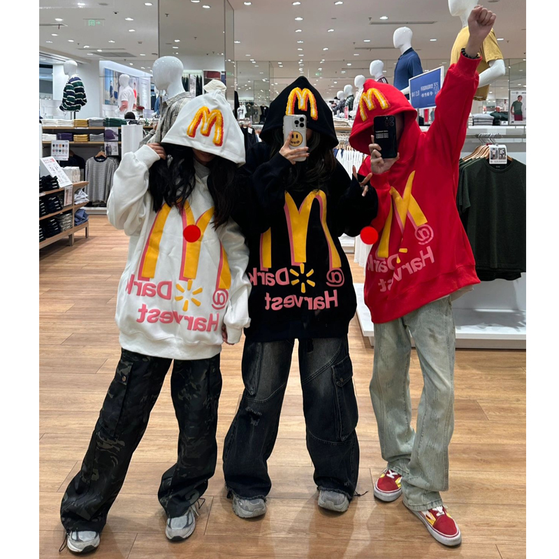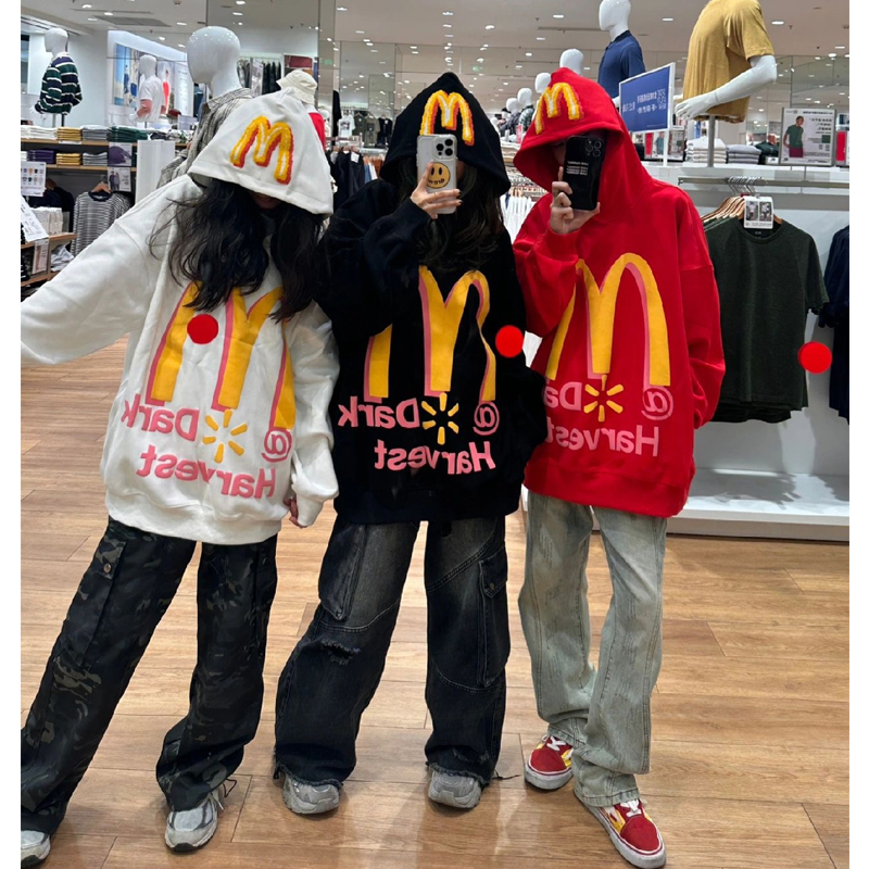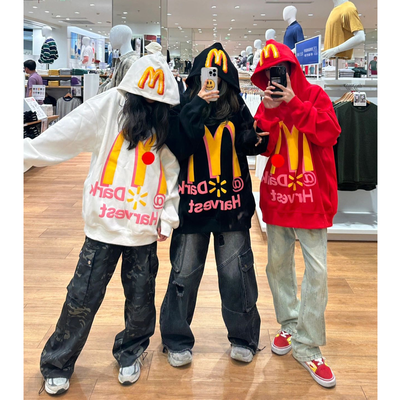 美式復古字母印花連帽運動衫女春秋薄款潮牌2023年新款oversize外套