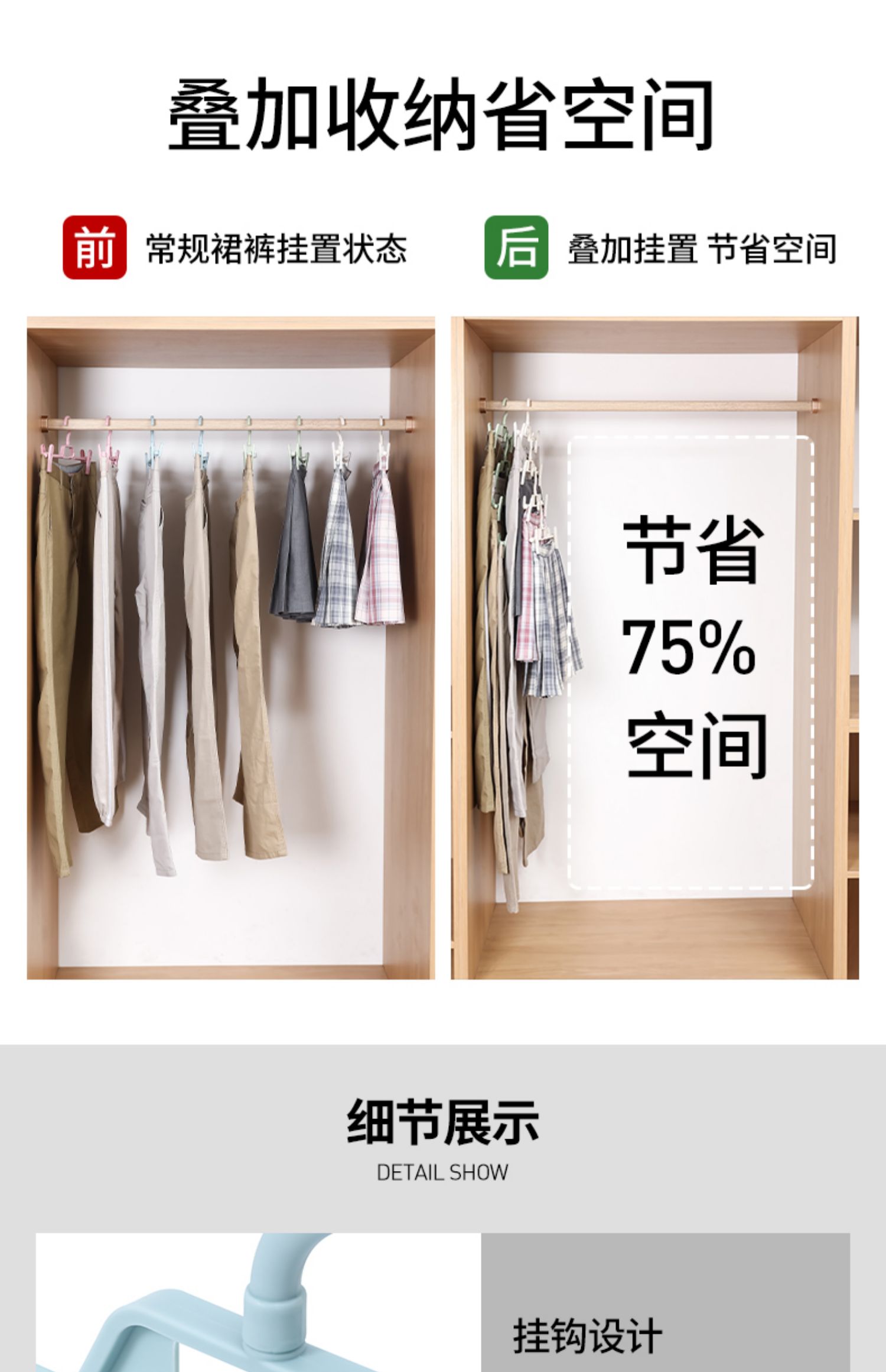 9URT无痕家用裤架裤夹防滑裤夹子jk裙夹内衣夹衣架汉服防炸褶裤挂