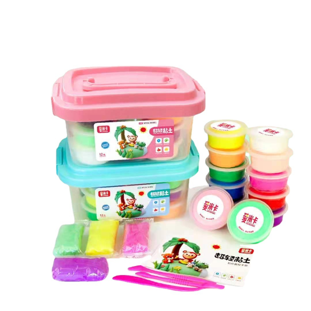 艾米卡12色收纳盒超轻粘土套儿童装幼儿园橡皮泥彩泥可塑树脂黏土