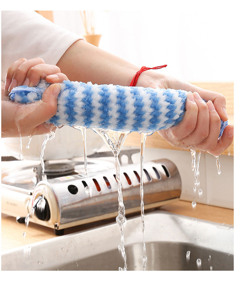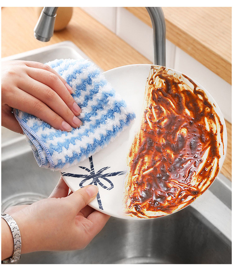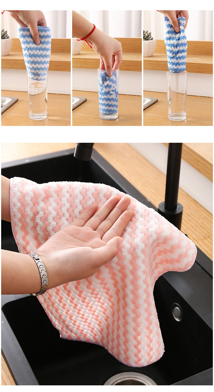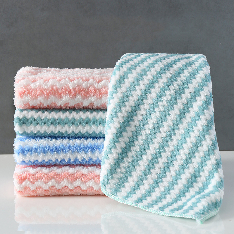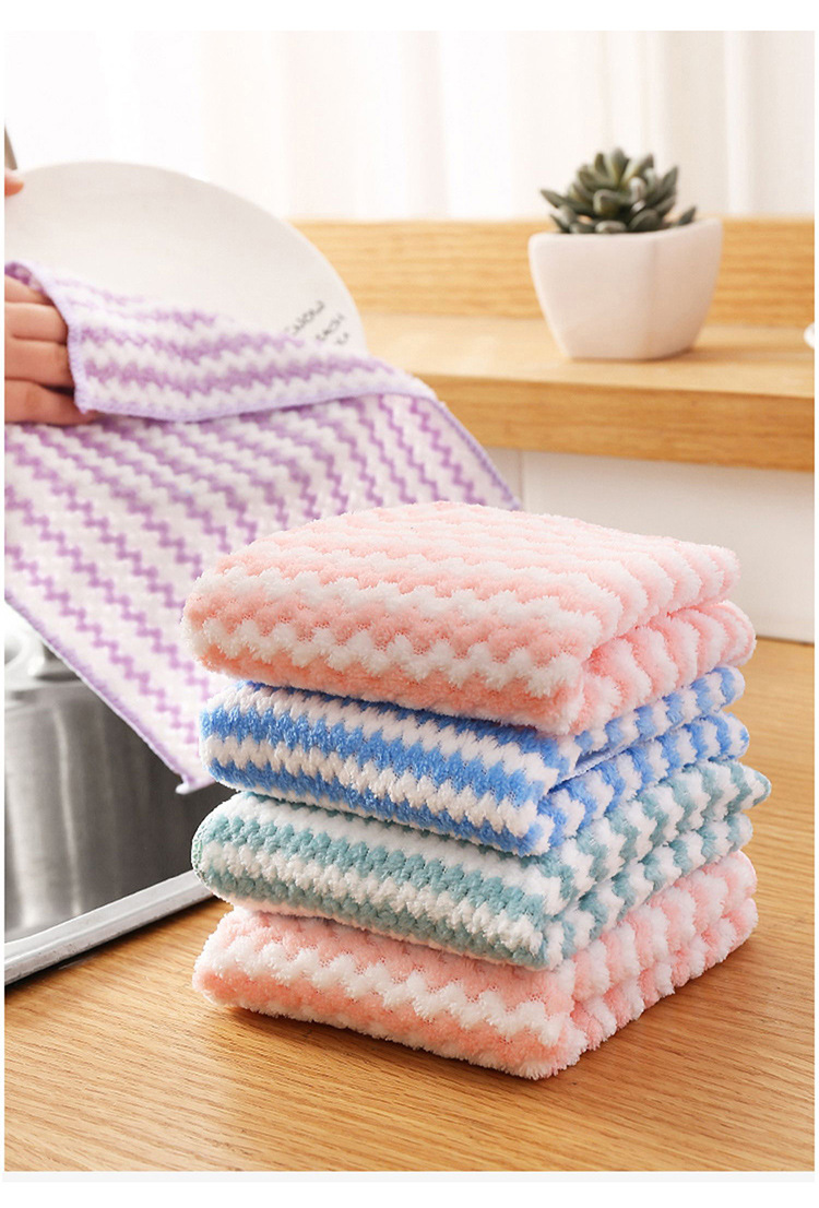 条纹珊瑚绒抹布 厨房清洁巾懒人抹布 波浪洗碗布去油百洁布批发