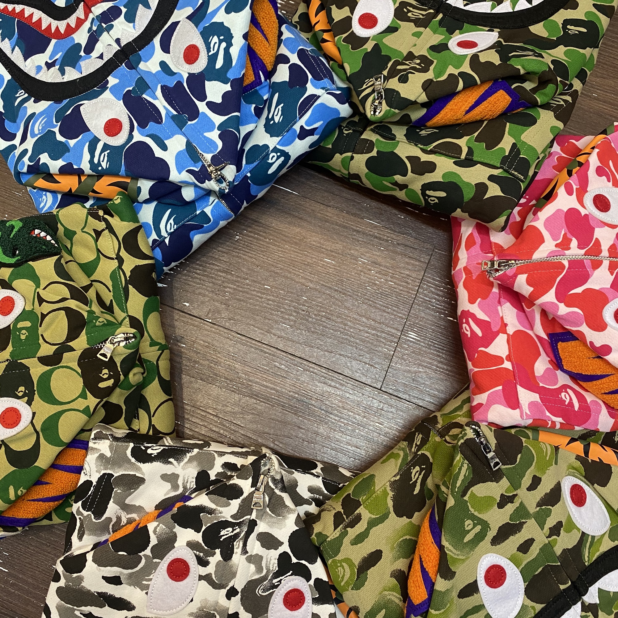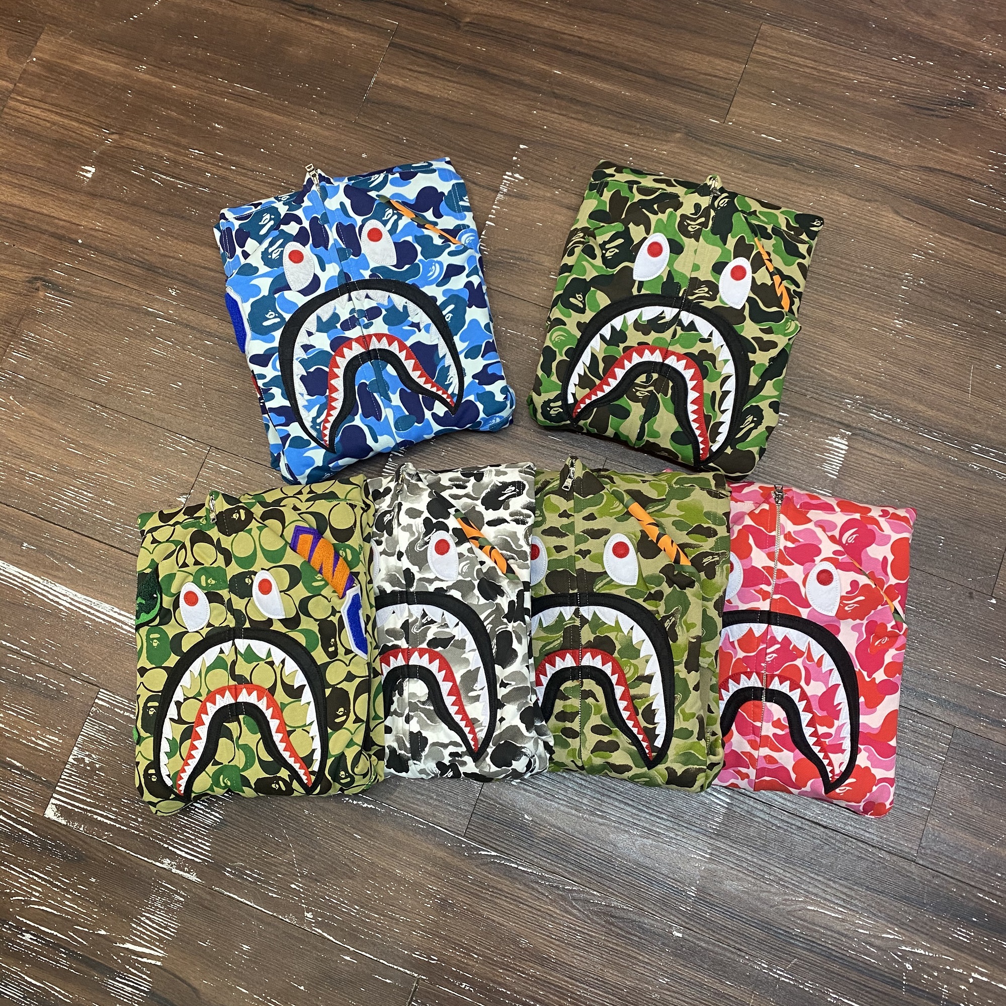 潮牌BAPE鯊魚頭迷彩開衫男女情侶經典夜光寬鬆純棉連帽運動衫外套男