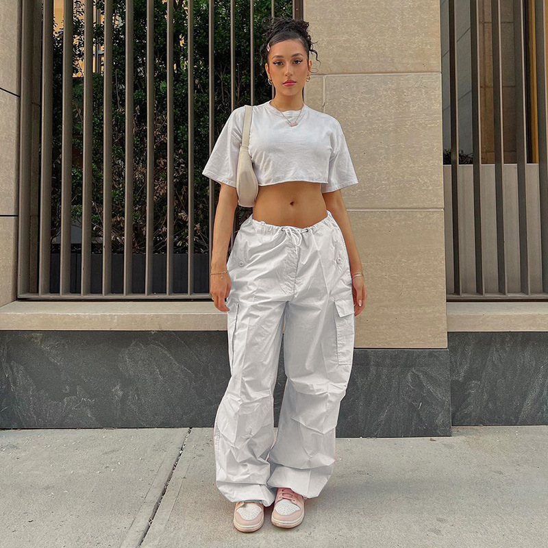 XY22013大码宽松直筒工装裤女2023欧美女装春季高腰阔腿休闲裤子