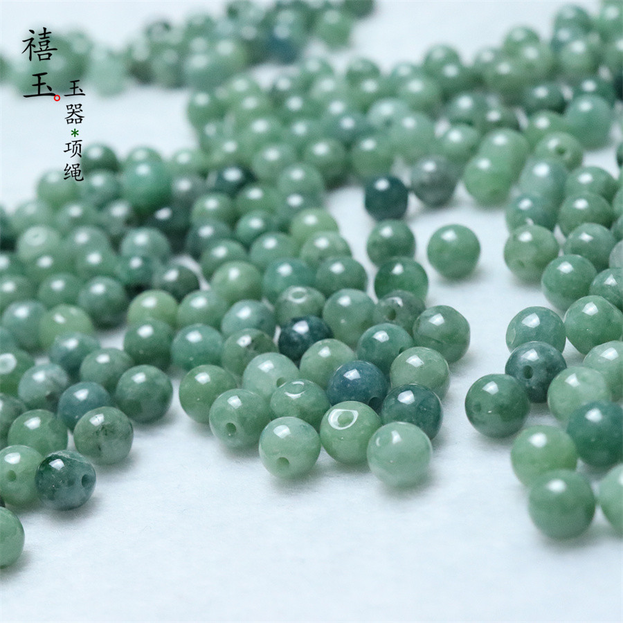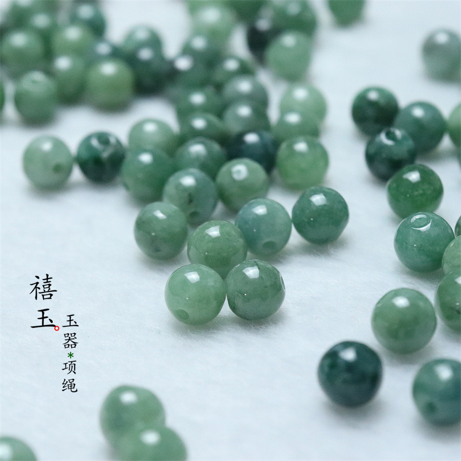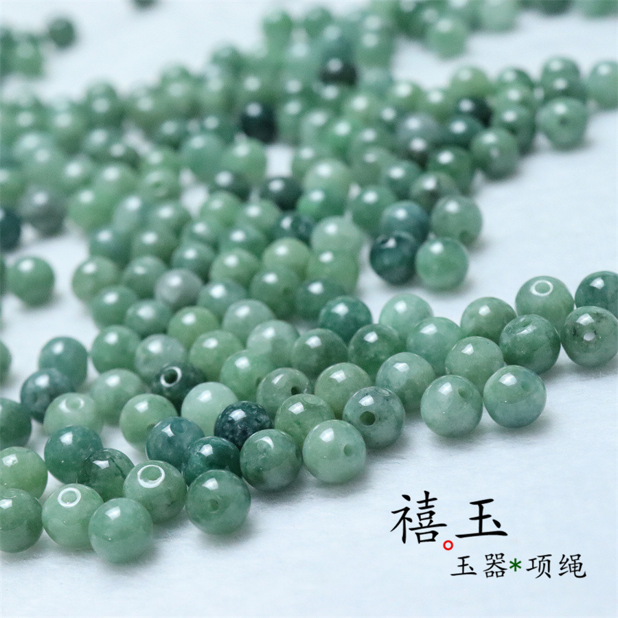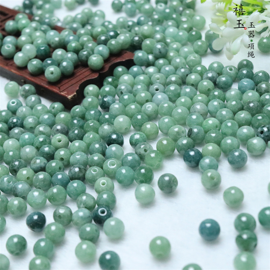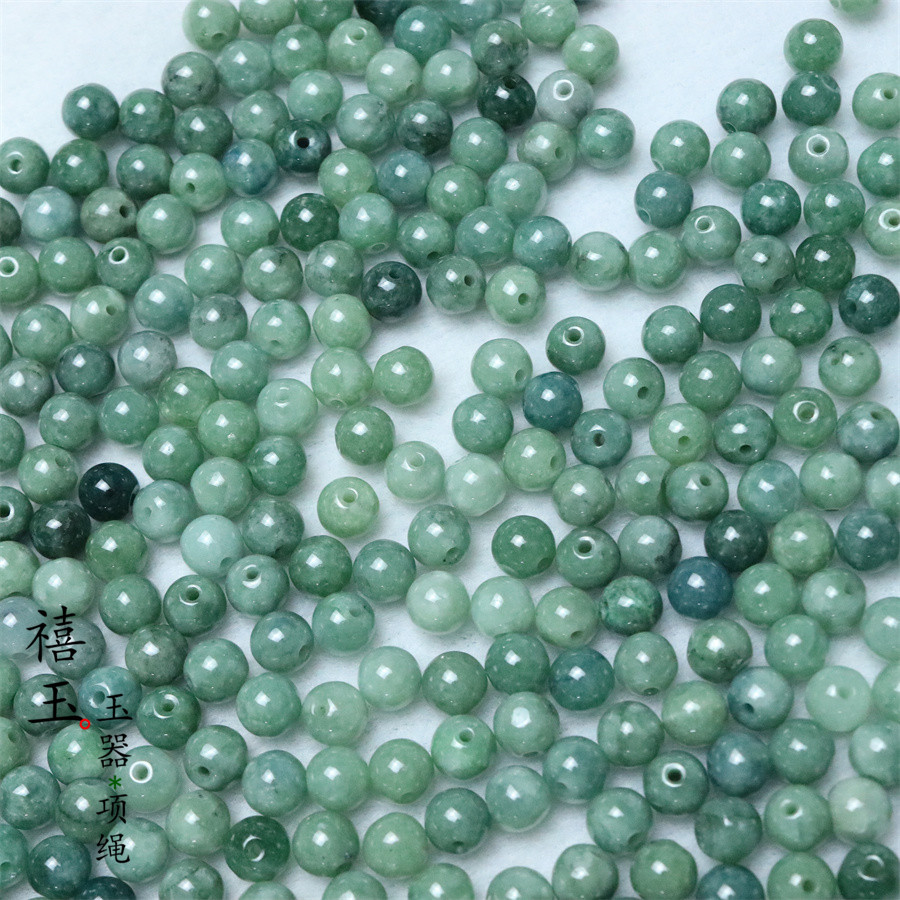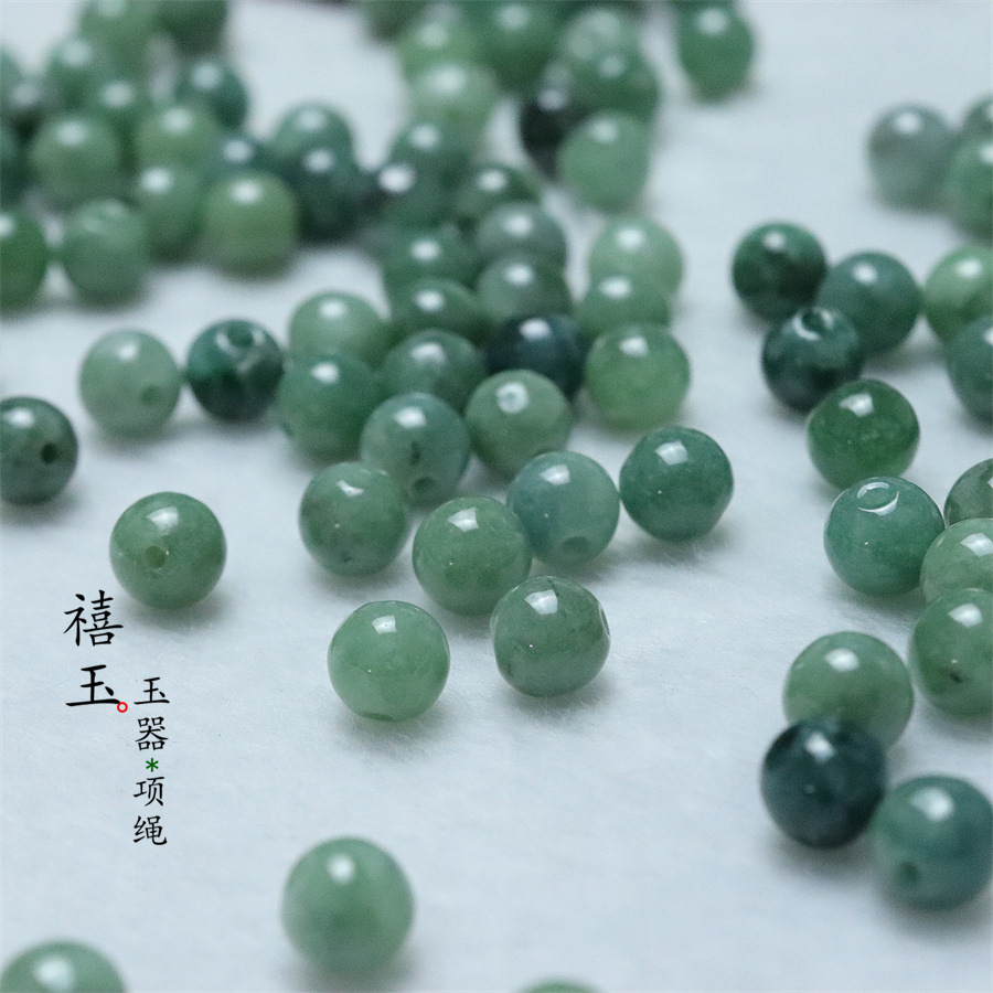 特价豆青玉石散珠a货6MM圆珠玉DIY手链配件半成品批发 绿色玉珠子